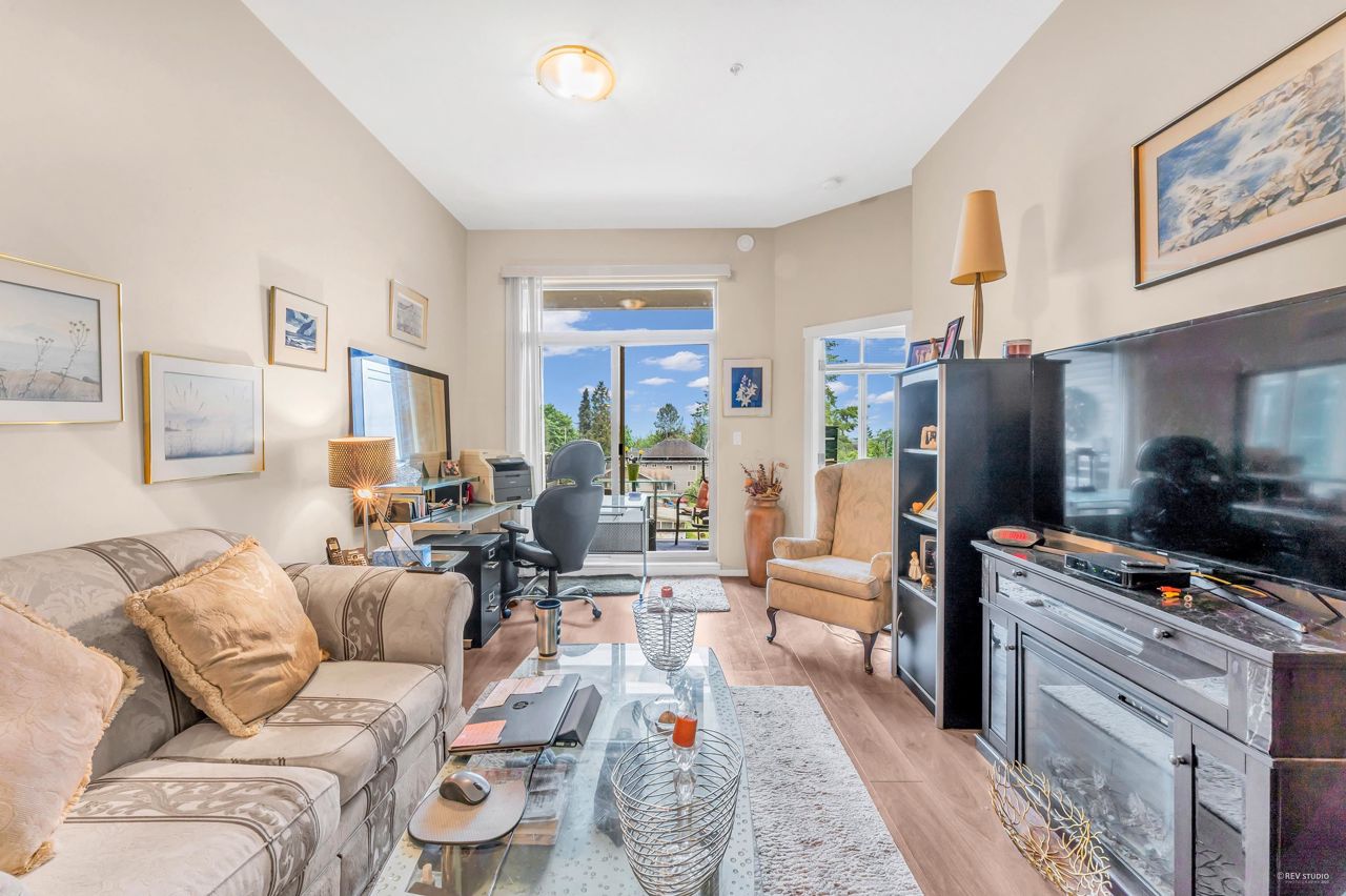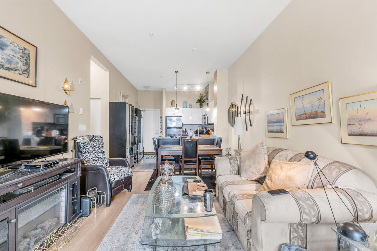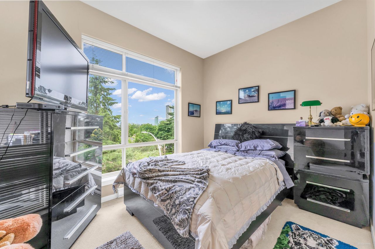 Welcome to Quattro 2 in North Surrey! This large south facing 1 bed and 1 bath penthouse (top floor) unit measured at 625sf. Very bright and spacious! Features laminate flooring, stainless steel appliances, open concept kitchen, insuite laundry, 10 foot ceilings and large covered balcony with city views! Comes with 1 parking and 1 locker. Amenities in this lovely building include a huge exercise centre, a playground perfect for kids to play on, and a quiet court yard. Centrally located to Skytrain, recreation, parks, schools and shopping. Great for investor or first time buyers. Rentals allowed, 1 cat or 1 dog allowed. **OPEN HOUSE July 22/23 SAT/SUN 2-4PM.**