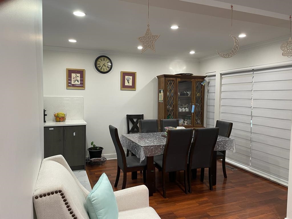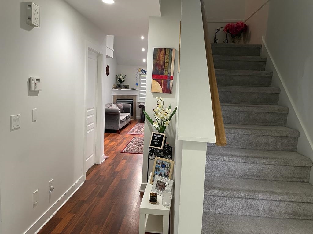 4 bedroom 4 bath Double Garage, 2419 sqft townhome nested in the Gated Complex of Alder Park.This gorgeously recently renovated new Fully redesigned extended kitchen with quartz counter top , new pod lights all over including living area , Kitchen and Washrooms, new closet organizers , new porcelen tiles from entrance to kitchen area ,water filtration unit for supply of water ,new loto garage door video camera . above all this is Corner unit with big back yard built in wooden deck which is good for indoor parties on patio’s. You are welcomed into this home with New flooring, New paint. Upstairs features 3 big bedrooms finished with New carpet,2 balconies for relaxing times. Theater Room in the basement along with a huge bedroom, full washroom and storage closet.OH, Sun Dec 10 1.30-3.30 pm