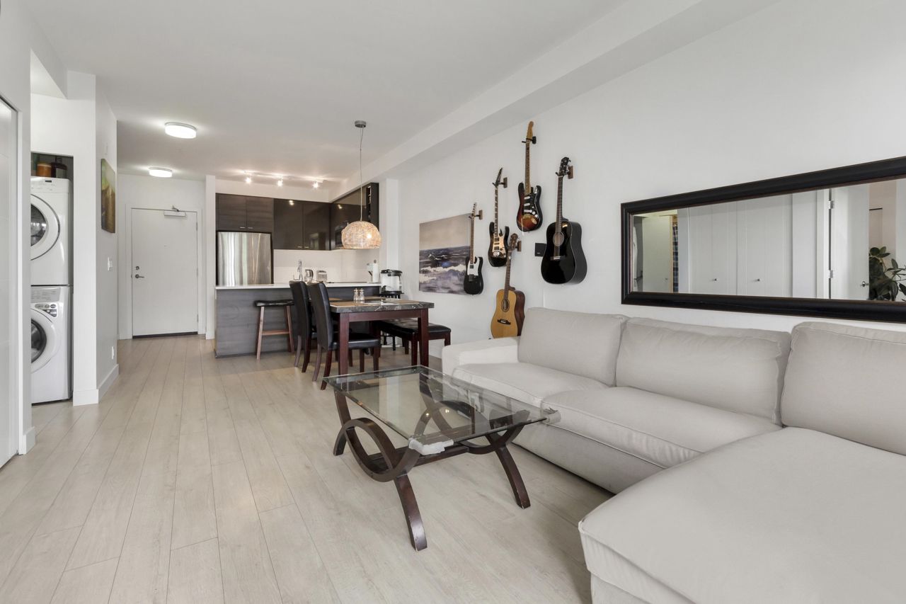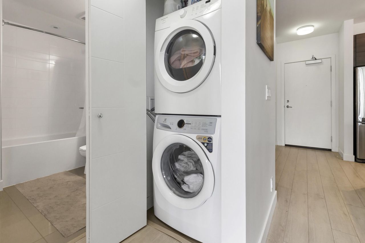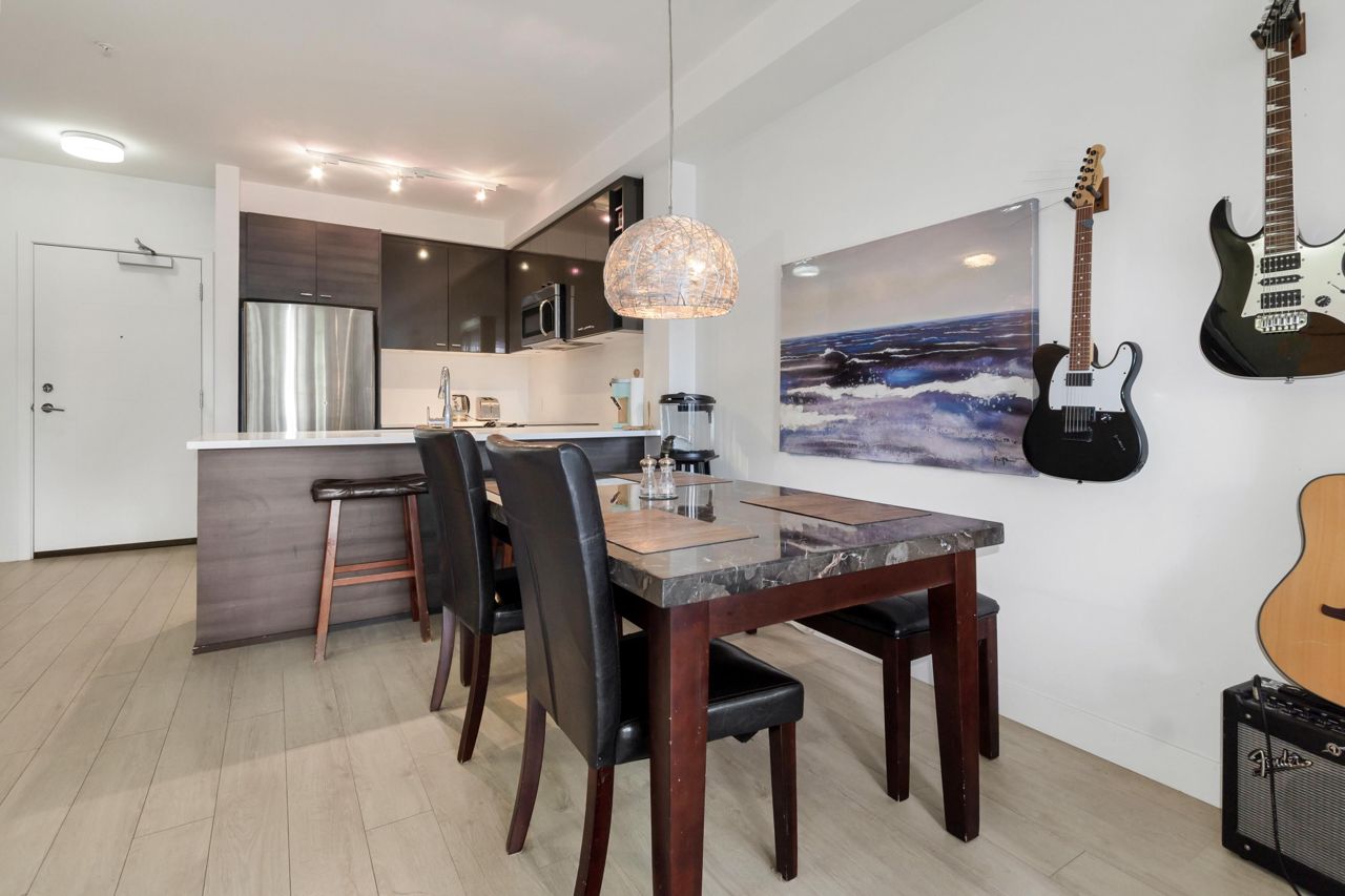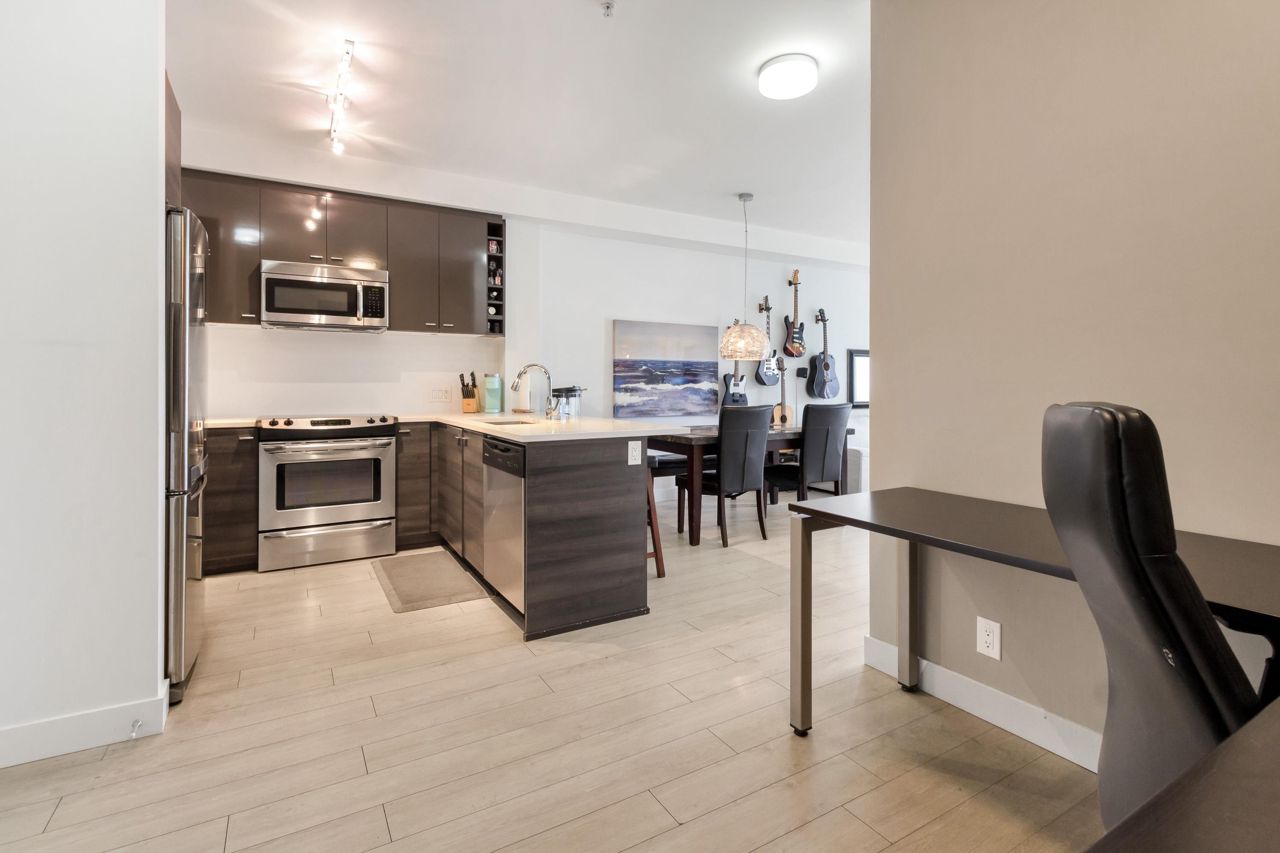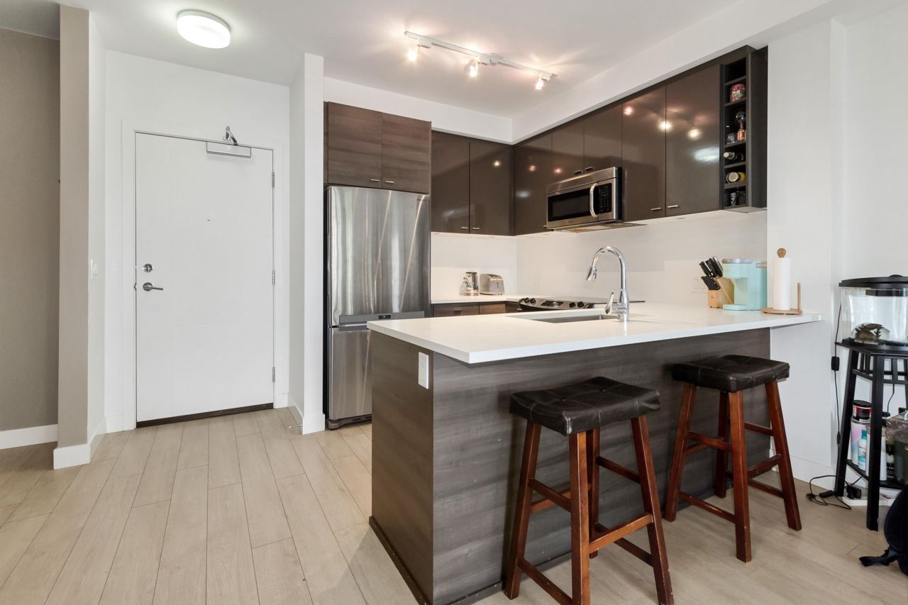 Welcome to the highly desired Verve complex in the heart of Surrey. Minutes walk to King George Skytrain, Surrey SFU, Surrey Memorial Hospital and many shops/recreation! Great functioning layout with 1 Bedroom & an oversized den. Open concept floor plan with 9ft ceilings, good sized patio for barbeques. The kitchen features quartz countertops, stainless steel fridigiare appliances, and soft close cabinetry. In suite laundry, 1 parking stall with extra space and 1 storage locker. Bonus amenities room for socializing, shared gym with lots of equipment and a guest suite for visitors! 100% Rentals allowed and 2 pets! Great for first time buyers or investors!