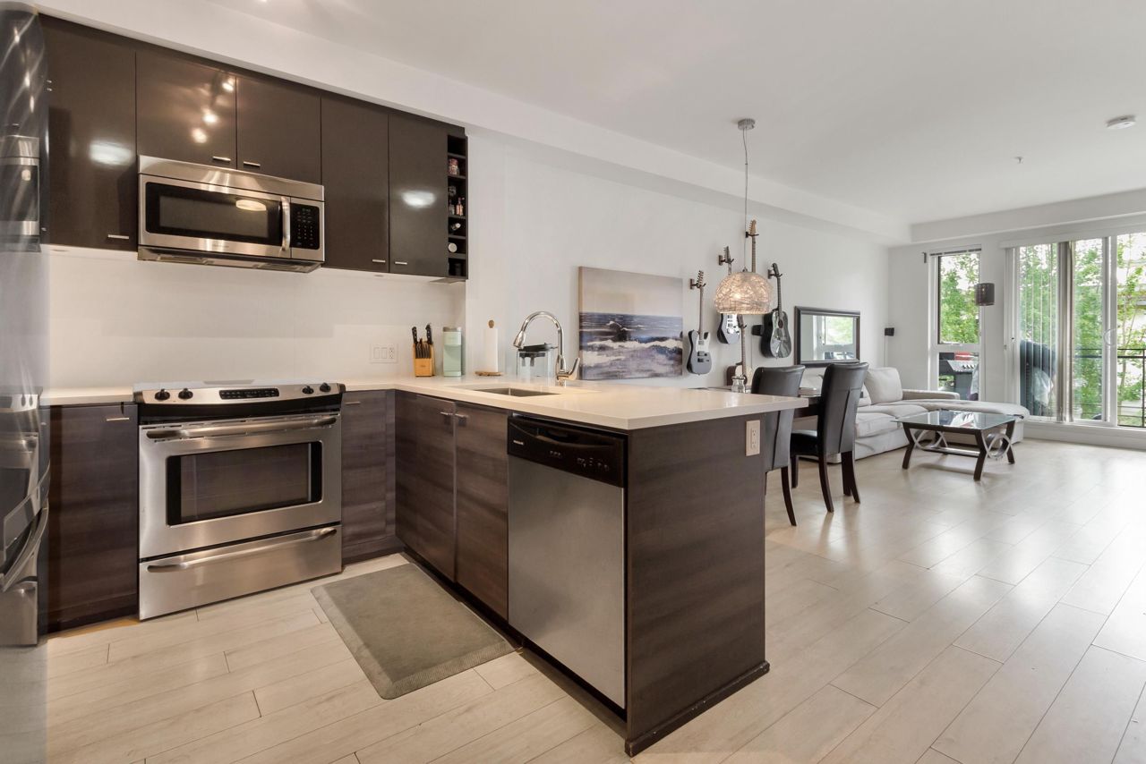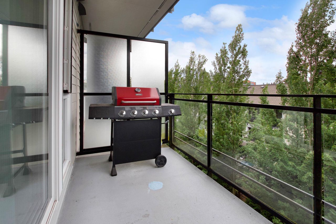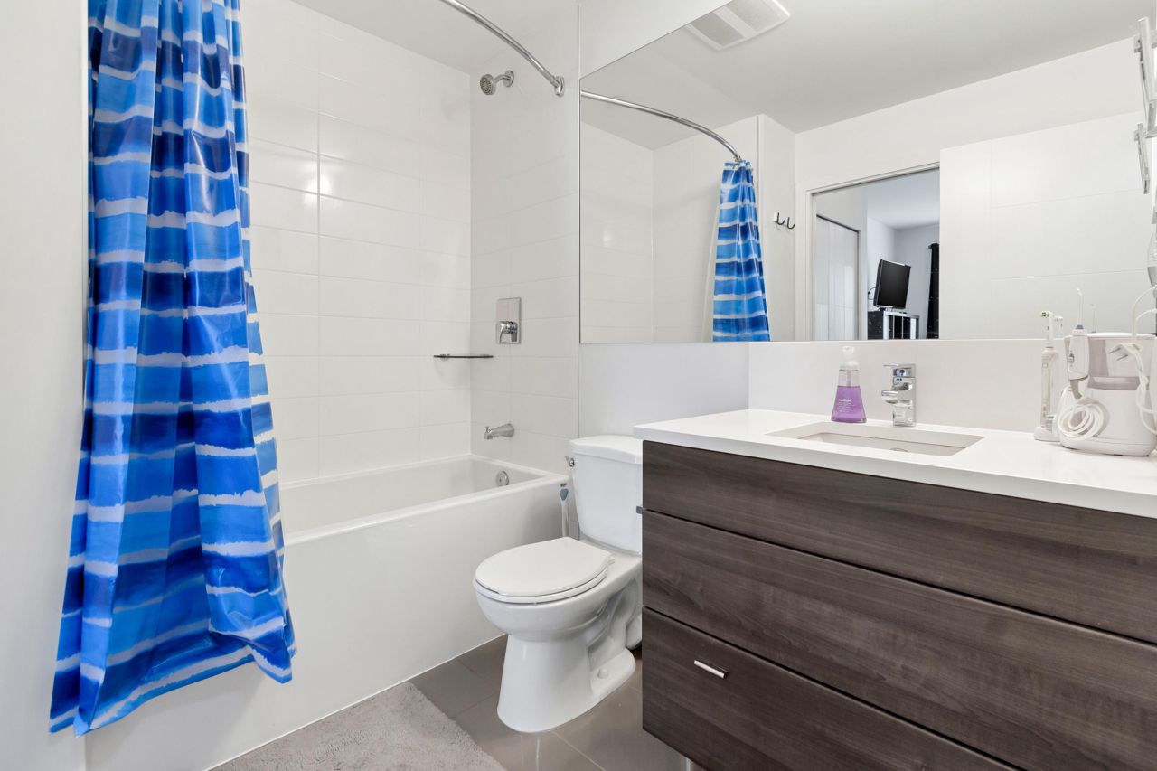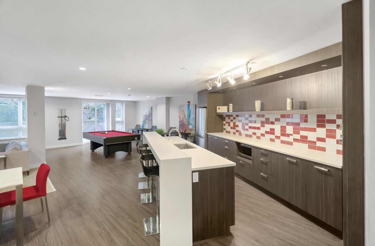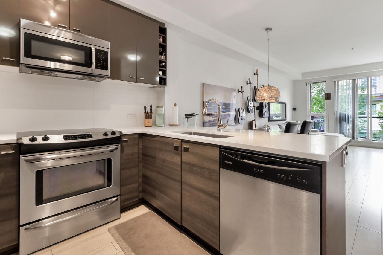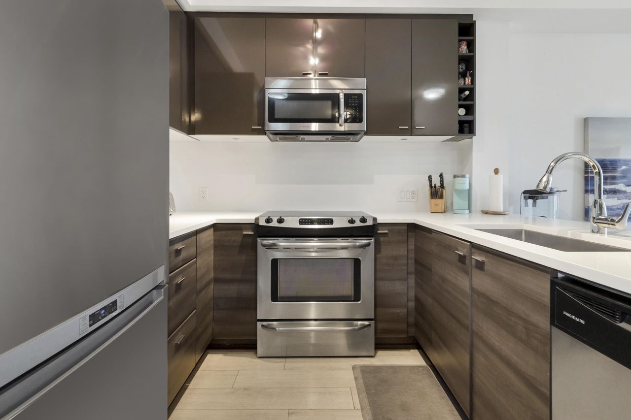 Welcome to the highly desired Verve complex in the heart of Surrey. Minutes walk to King George Skytrain, Surrey SFU, Surrey Memorial Hospital and many shops/recreation! Great functioning layout with 1 Bedroom & an oversized den. Open concept floor plan with 9ft ceilings, good sized patio for barbeques. The kitchen features quartz countertops, stainless steel fridigiare appliances, and soft close cabinetry. In suite laundry, 1 parking stall with extra space and 1 storage locker. Bonus amenities room for socializing, shared gym with lots of equipment and a guest suite for visitors! 100% Rentals allowed and 2 pets! Great for first time buyers or investors!
