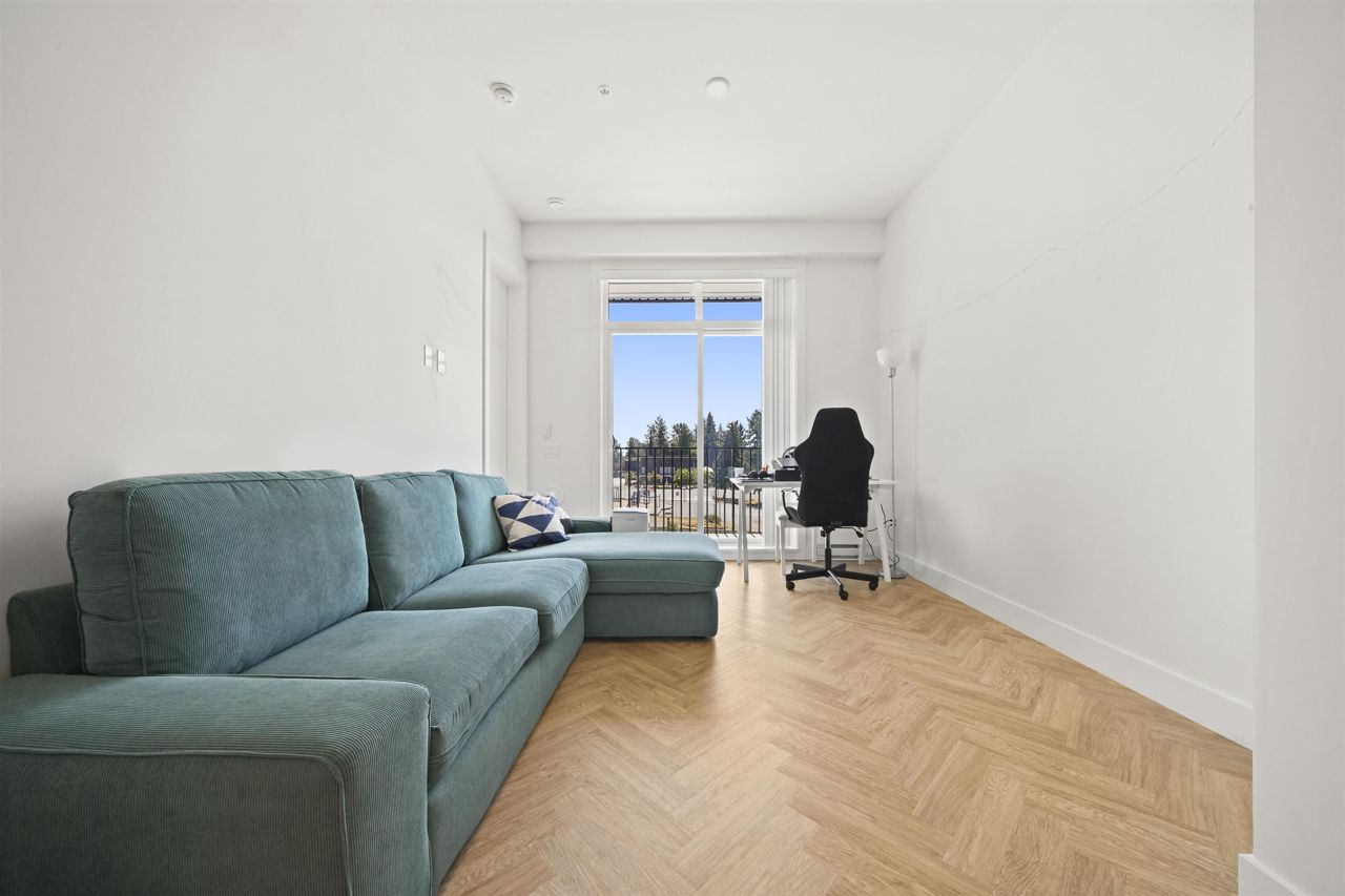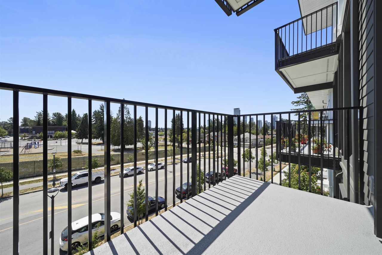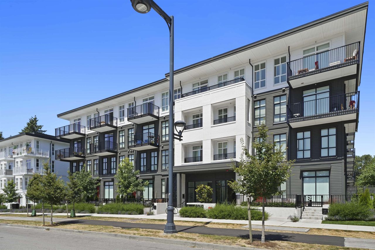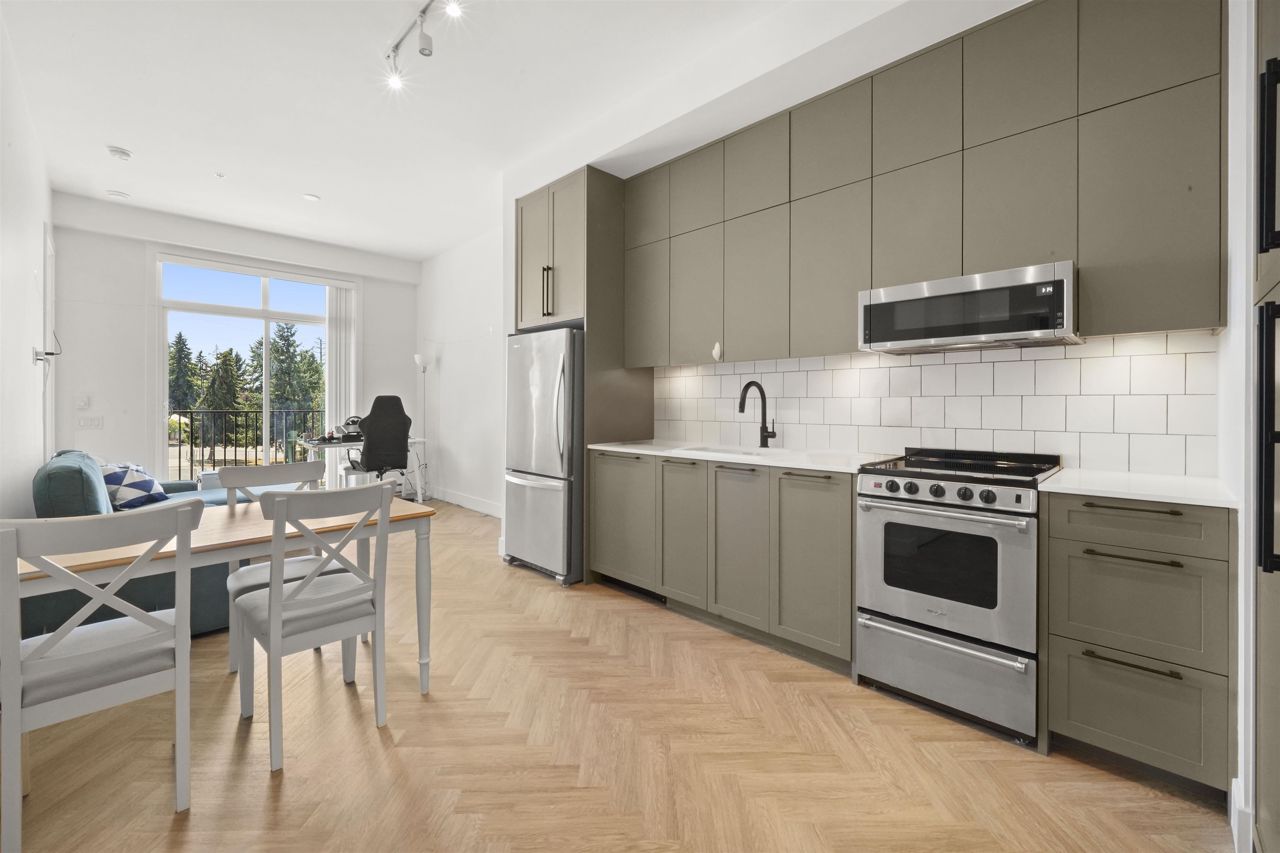 PARKER BY MOSAIC! This large 1 bed 1 bath home come with 1 parking is perfect to live in or invest! Immediately notice the 10 FT ceilings in this bright home and appreciate the timeless elegance of herringbone flooring met with contemporary, clean Scandinavian kitchen and bathrooms. Very efficient layout with oversized windows and patio looking out into the quiet courtyard. Whirlpool appliances, full-size laundry, recessed LED portlights, ambient lighting behind floating bathroom mirrors, quartz countertops, all with the peace of mind of a 2/5/10 warranty. Minutes to Surrey City Centre, SFU & KPU, Surrey Central skytrain, parks, etc. Must see to appreciate!