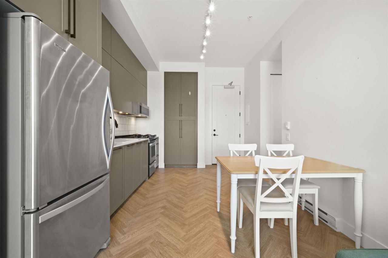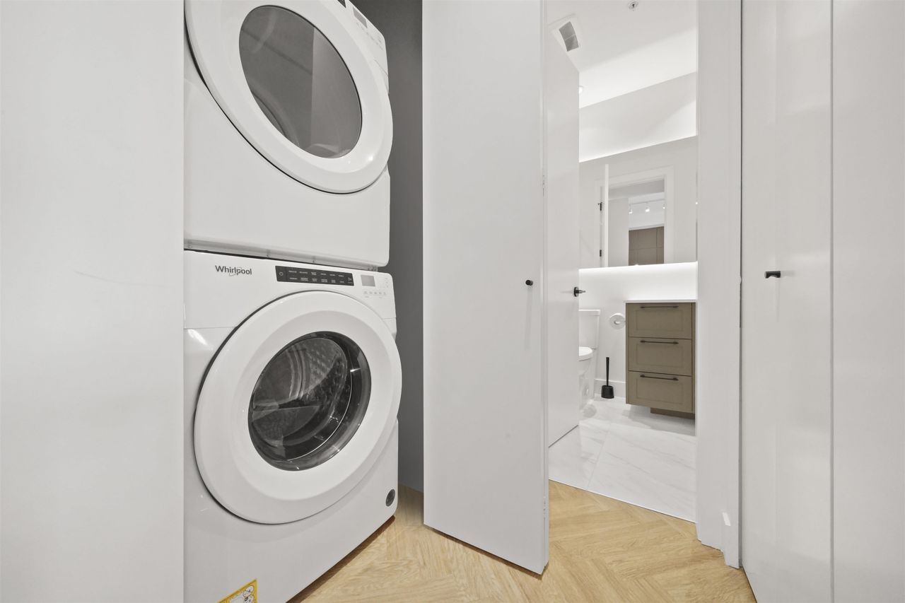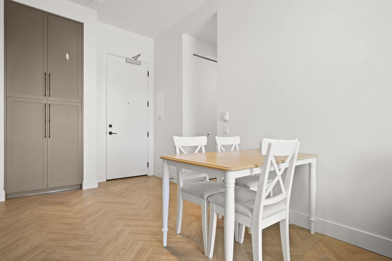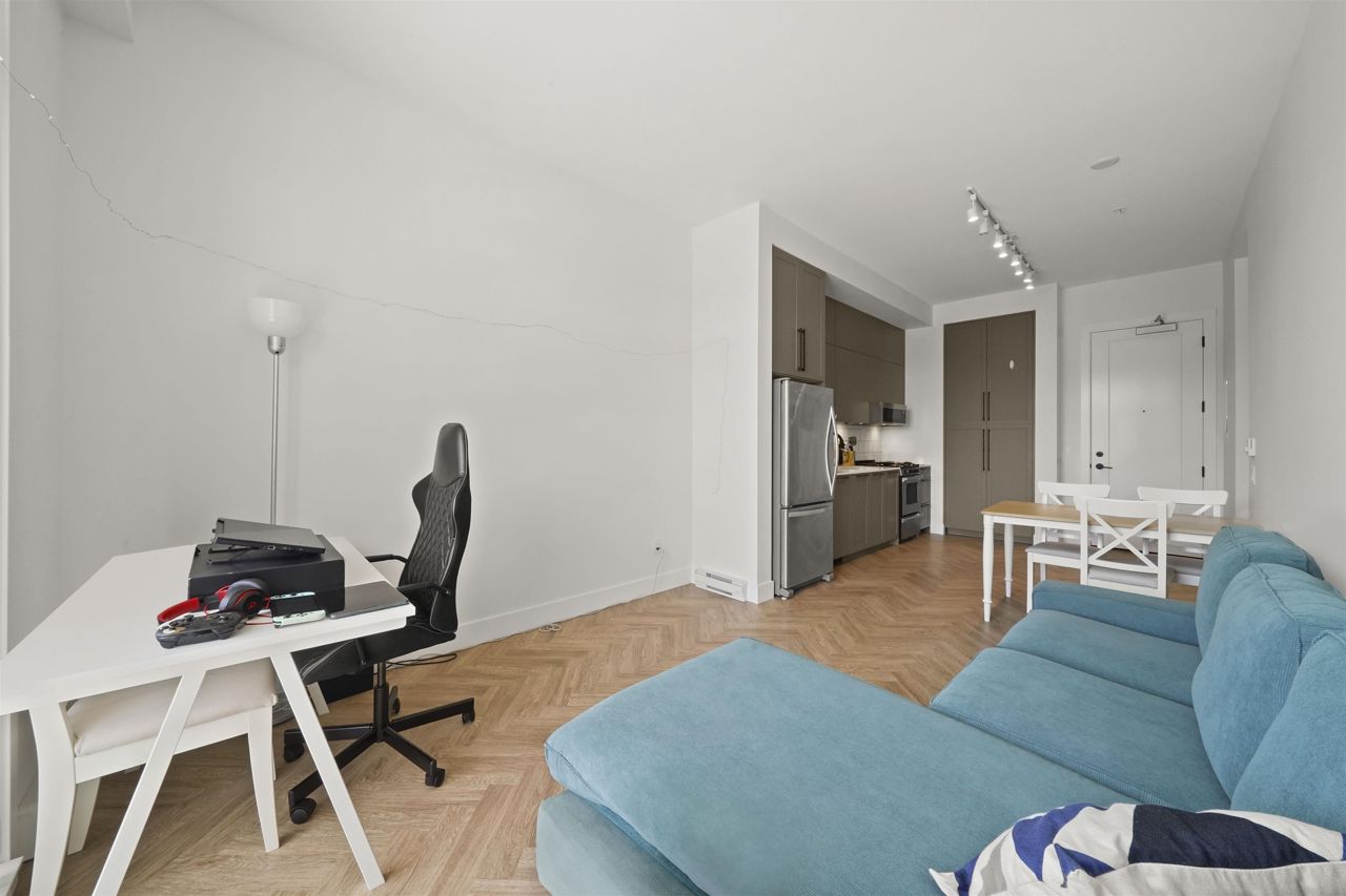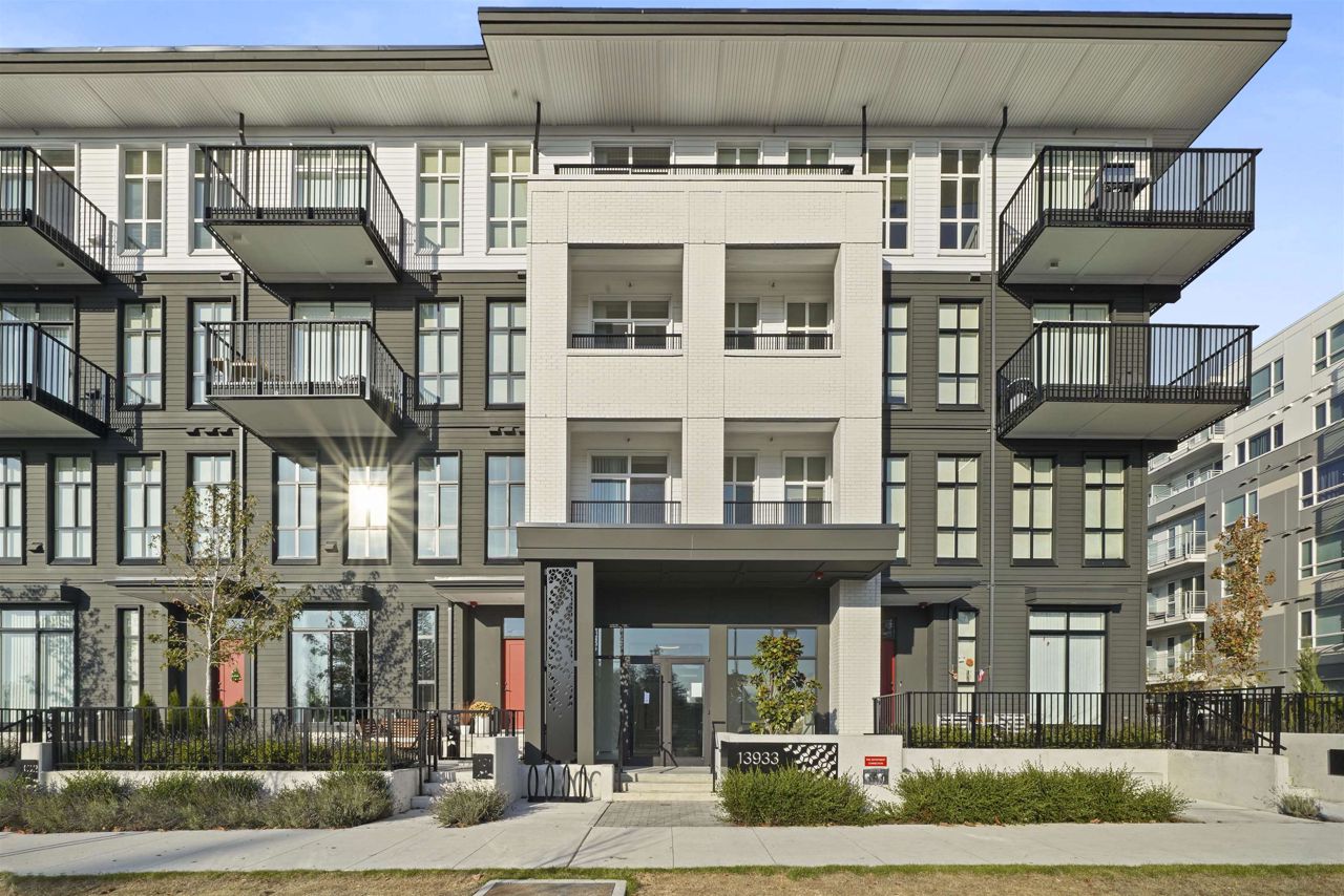 PARKER BY MOSAIC! This large 1 bed 1 bath home come with 1 parking is perfect to live in or invest! Immediately notice the 10 FT ceilings in this bright home and appreciate the timeless elegance of herringbone flooring met with contemporary, clean Scandinavian kitchen and bathrooms. Very efficient layout with oversized windows and patio looking out into the quiet courtyard. Whirlpool appliances, full-size laundry, recessed LED portlights, ambient lighting behind floating bathroom mirrors, quartz countertops, all with the peace of mind of a 2/5/10 warranty. Minutes to Surrey City Centre, SFU & KPU, Surrey Central skytrain, parks, etc. Must see to appreciate!