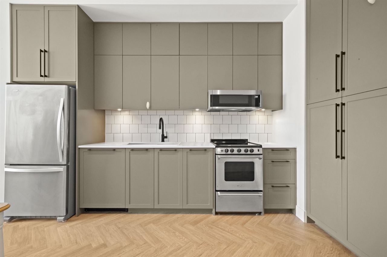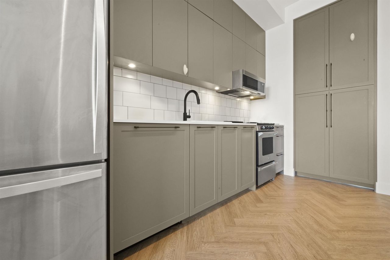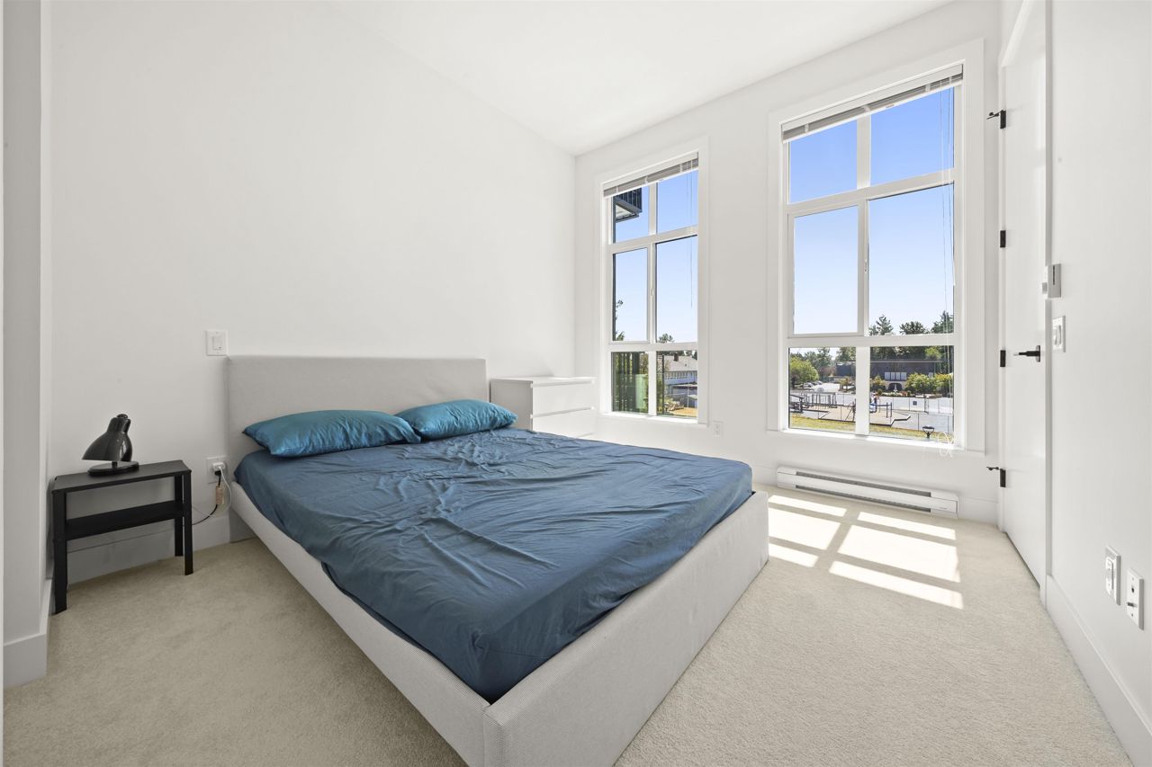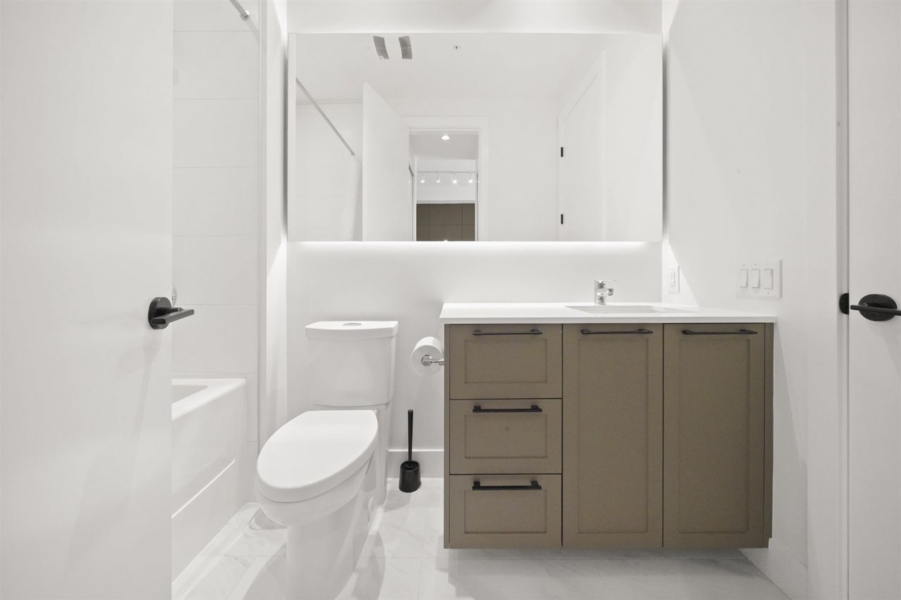 PARKER BY MOSAIC! This large 1 bed 1 bath home come with 1 parking is perfect to live in or invest! Immediately notice the 10 FT ceilings in this bright home and appreciate the timeless elegance of herringbone flooring met with contemporary, clean Scandinavian kitchen and bathrooms. Very efficient layout with oversized windows and patio looking out into the quiet courtyard. Whirlpool appliances, full-size laundry, recessed LED portlights, ambient lighting behind floating bathroom mirrors, quartz countertops, all with the peace of mind of a 2/5/10 warranty. Minutes to Surrey City Centre, SFU & KPU, Surrey Central skytrain, parks, etc. Must see to appreciate!