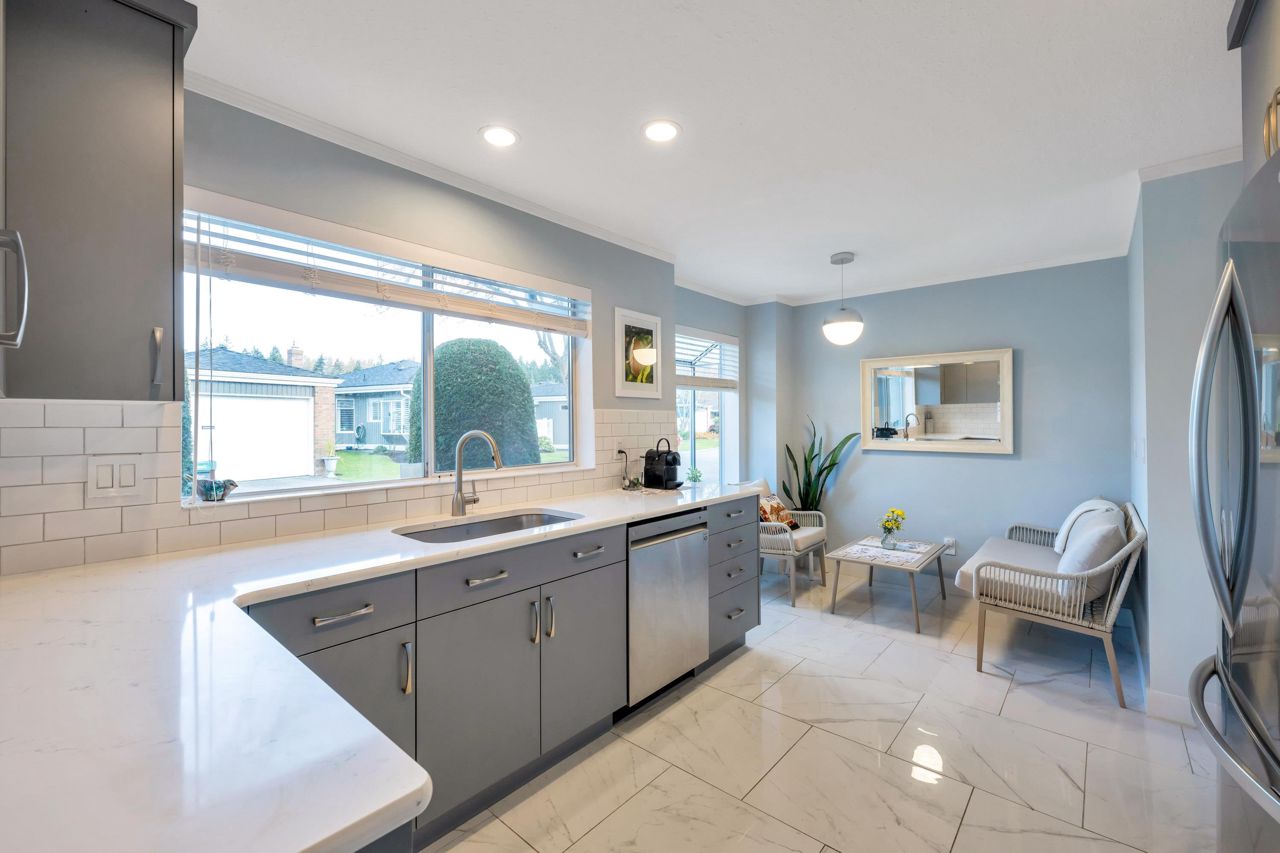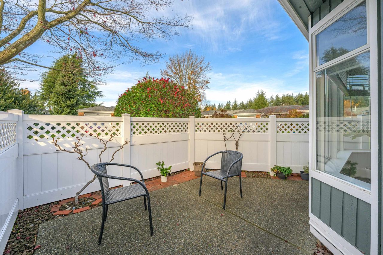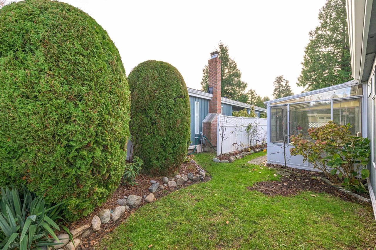 Welcome to sought-after Ocean Bluff Court! Rare opportunity to call this completely updated 3 bed rancher home! There is nothing to do here but move in & enjoy. You will love the bright & spacious chef's kitchen boasting updated cabinetry, quartz counters & ss appliances. The inviting foyer welcomes you to bright, lovely living & dining spaces featuring designer lighting and new gas fireplace. The primary retreat offers an ample walk-in closet & ensuite with walk-in shower. Ideally situated in the back of a quiet park-like community, this unit offers the largest floorplan and is almost completely detached, sharing only one wall in garage. Pet & family friendly with well-managed strata with new roofs in 2022. Bayridge Elem/Semiahmoo catchments. Don't miss it, You will love living here!