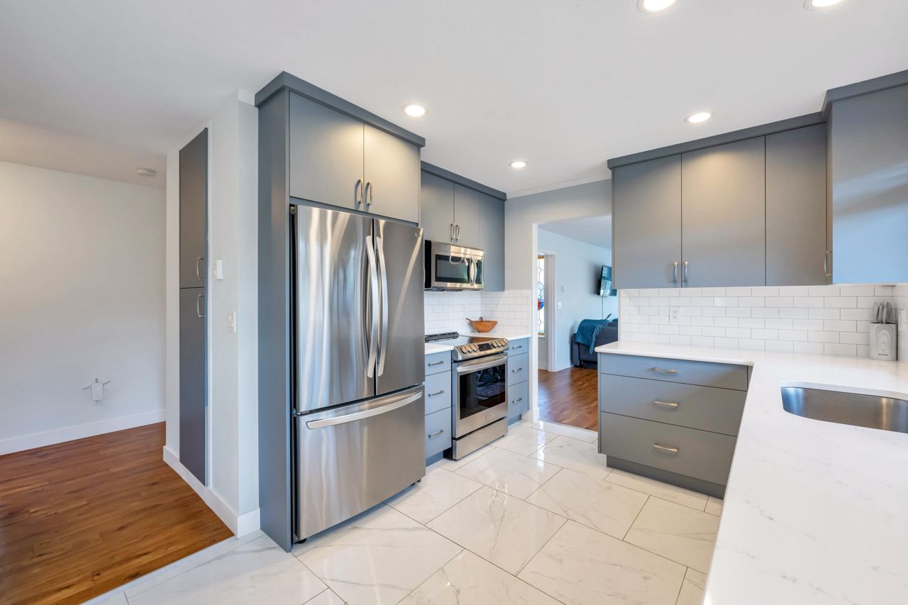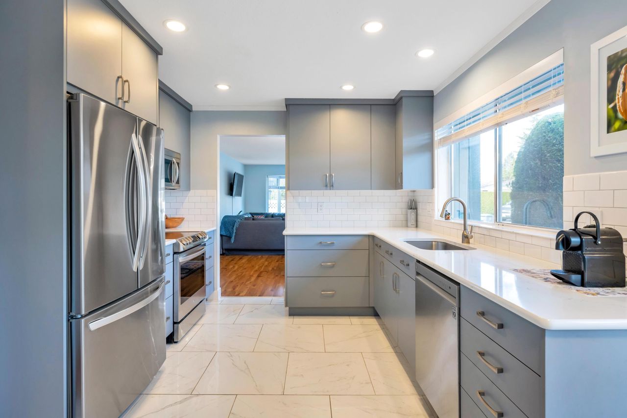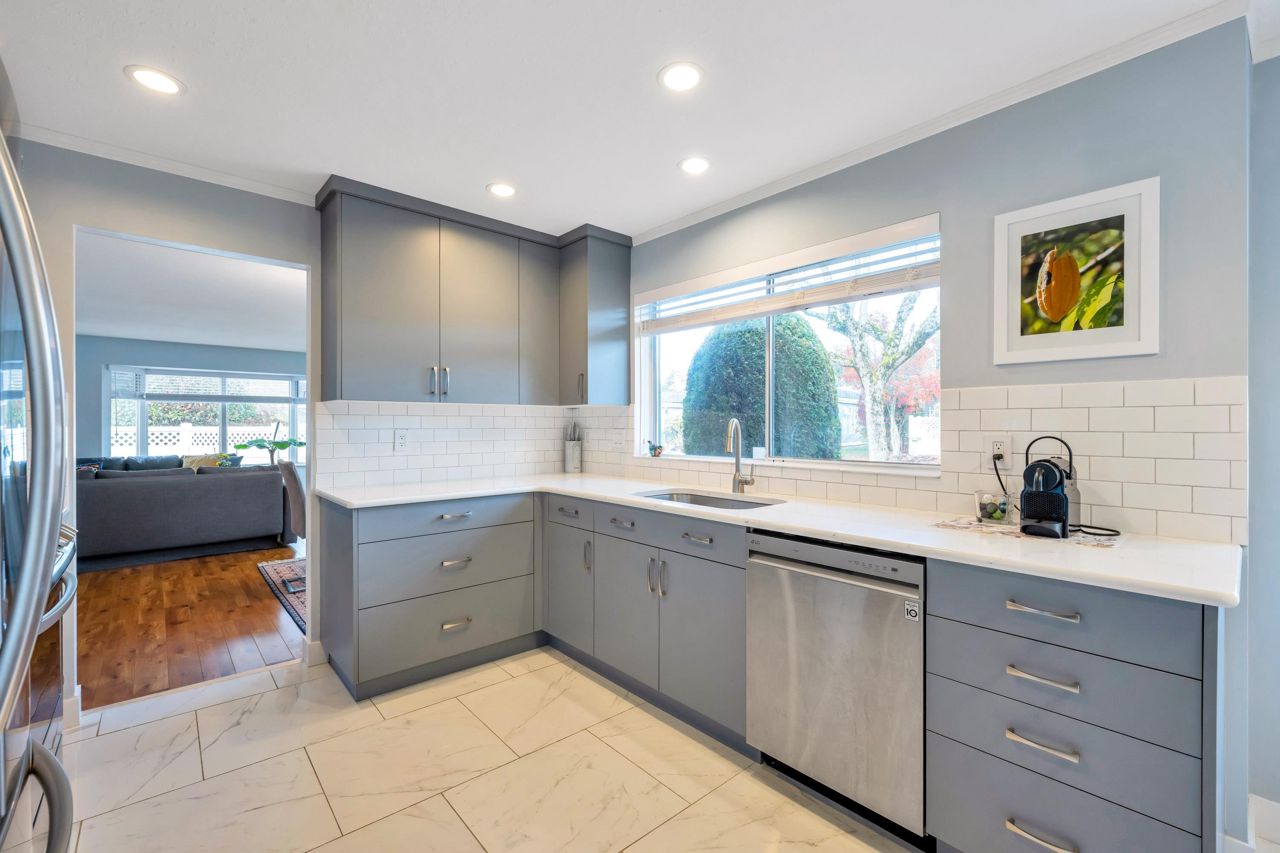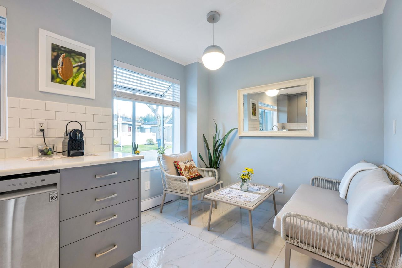 Welcome to sought-after Ocean Bluff Court! Rare opportunity to call this completely updated 3 bed rancher home! There is nothing to do here but move in & enjoy. You will love the bright & spacious chef's kitchen boasting updated cabinetry, quartz counters & ss appliances. The inviting foyer welcomes you to bright, lovely living & dining spaces featuring designer lighting and new gas fireplace. The primary retreat offers an ample walk-in closet & ensuite with walk-in shower. Ideally situated in the back of a quiet park-like community, this unit offers the largest floorplan and is almost completely detached, sharing only one wall in garage. Pet & family friendly with well-managed strata with new roofs in 2022. Bayridge Elem/Semiahmoo catchments. Don't miss it, You will love living here!