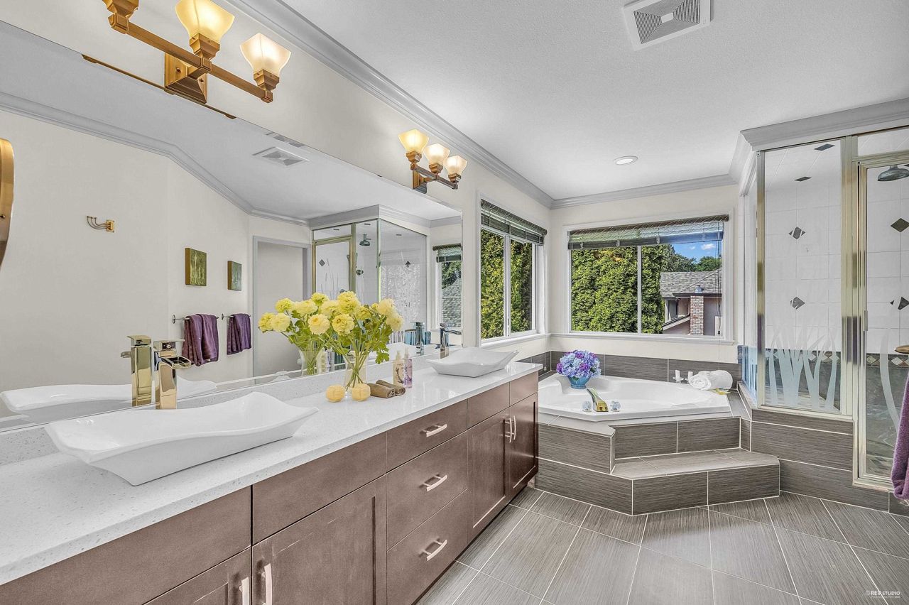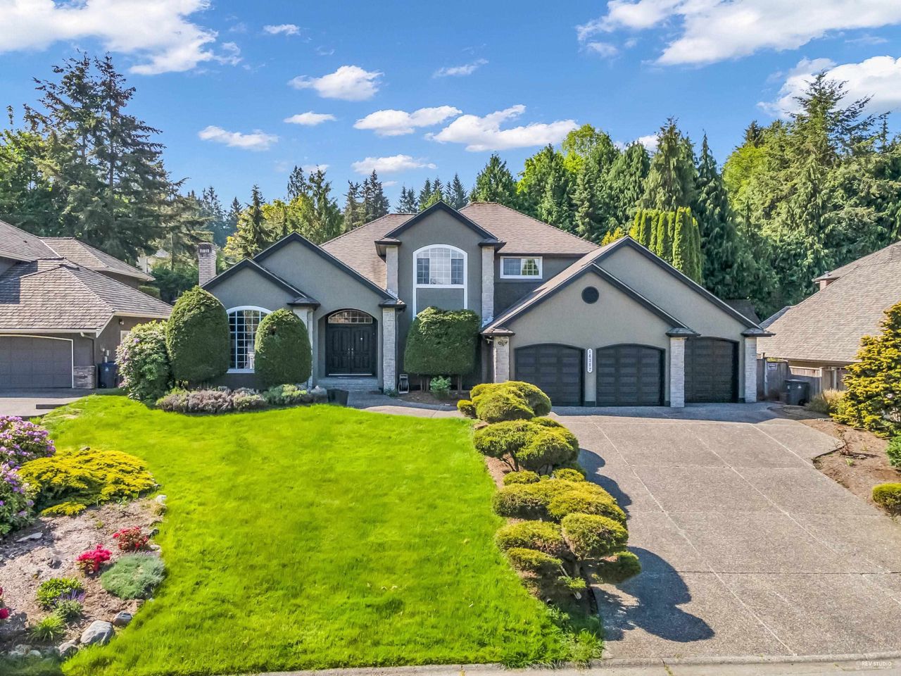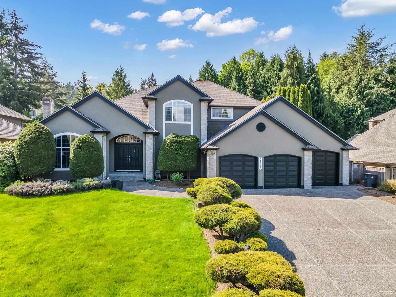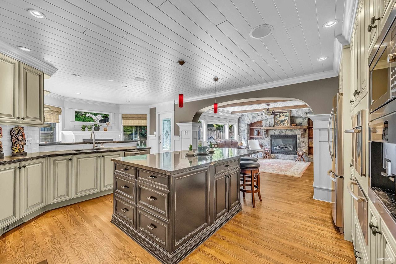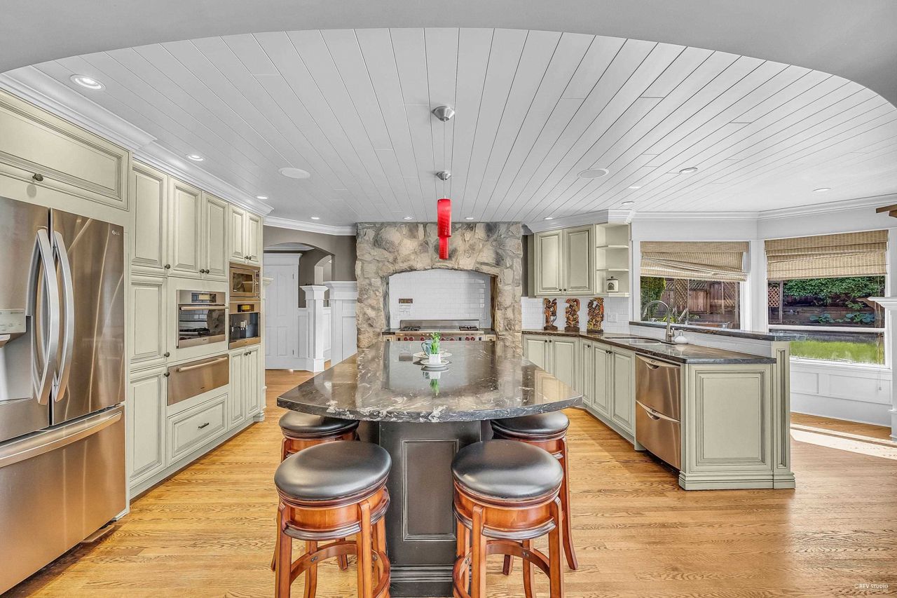Elgin Park, South Surrey's finest & most desirable neighbourhoods. Located on a quiet cul-de-sac with a private , south exposed yard. Renovated family home with new exterior painting, TUSCAN-STYLE KITCHEN ,feature high end Miele , Wolf , Fisher & Paykel appliances, built-in coffee station & food steamer,wok kitchen. Real Oak hardwood floor . Total 5 bdrms + 4 bathrms. High ceiling in the form living room , traditional floor plan . Basement fully finished media room . 3 car garage . Roof 2010 .