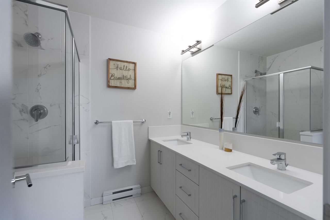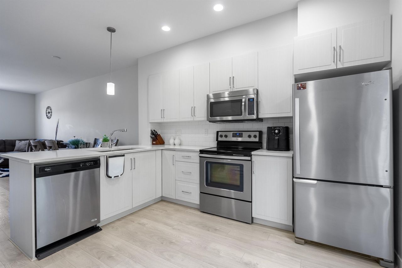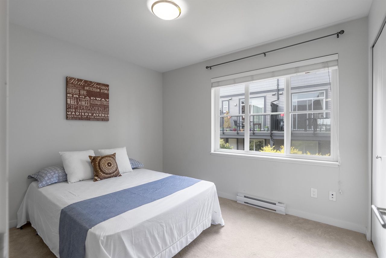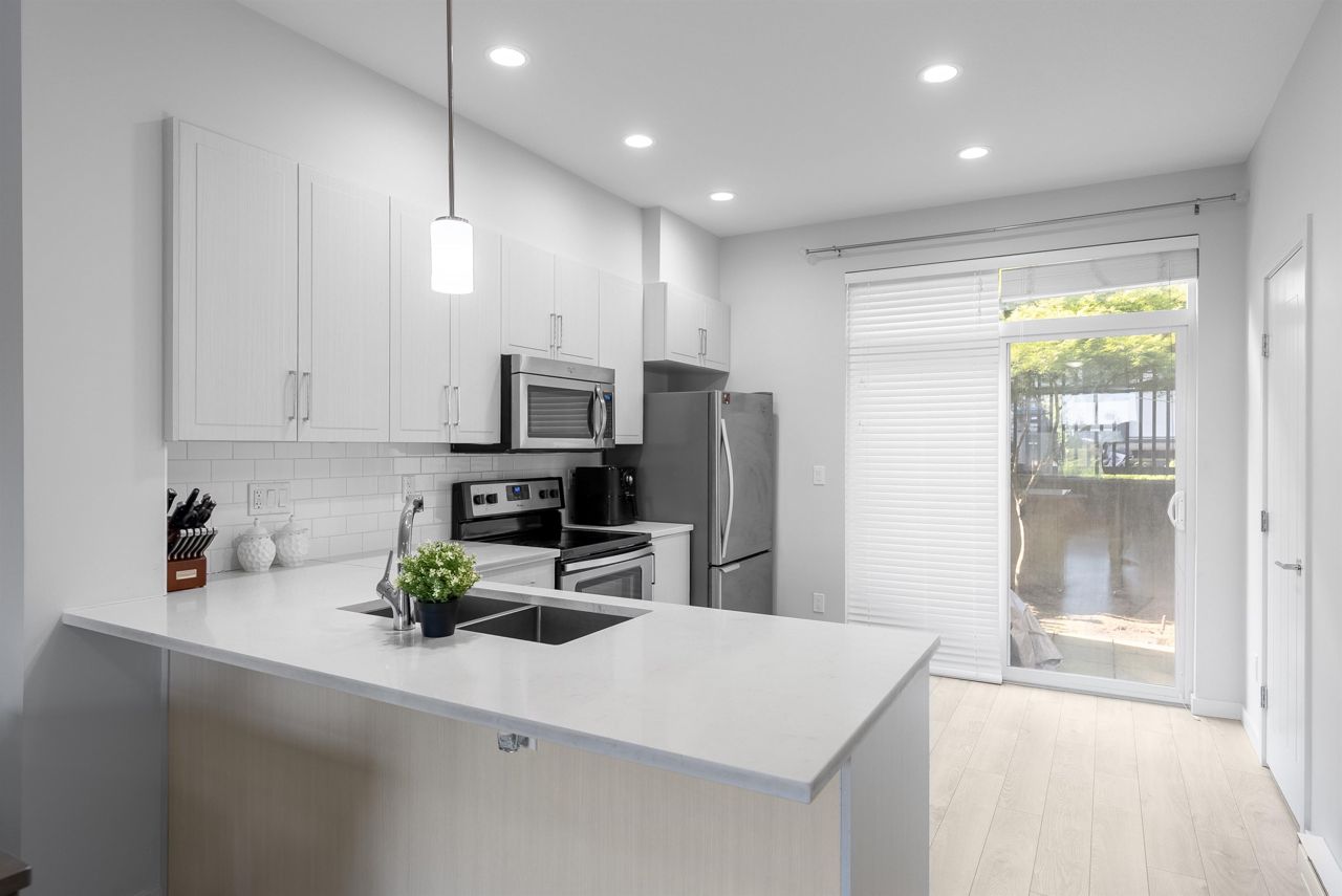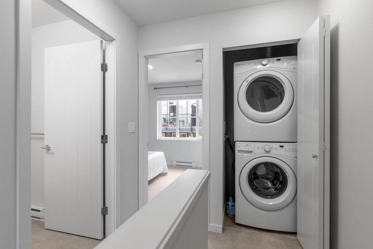 Very well kept spacious 2 bed, 3 bath unit in one of the very well maintained SYNC Complex. Main Floor Offers large living room, open concept kitchen featuring solid surface quartz countertops, S/S appliances, washroom & WALK-OUT PATIO. Top floor features a master bedroom with ensuite, another bedroom, full bath & laundry. Large Double tandem Garage with lots of storage space. Very quiet and peaceful complex. Well run strata with lots of visitors parking, play ground and clubhouse. CENTRAL LOCATION minutes away from T.E. Scott Elementary, Surrey Traditional, Woodward Hill Elementary (French Immersion), Sullivan Heights Secondary, BELL CENTRE, Shopping & Recreation. Close to all levels of schools, transit, major highways and lots of amenities.OPEN HOUSE SAT&SUN 1-4PM.