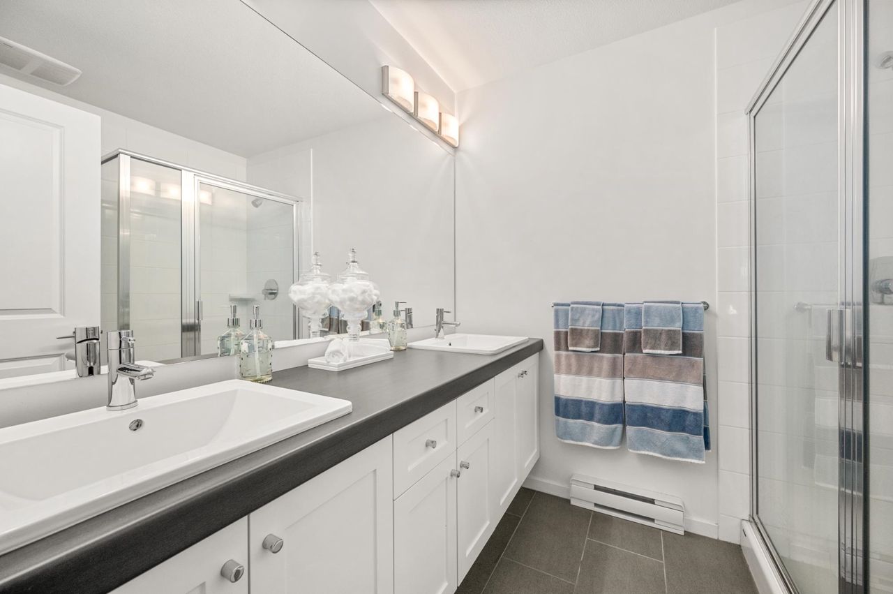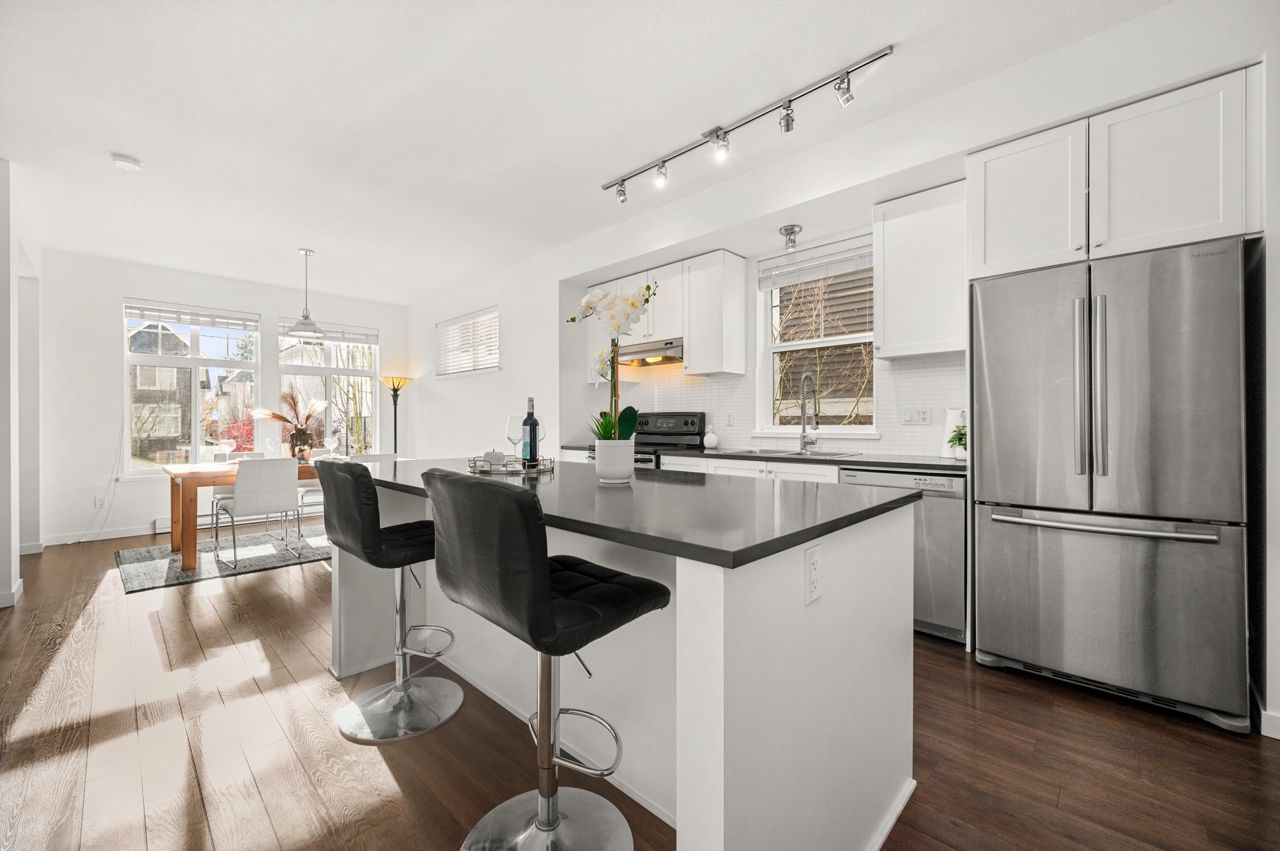 CAMBRIDGE PARK END UNIT! You will not be disappointed in this well-maintained unit. Main floor boasts an abundance of natural light and extra wide living spaces. An oversized kitchen island with quartz counters, SS appliances, custom flooring, creating an open and functional floorplan which is perfect for entertaining. Flex space off the dining room makes for a great walk-in pantry or office space. Upstairs features 3 bedrooms including a generous size primary with a large ensuite with double vanity. Double, tandem garage offers parking for 2 cars plus storage. Location offers close proximity to shopping, schools, transit and so much more.