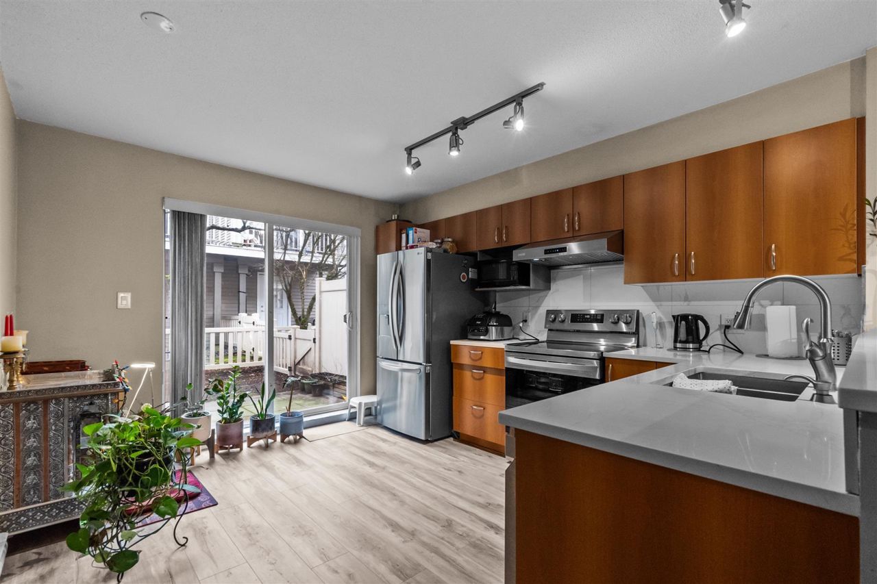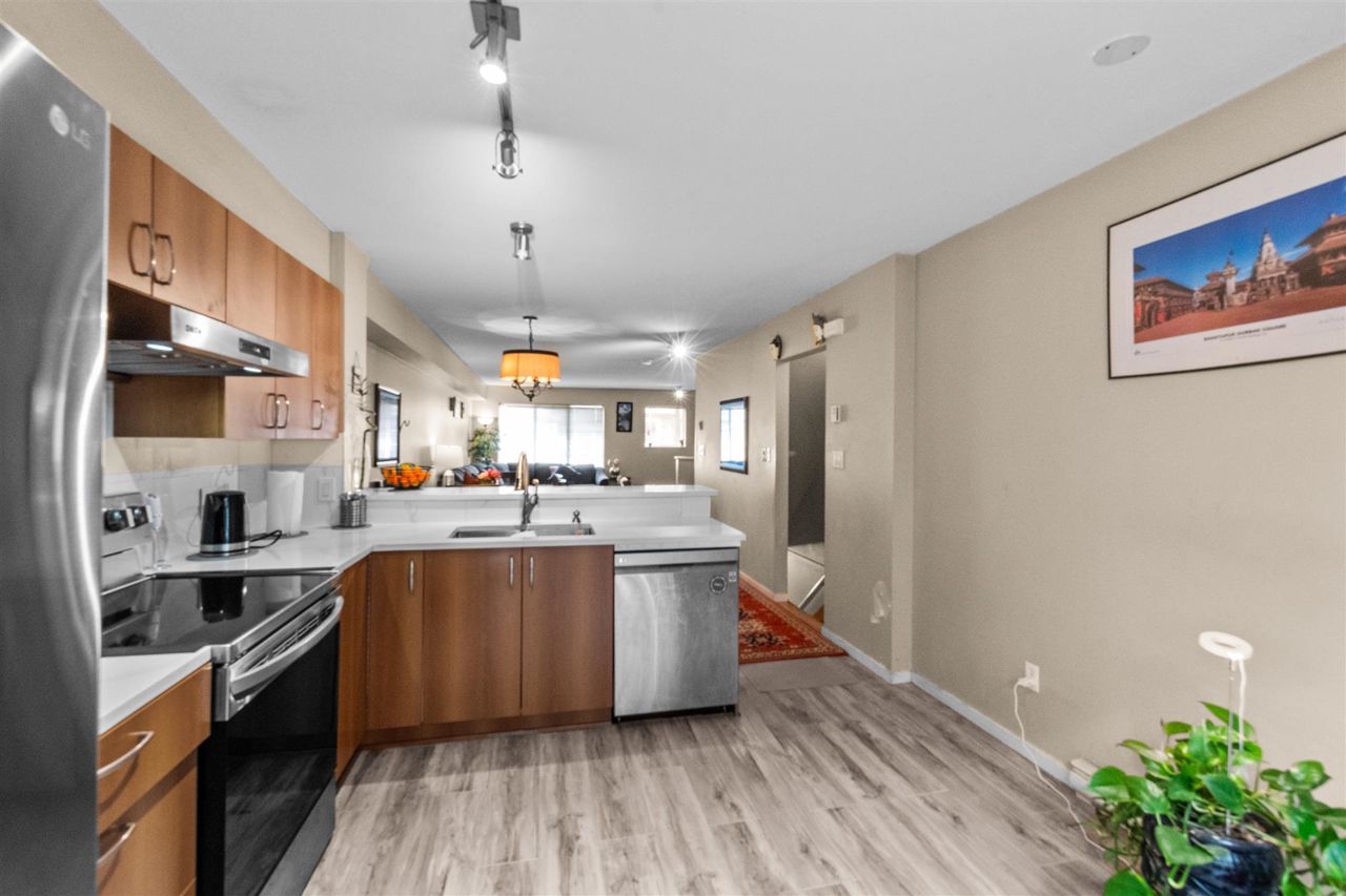 Welcome to this beautiful townhome located in the heart of Surrey. This largest unit of the complex has 3 Bed, 2 Bath with 1300 sqft of living area. The main level has , a living room, kitchen, dining room ,& pantry room. Maple Cabinets, Granite counters, High-End S/S Appliances, and natural light make this kitchen an Entertainer's Delight! Upper level with 3 spacious bedrooms & cabinets (walk-in closet). This unit has plenty of street parking & very short drive to the community center, malls, YMCA and swimming centre, Gym, party room, Superstore, Golf Courses, parks, restaurants, & all your shopping needs. Nearby school catchments are Cambridge Elementary and Sullivan Heights Secondary. Don't miss it and make this beautiful townhome your Dream Home.