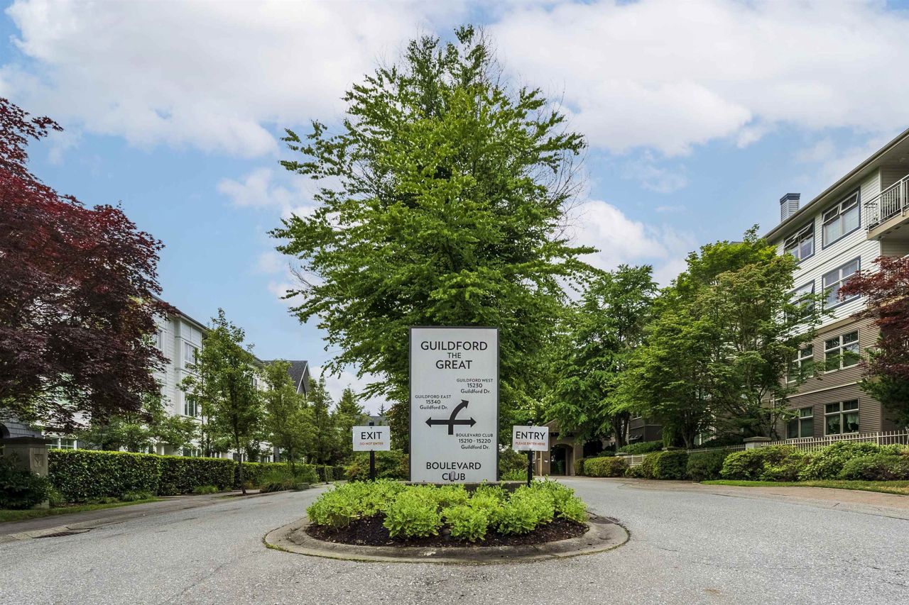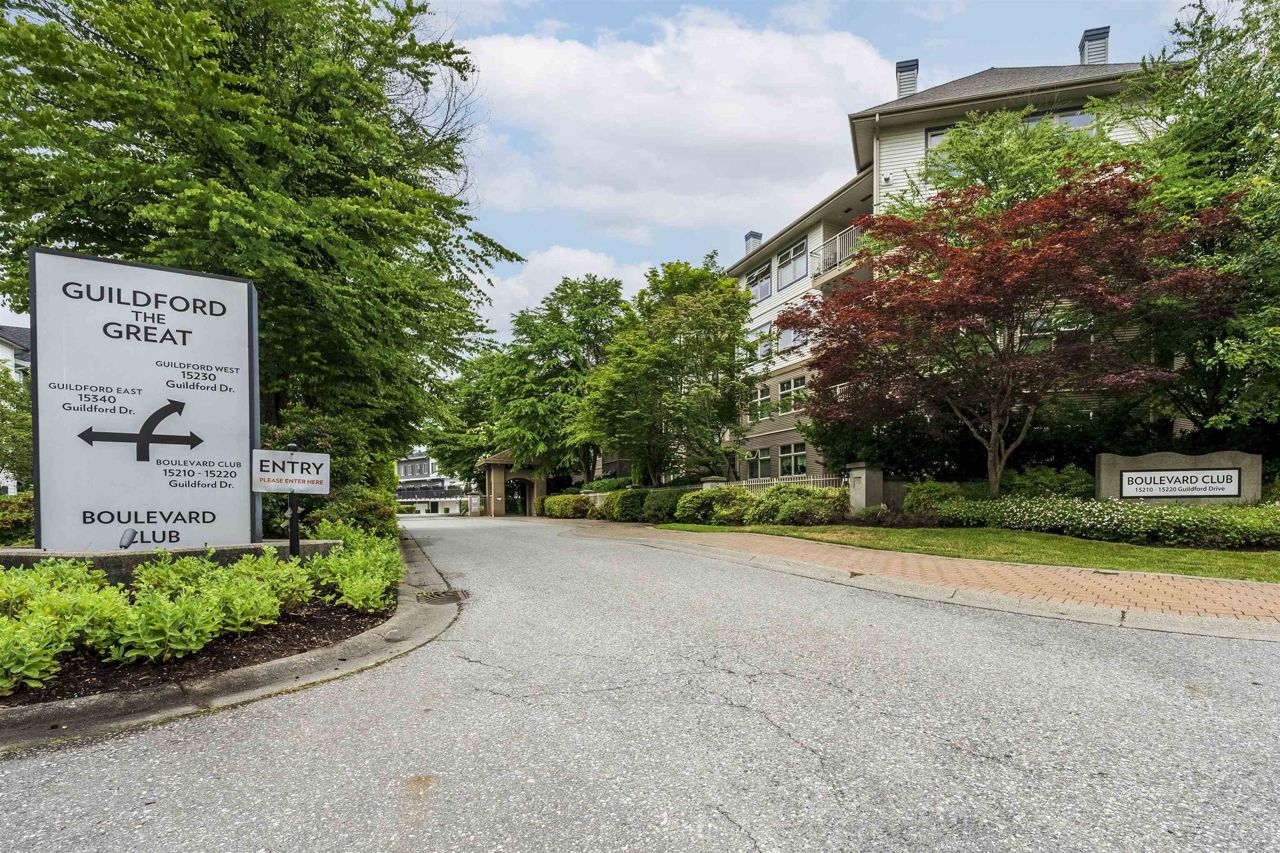 Location! Location! Location! One large bedroom and one den as a 2nd bedroom. Spacious and efficient floor plan with a bonus computer station area. Lots of updates recently including appliances, HWT and boiler, countertop in kitchen and bathroom, faucets, fresh painting. Newer laminate floors throughout. New functional design of kitchen counter space boasts an eating bar. Rarely found radiant floor Heating in APT. BOULEVARD CLUB, garden-like and peaceful complex located in the heart of Guildford, walking distance to Guildford Mall, Public Library and Rec Center. Hwy 1 is easily accessed with transit nearby. Worry free rain screened building. Lots of visitor parking stalls as well as extra parking that residents can rent. Open House at 2-4pm on Sat & Sun Aug 12&13