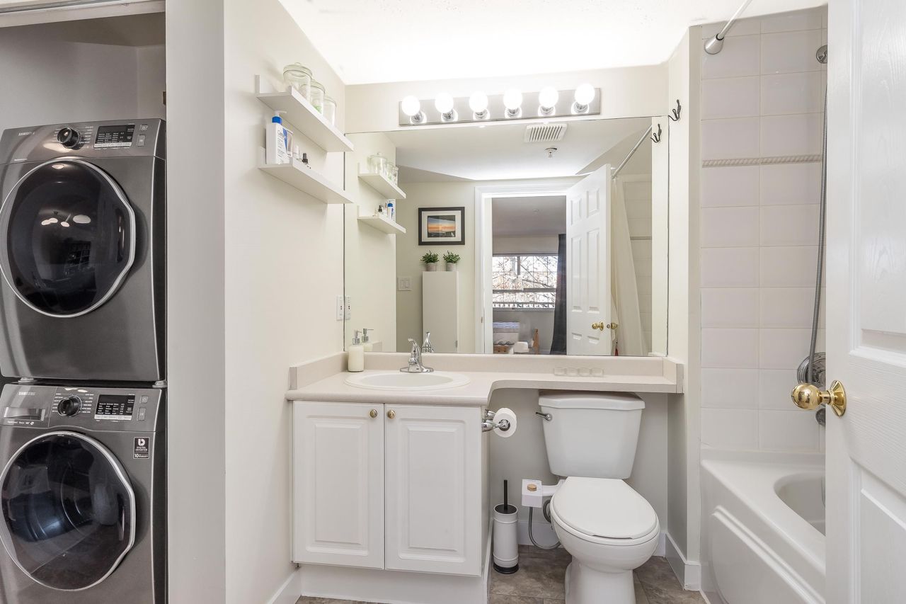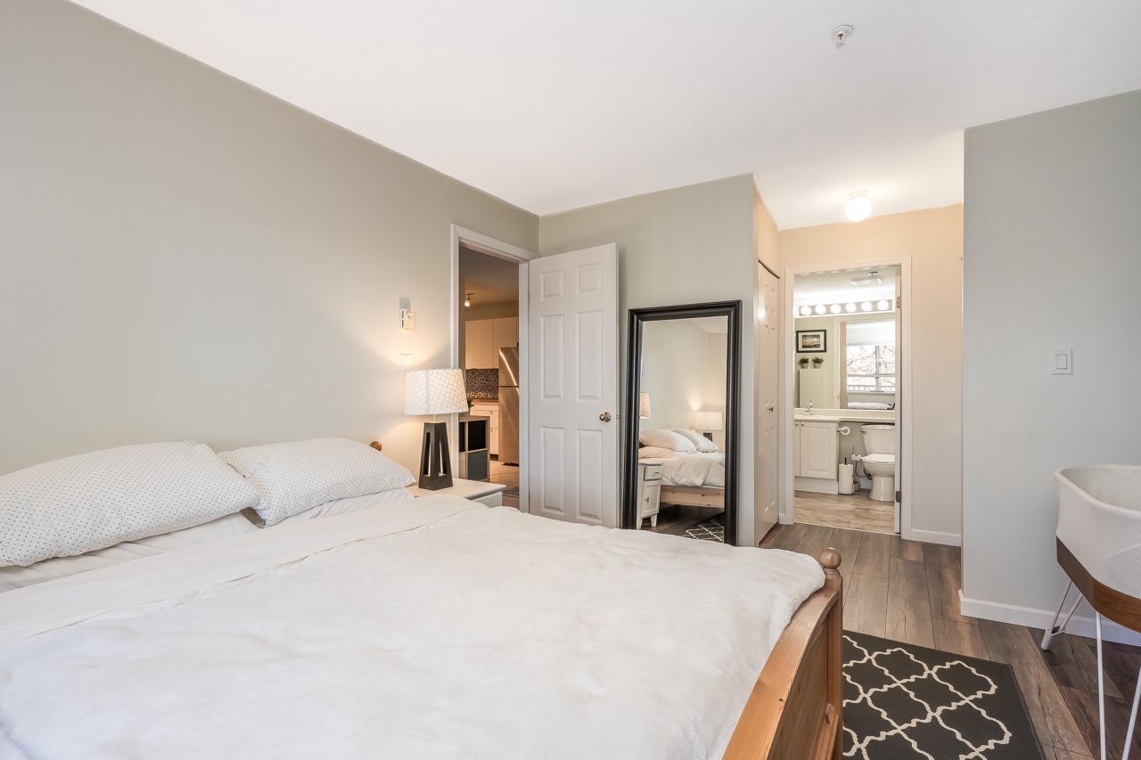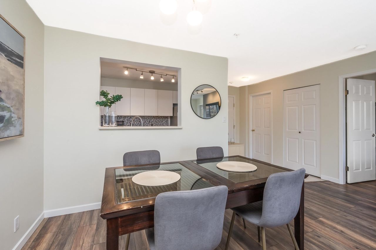 Welcome to Georgian Gardens! This beautiful 1 bedroom 1 bathroom is the perfect fit for First Time Buyers. Excellent floorplan with bright open living area, large bedroom with his & hers closets and an updated kitchen. Updates include: kitchen cabinets/countertop, appliances, laminated flooring and fresh paint throughout. Centrally located walking distance to Guilford Mall, Restaurants, Shops, Surrey Recreation Centre and all transit. Amenities include: Exercise room, club house, bike storage. Minutes to Port Mann Bridge & Highway 1