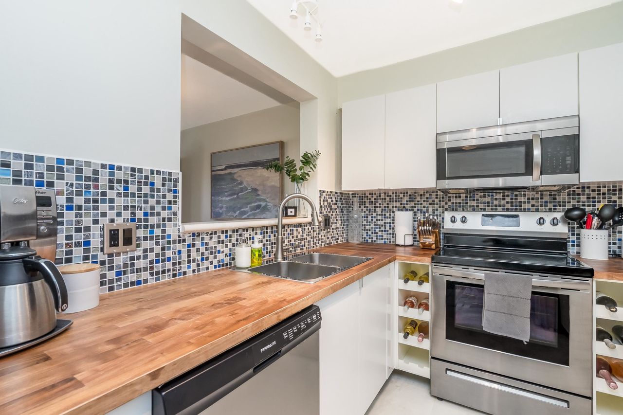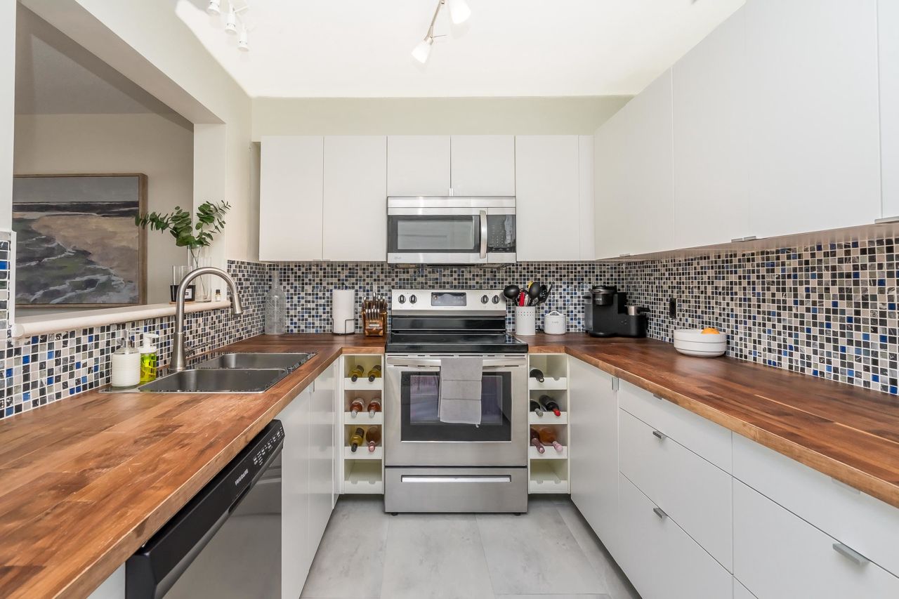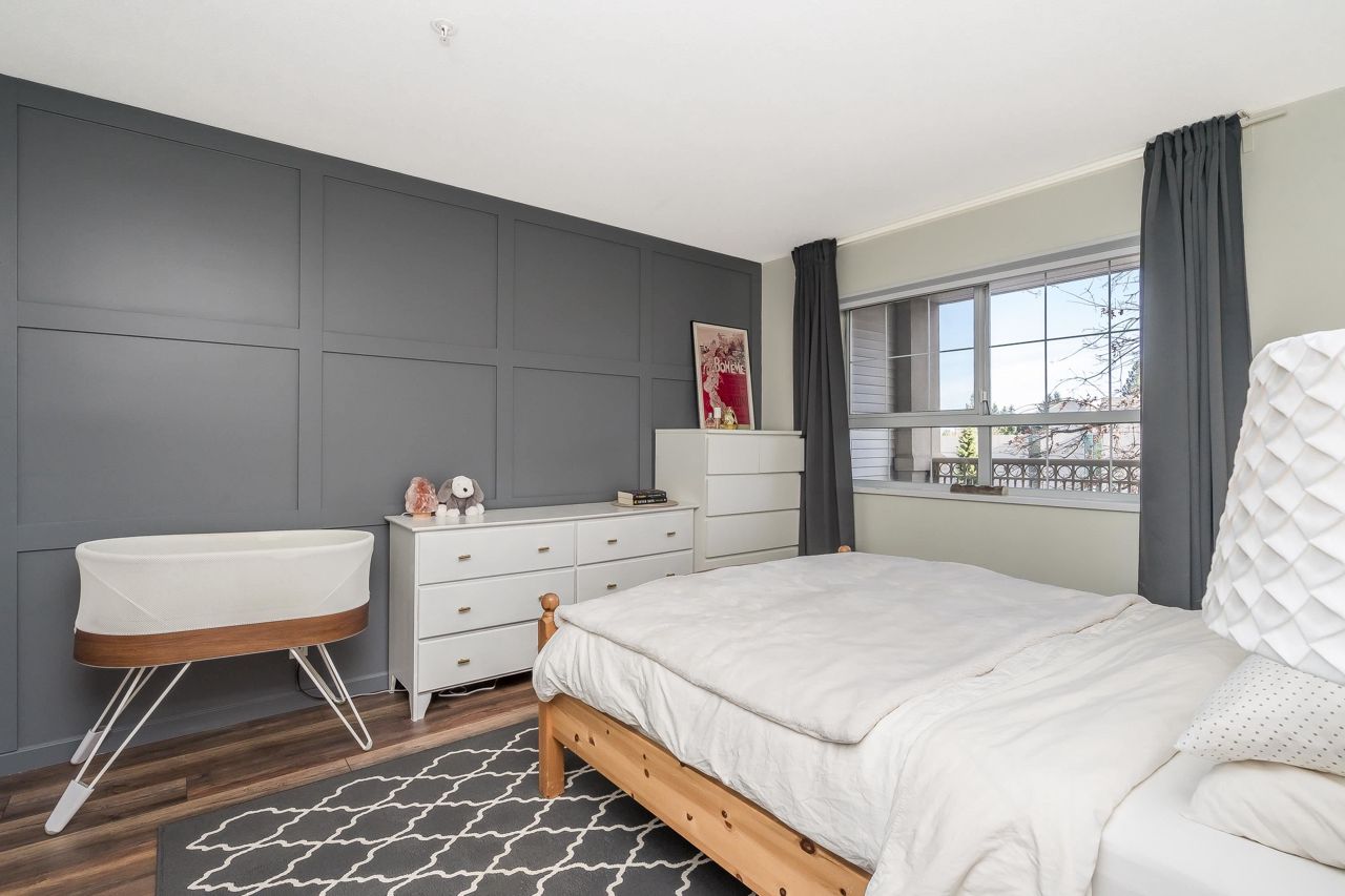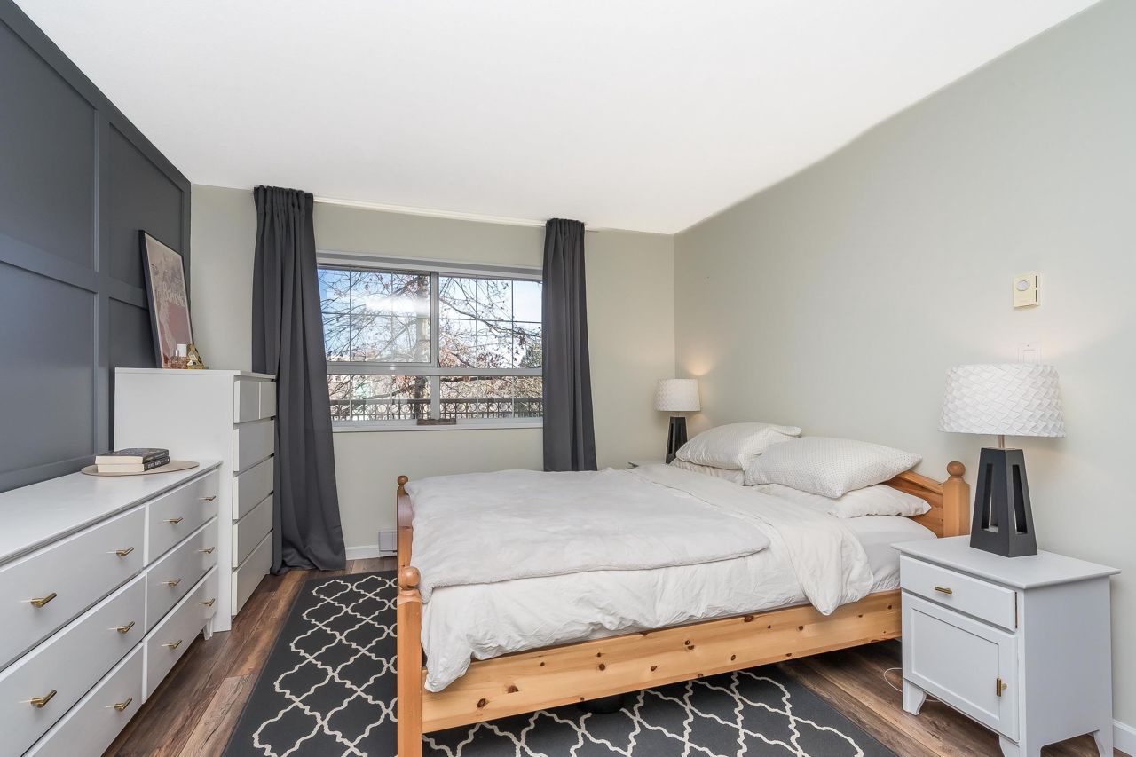 Welcome to Georgian Gardens! This beautiful 1 bedroom 1 bathroom is the perfect fit for First Time Buyers. Excellent floorplan with bright open living area, large bedroom with his & hers closets and an updated kitchen. Updates include: kitchen cabinets/countertop, appliances, laminated flooring and fresh paint throughout. Centrally located walking distance to Guilford Mall, Restaurants, Shops, Surrey Recreation Centre and all transit. Amenities include: Exercise room, club house, bike storage. Minutes to Port Mann Bridge & Highway 1
