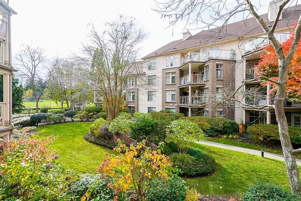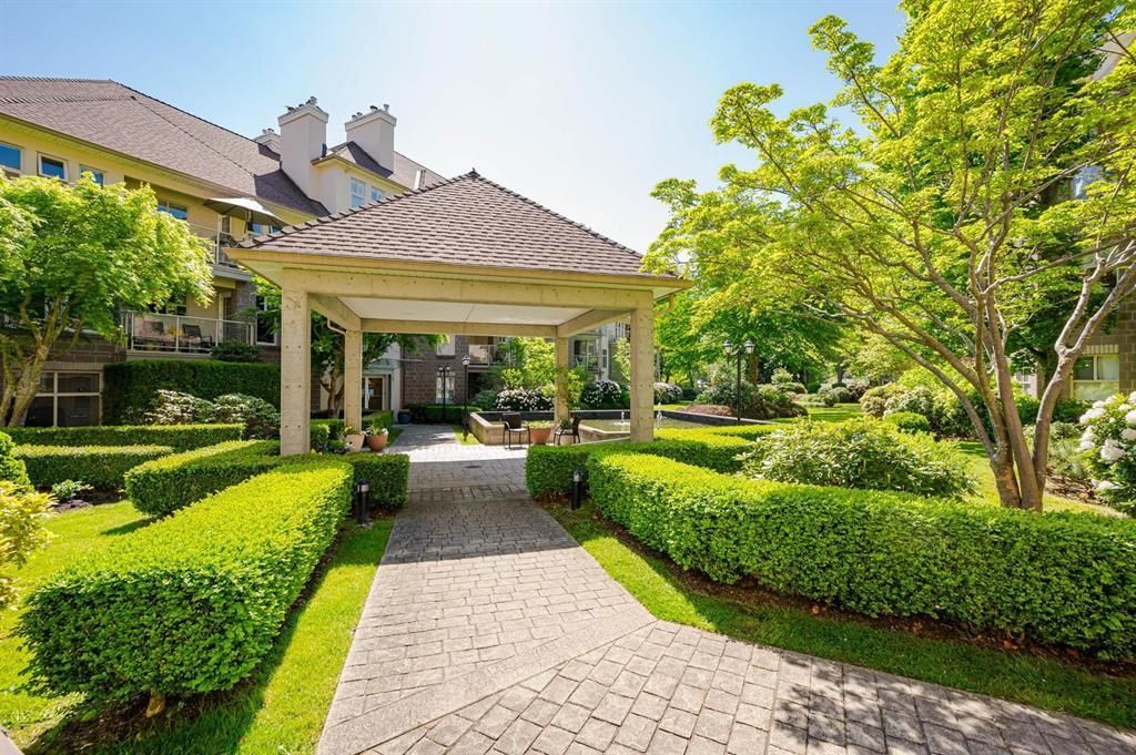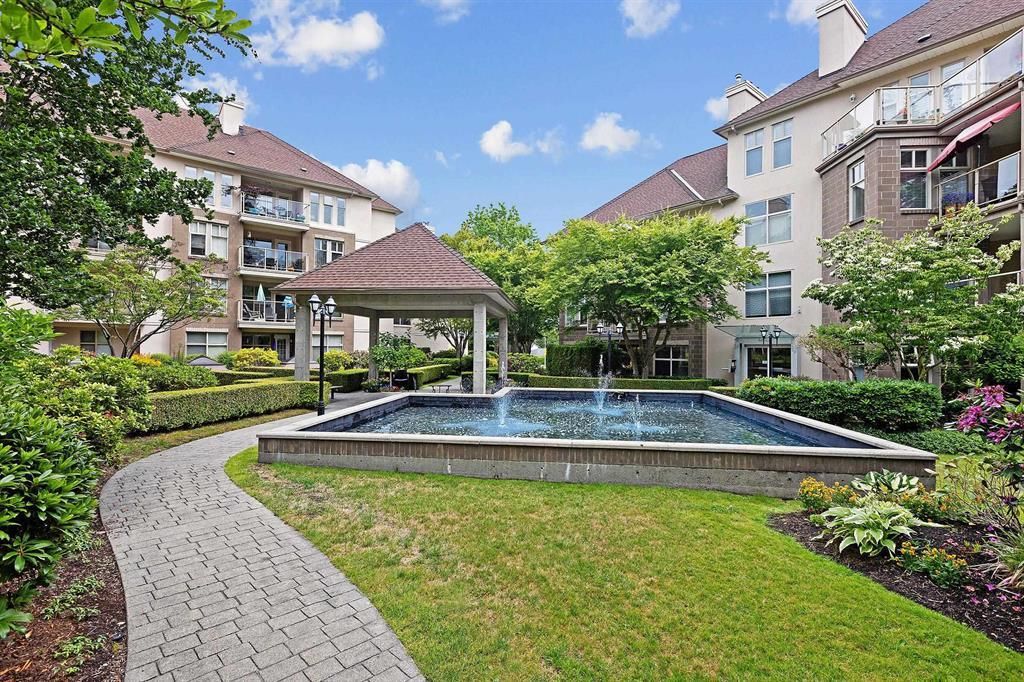 Top floor at Stratford Gardens, with a beautiful, quiet/peaceful westerly view of the fountain, gardens and Bakerview Park from the spacious sun filled oversized balcony. One of my favorite developments in South Surrey/White Rock! Walking distance to all amenities. This spotless home is beyond immaculate and has been meticulously updated over the years, featuring a beautiful newer kitchen, with quartz counter tops, SS appliances and custom Hunter Douglas blinds throughout. Two spacious bedrooms/bathrooms with a his and hers vanity in the gorgeous Master ensuite. Amenities galore, gym/dance/yoga studio, Pub-style club house with BBQ patio, 2 guest suites, workshop, secure bike storage, billiard room, library and generous storage locker. Quick possession possible. Pets allowed.