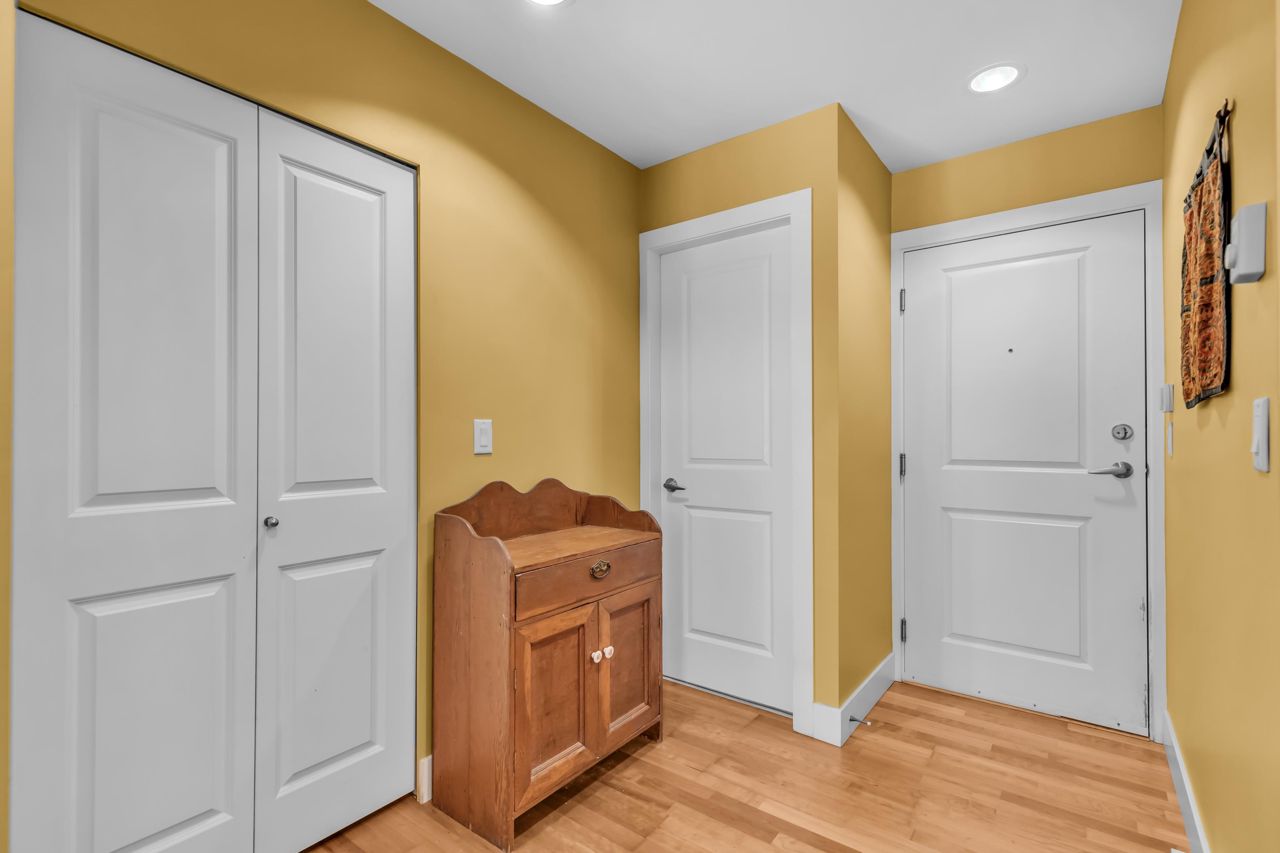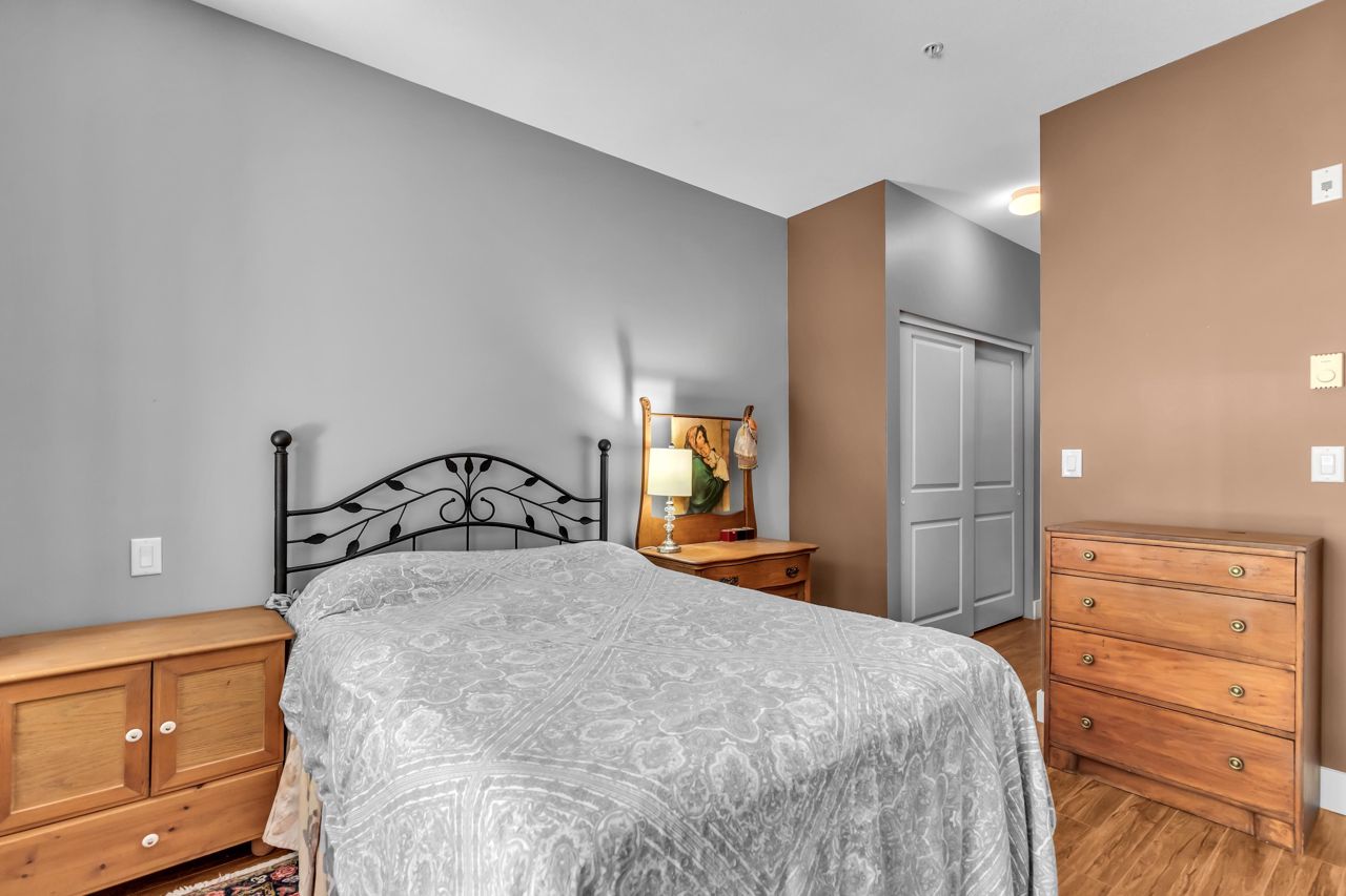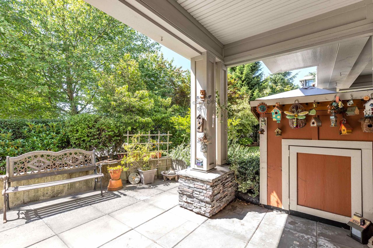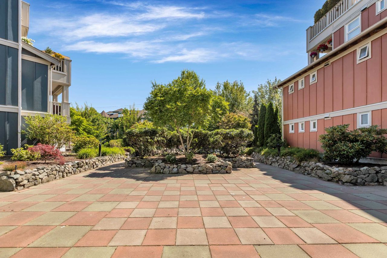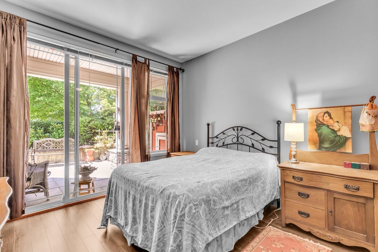 Come home to this sunny 1 bed/1 bath ground floor unit in the desirable Ocean Bay Villa complex! With an easy walk down the hall from the front entrance and private walk-out patio, this home is the perfect single level living. Take the elevator down to the parking garage with 1 stall and 1 storage unit included. The cheater ensuite gives access to guests as well as your walk-through closet into a spacious primary bedroom large enough for your full bedroom set. Sliding glass door provides a second entrance way to the covered patio "secret garden", with storage shed. Rentals and pets welcome! Building amenities include guest suite, gym, lounge, & bike room. Ocean Bay Villa is centrally located, WALK to Peace Arch Hospital, shopping, restaurants, transit, and drive 5 min. to White Rock Beach.