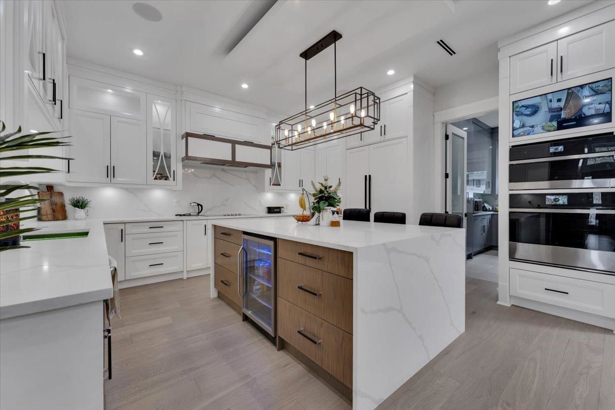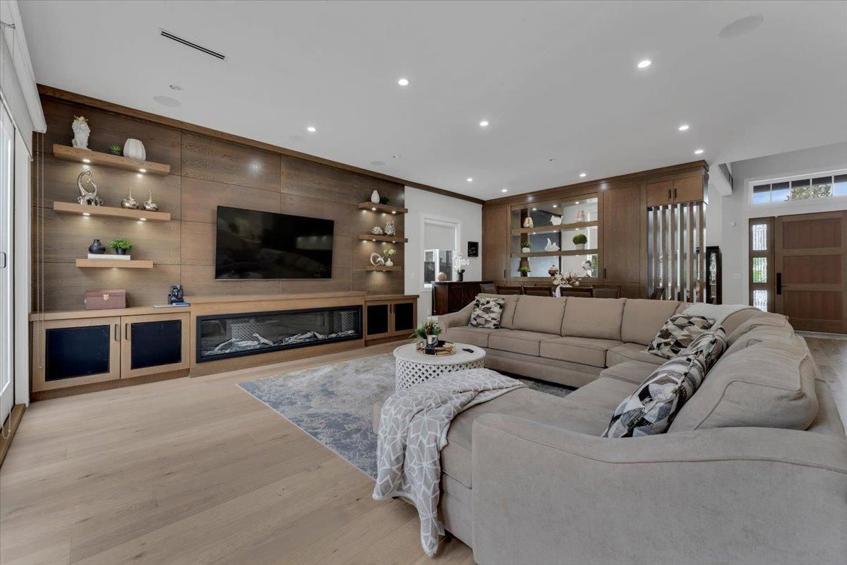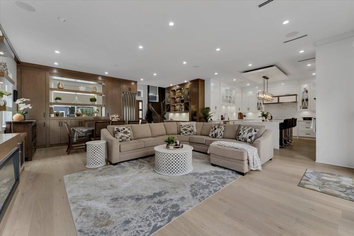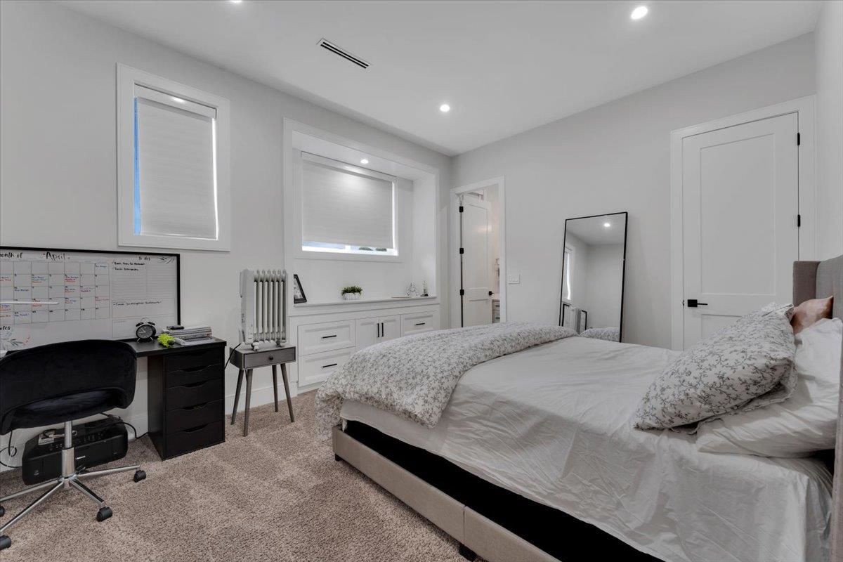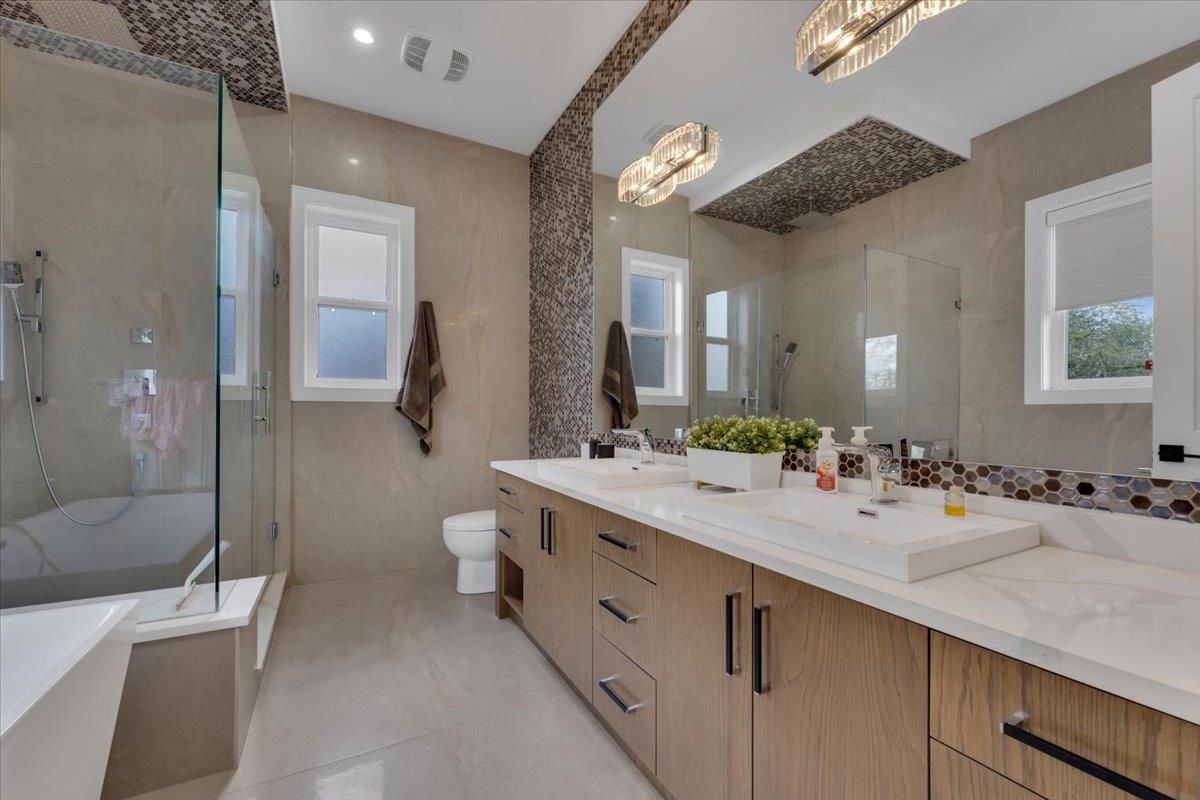 An absolute "show stopper" with this luxurious custom built residence only 2 years young. This amazing design features double height and 10' ceilings on main floor. Tons of natural light soaks in with private southern exposed lot measuring over 9000 sq.ft. Features include: dream kitchen with JennAir appliances & quartz countertops, spice kitchen & tons of cabinet space, full sliding glass door opens to sunny back patio, 2 deluxe fireplaces, hardwood floors, spectacular woodwork, radiant heat, air conditioning, automated lighting, main floor media room, and legal side suite. Four oversized bedrooms upstairs are complete with ensuites. Superbly located and convenient to all amenities, this gem produces $3800/mo extra revenue with suite income. A beauty not to be missed, viewing by app.