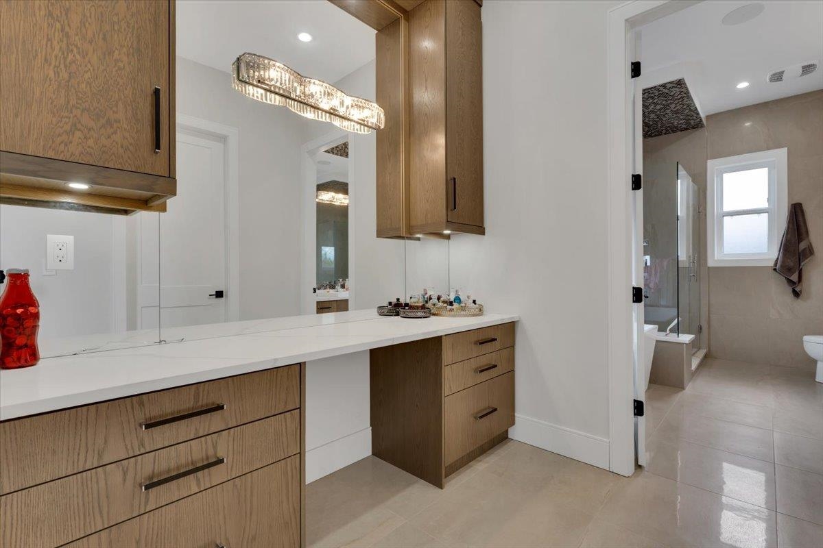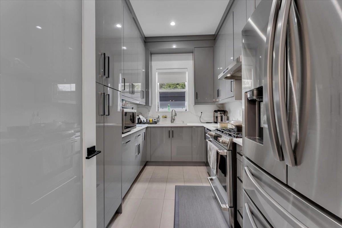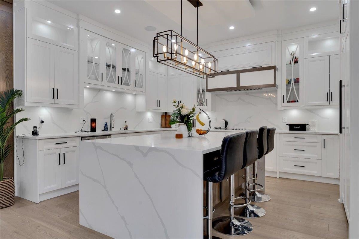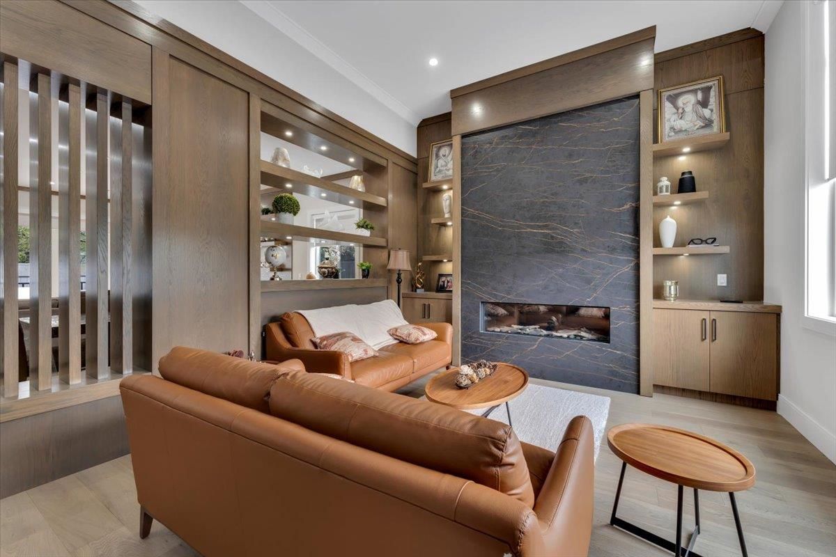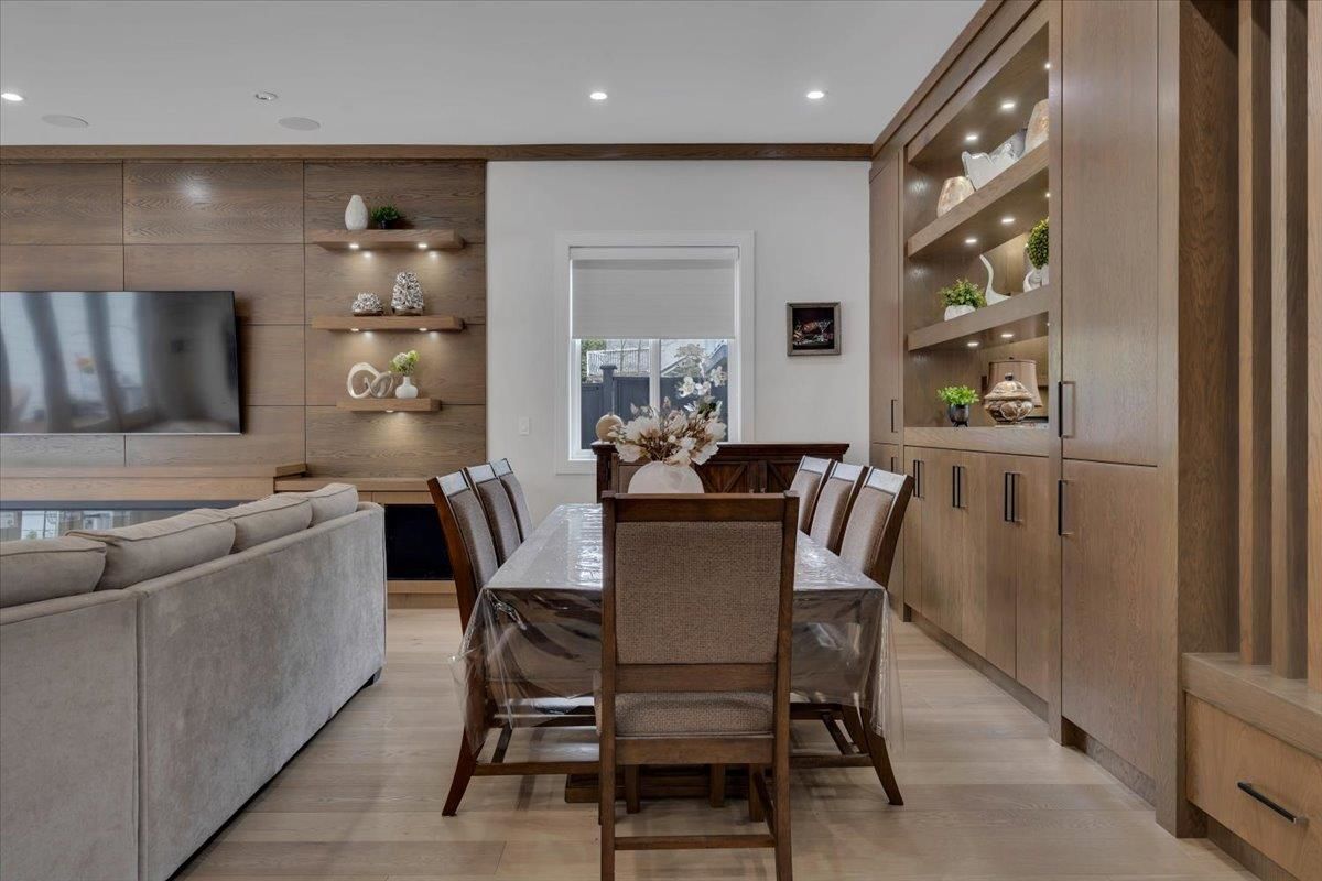 An absolute "show stopper" with this luxurious custom built residence only 2 years young. This amazing design features double height and 10' ceilings on main floor. Tons of natural light soaks in with private southern exposed lot measuring over 9000 sq.ft. Features include: dream kitchen with JennAir appliances & quartz countertops, spice kitchen & tons of cabinet space, full sliding glass door opens to sunny back patio, 2 deluxe fireplaces, hardwood floors, spectacular woodwork, radiant heat, air conditioning, automated lighting, main floor media room, and legal side suite. Four oversized bedrooms upstairs are complete with ensuites. Superbly located and convenient to all amenities, this gem produces $3800/mo extra revenue with suite income. A beauty not to be missed, viewing by app.