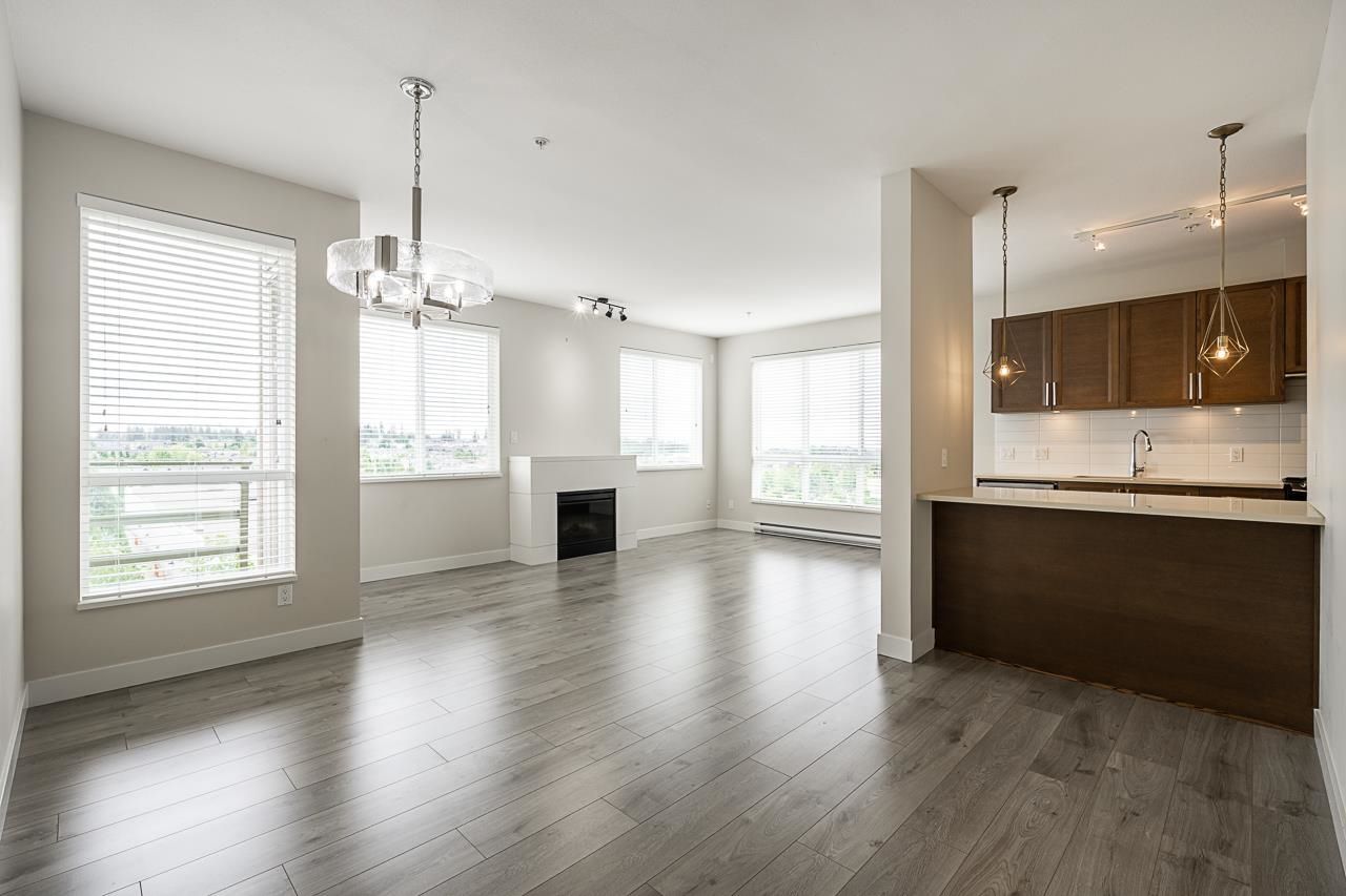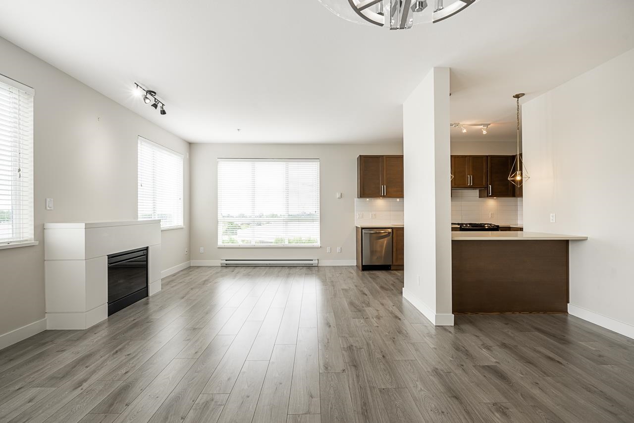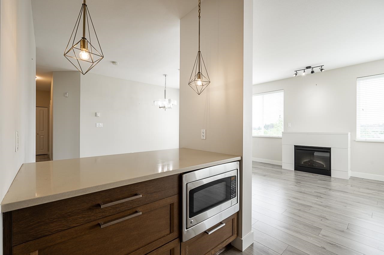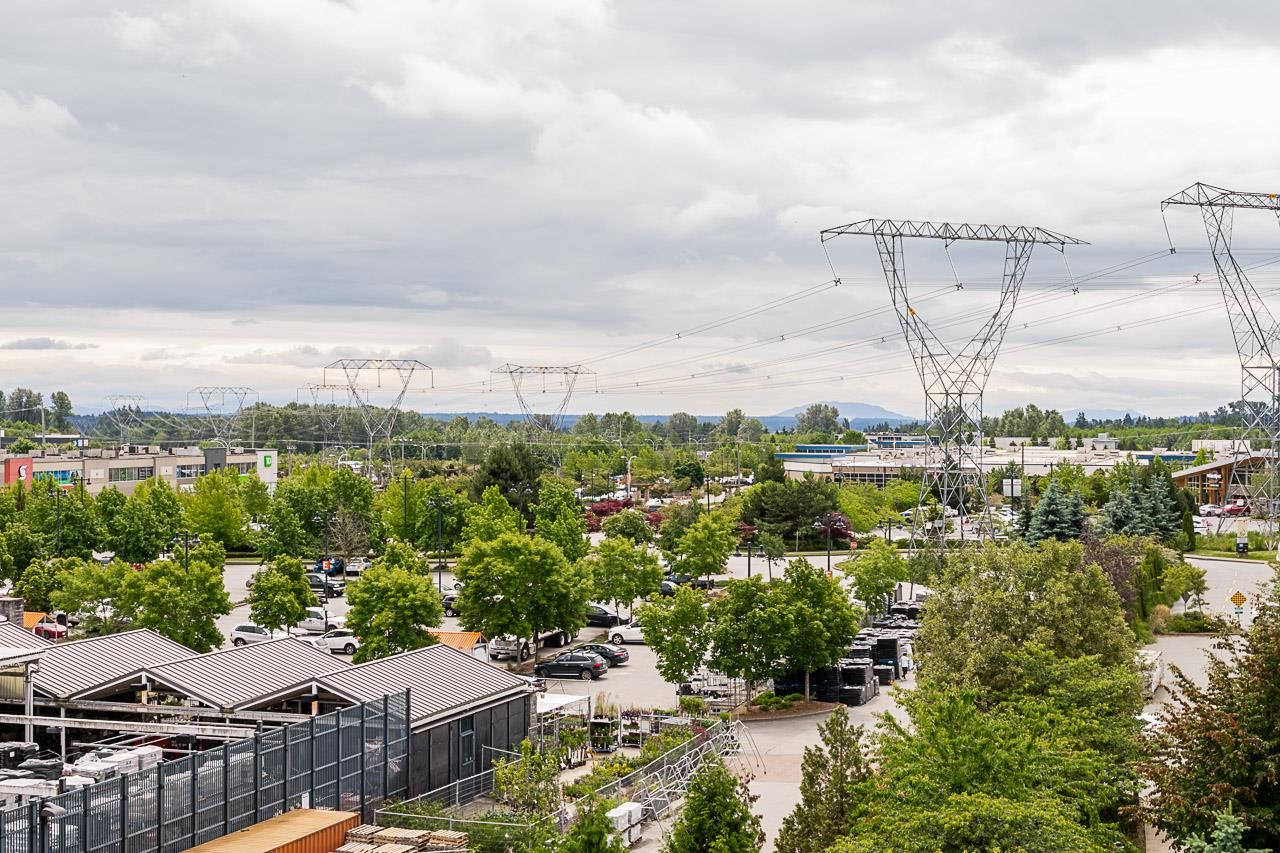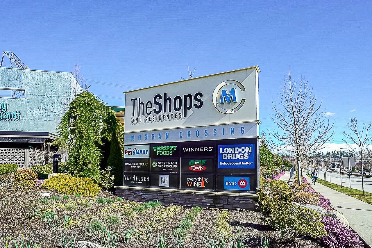 Welcome to The Summit House at Morgan Crossing! This corner unit offers unobstructed views of Mt Baker to the South and East, featuring three spacious bedrooms and two full bathrooms within its 1204 sq.ft of living space. The residence boasts a spacious balcony with a spectacular view of the North Shore Mountains, Inside, you'll find an open concept plan that maximizes functionality without wasted space, complemented by laminate flooring, designer lighting, and abundant natural light in the living room and dining area, where a gas fireplace adds warmth. As a bonus, this unit includes two side-by-side parking spaces & a storage locker. The well maintained building features a lovely garden. Step out your door to an amazing selection of shops ,services, restaurants, Winners, Walmart & more .