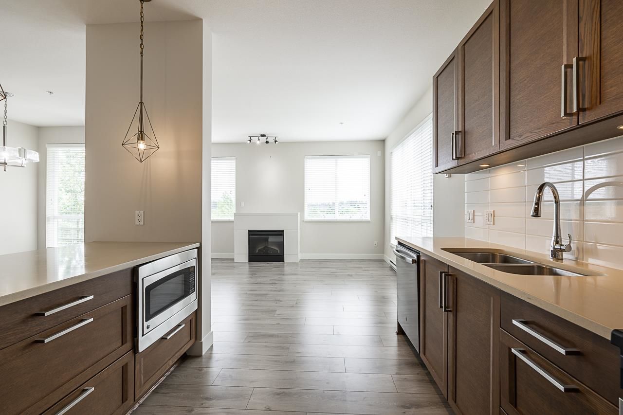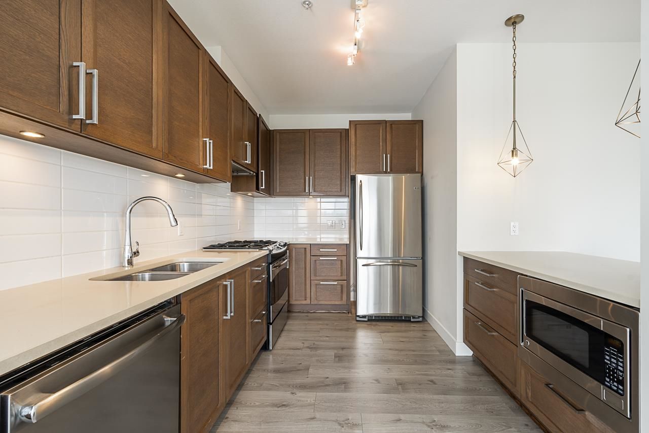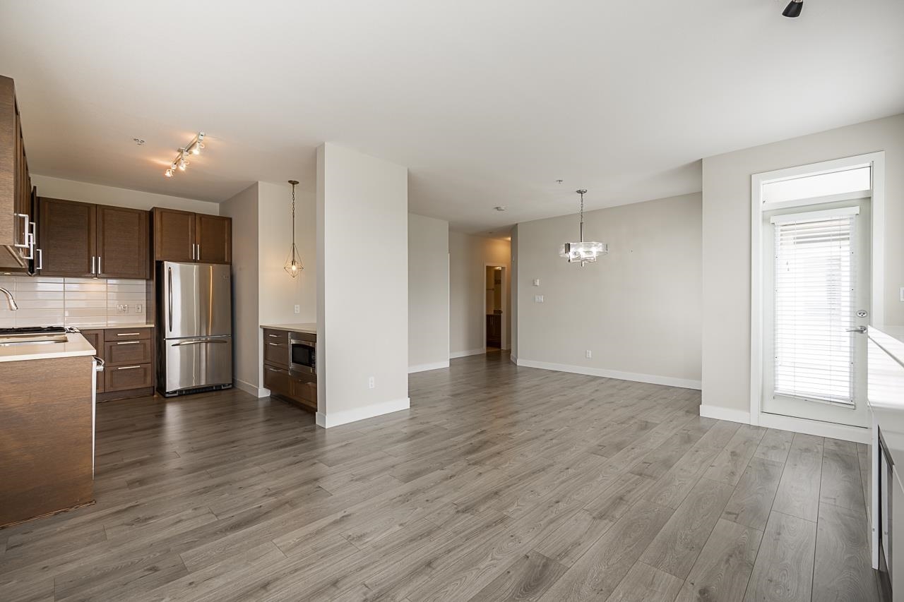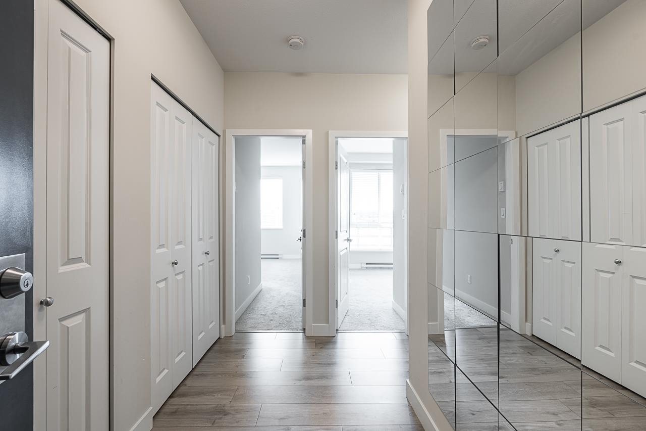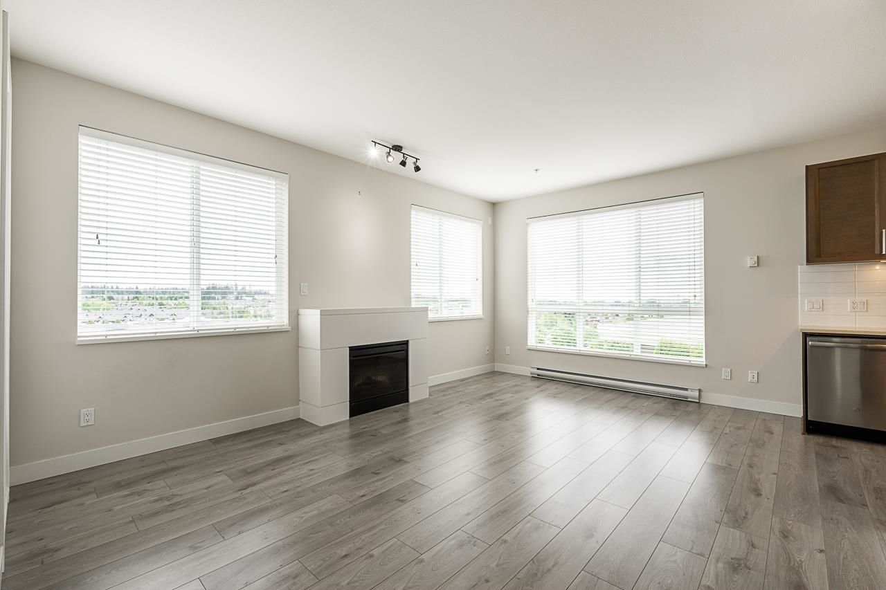 Welcome to The Summit House at Morgan Crossing! This corner unit offers unobstructed views of Mt Baker to the South and East, featuring three spacious bedrooms and two full bathrooms within its 1204 sq.ft of living space. The residence boasts a spacious balcony with a spectacular view of the North Shore Mountains, Inside, you'll find an open concept plan that maximizes functionality without wasted space, complemented by laminate flooring, designer lighting, and abundant natural light in the living room and dining area, where a gas fireplace adds warmth. As a bonus, this unit includes two side-by-side parking spaces & a storage locker. The well maintained building features a lovely garden. Step out your door to an amazing selection of shops ,services, restaurants, Winners, Walmart & more .