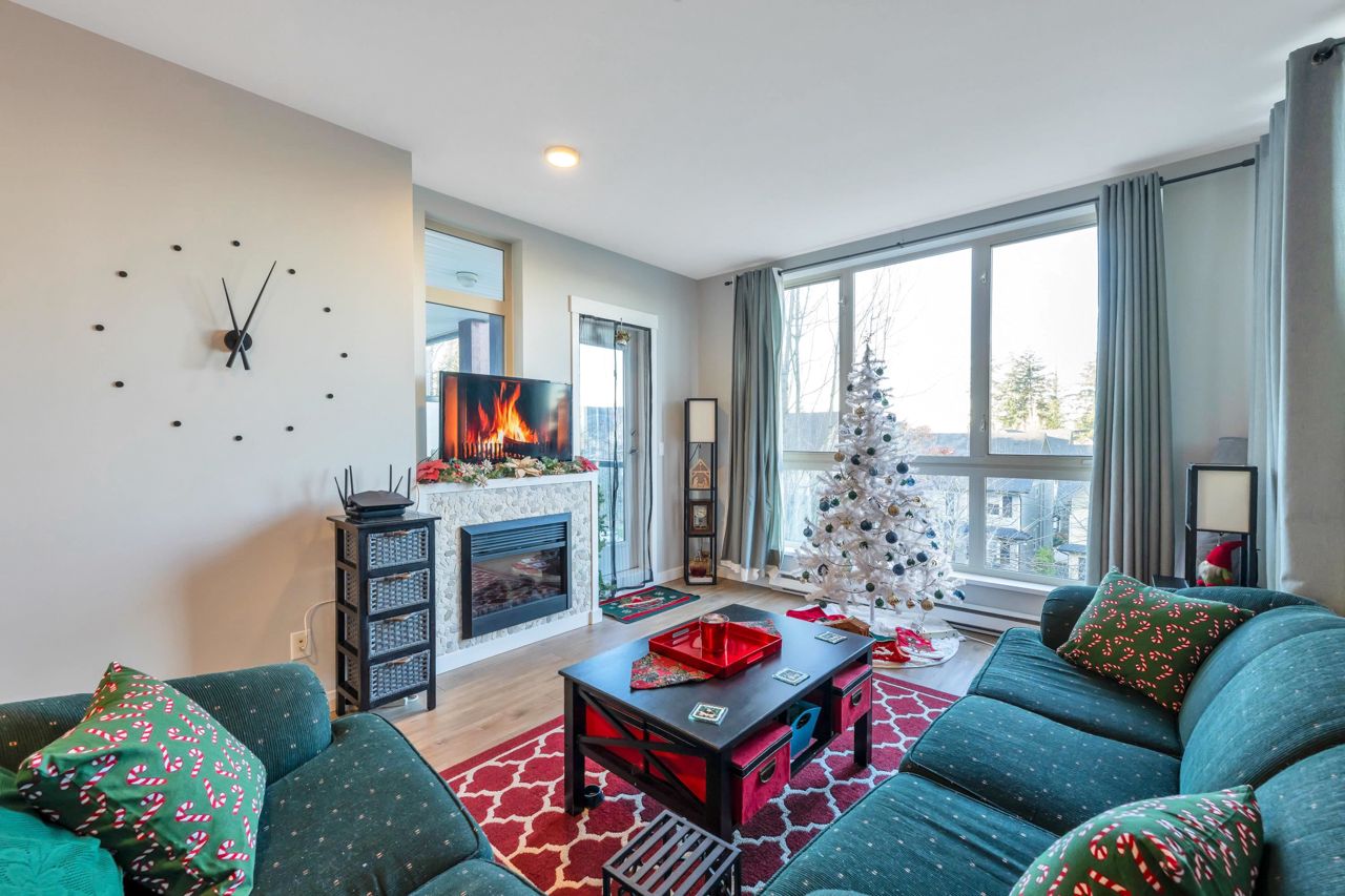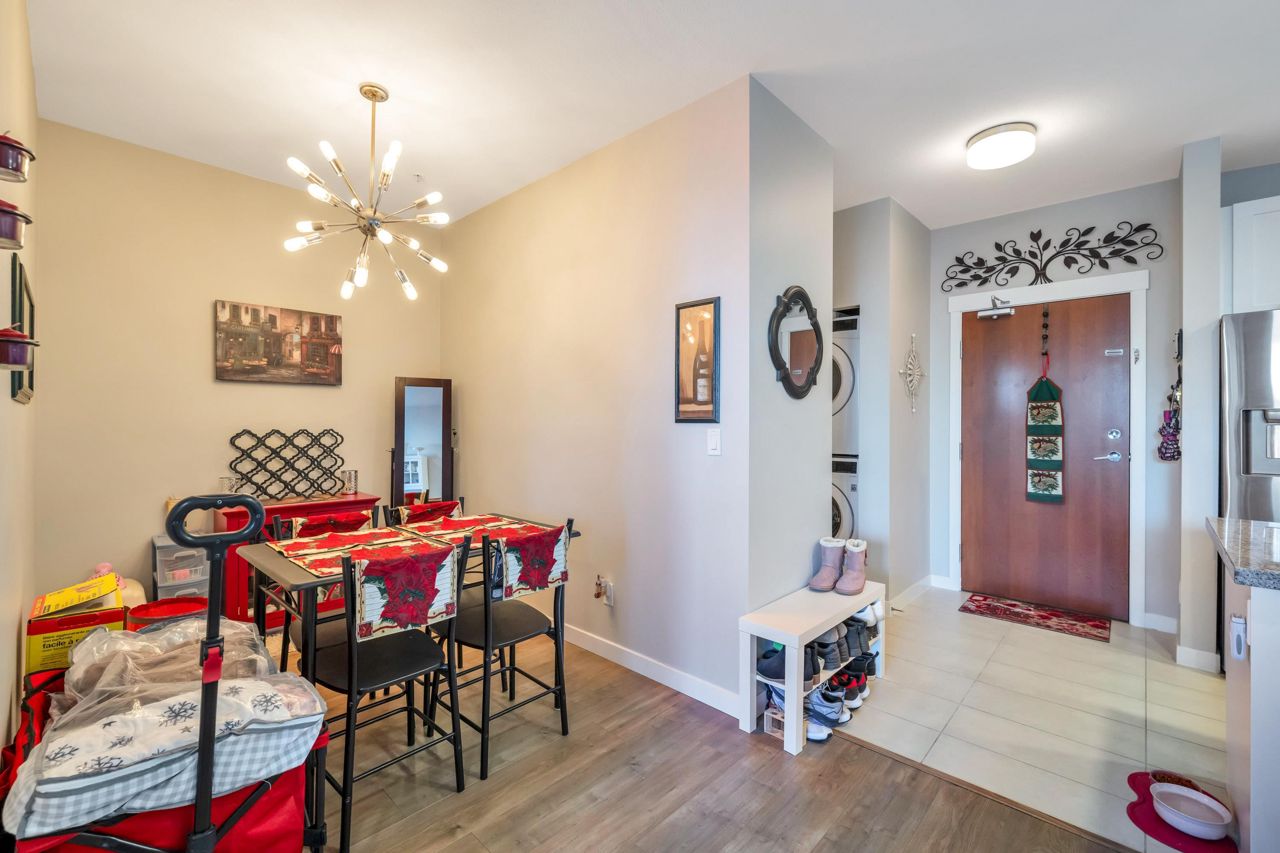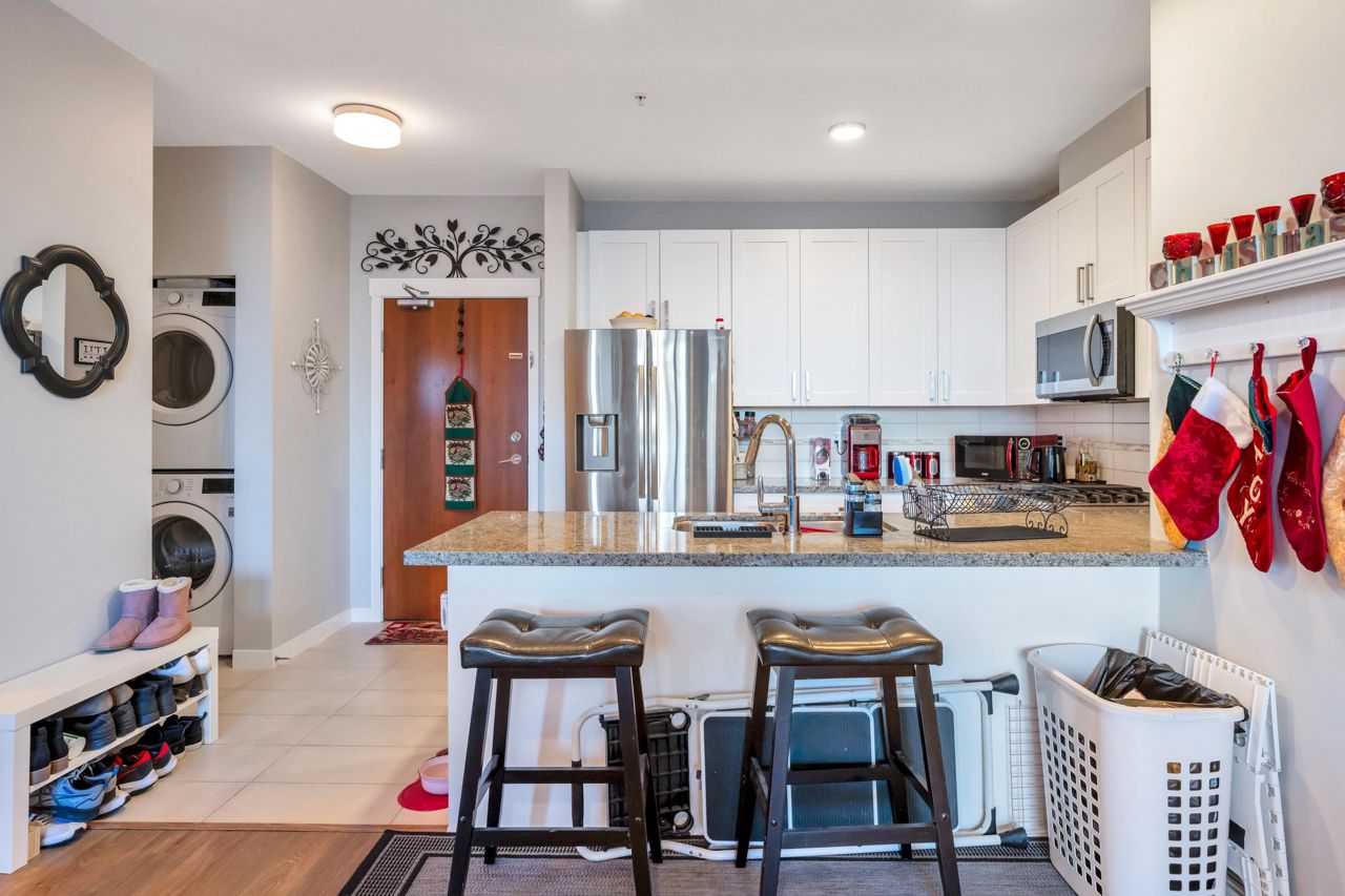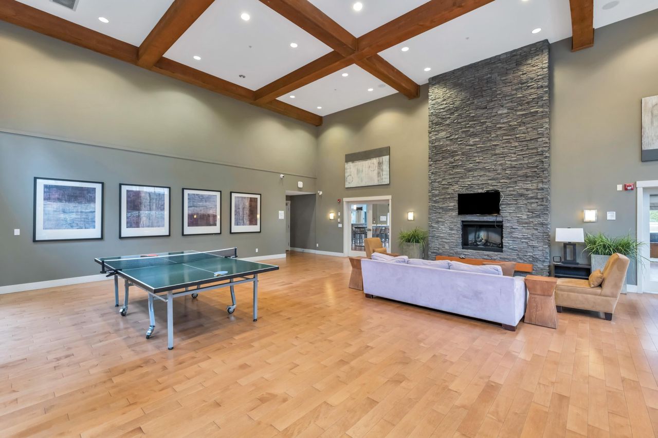 Welcome to The Morgan! This meticulously maintained two bedroom & den home is the epitome of quality. With large windows throughout, this unit is flooded w/ natural light. The kitchen boasts granite countertops, a breakfast bar w/room for 3, 2020 installed stainless steel appliances & gas range. The living room showcases a cozy fireplace & access to the covered balcony, ideal for enjoying your morning coffee. Modern flooring & newer paint throughout. Generous sized den perfect for a home office a bonus. The spacious Primary bedroom features a spa like ensuite offering the perfect retreat after a long day. The second bedroom & guest bath complete the living space. Amenities are many offering an exercise centre, outdoor pool & hot tub to name a few. One parking included. Pets Welcome.