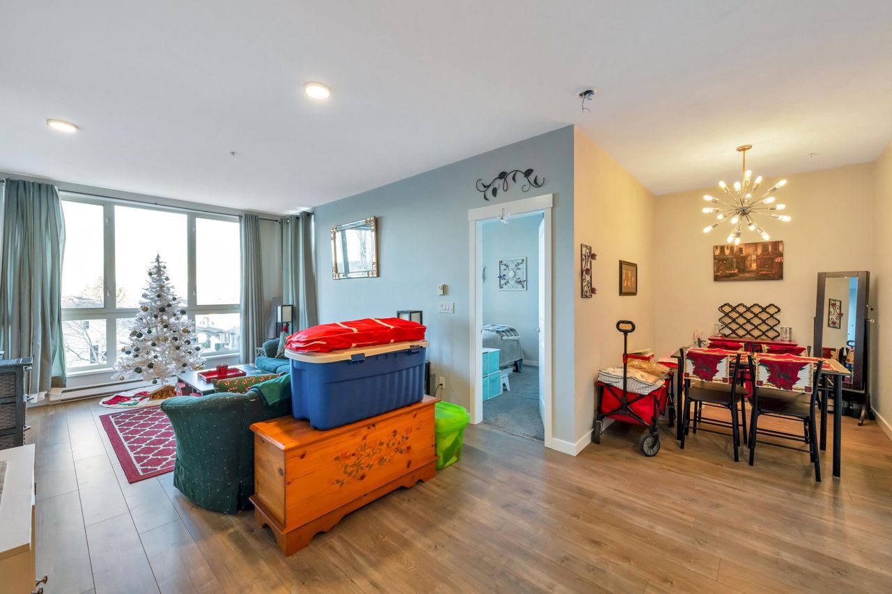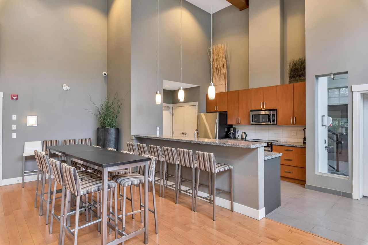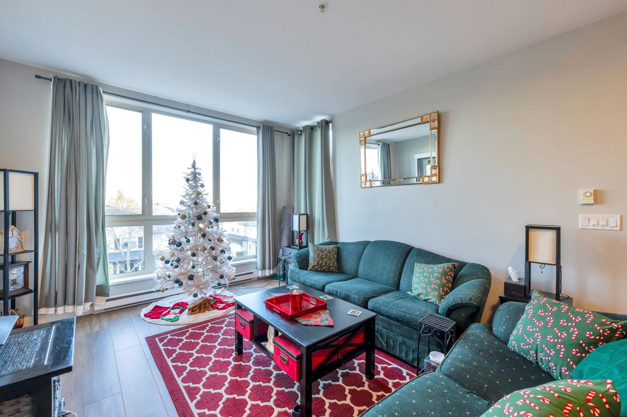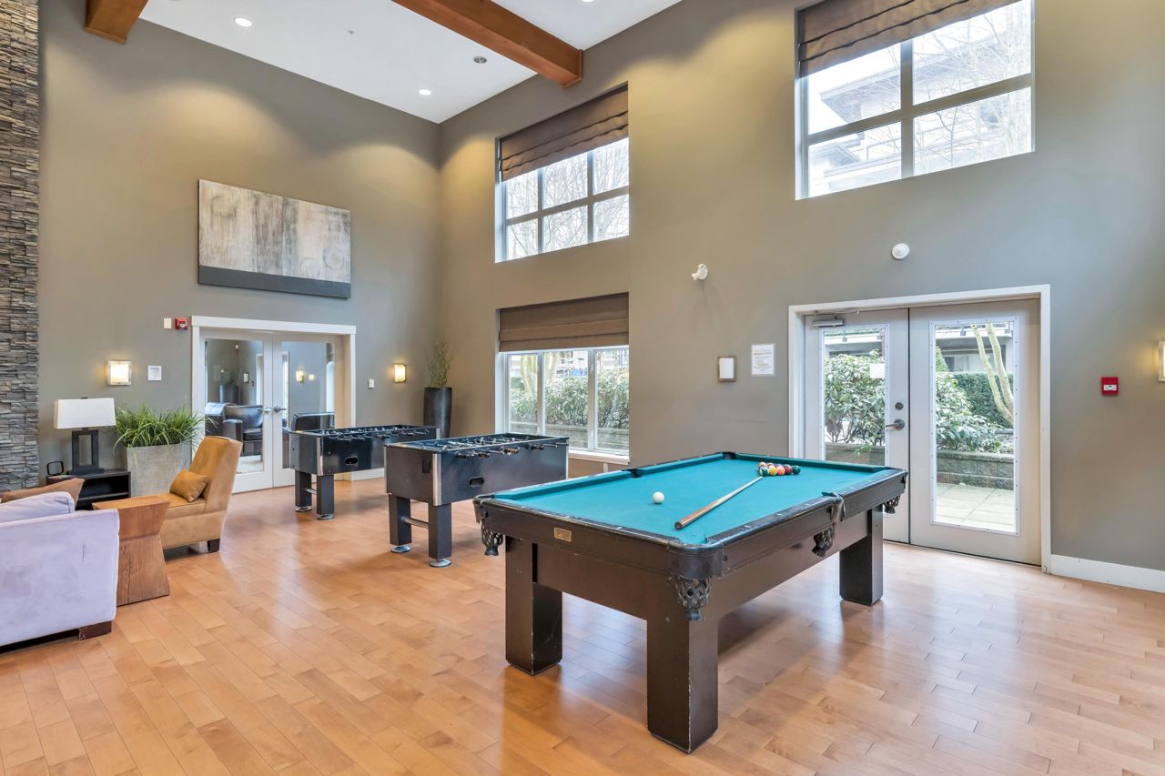 Welcome to The Morgan! This meticulously maintained two bedroom & den home is the epitome of quality. With large windows throughout, this unit is flooded w/ natural light. The kitchen boasts granite countertops, a breakfast bar w/room for 3, 2020 installed stainless steel appliances & gas range. The living room showcases a cozy fireplace & access to the covered balcony, ideal for enjoying your morning coffee. Modern flooring & newer paint throughout. Generous sized den perfect for a home office a bonus. The spacious Primary bedroom features a spa like ensuite offering the perfect retreat after a long day. The second bedroom & guest bath complete the living space. Amenities are many offering an exercise centre, outdoor pool & hot tub to name a few. One parking included. Pets Welcome.