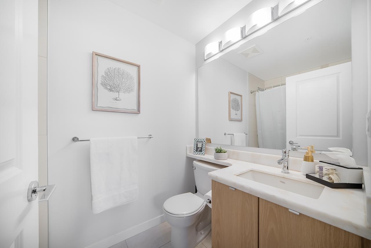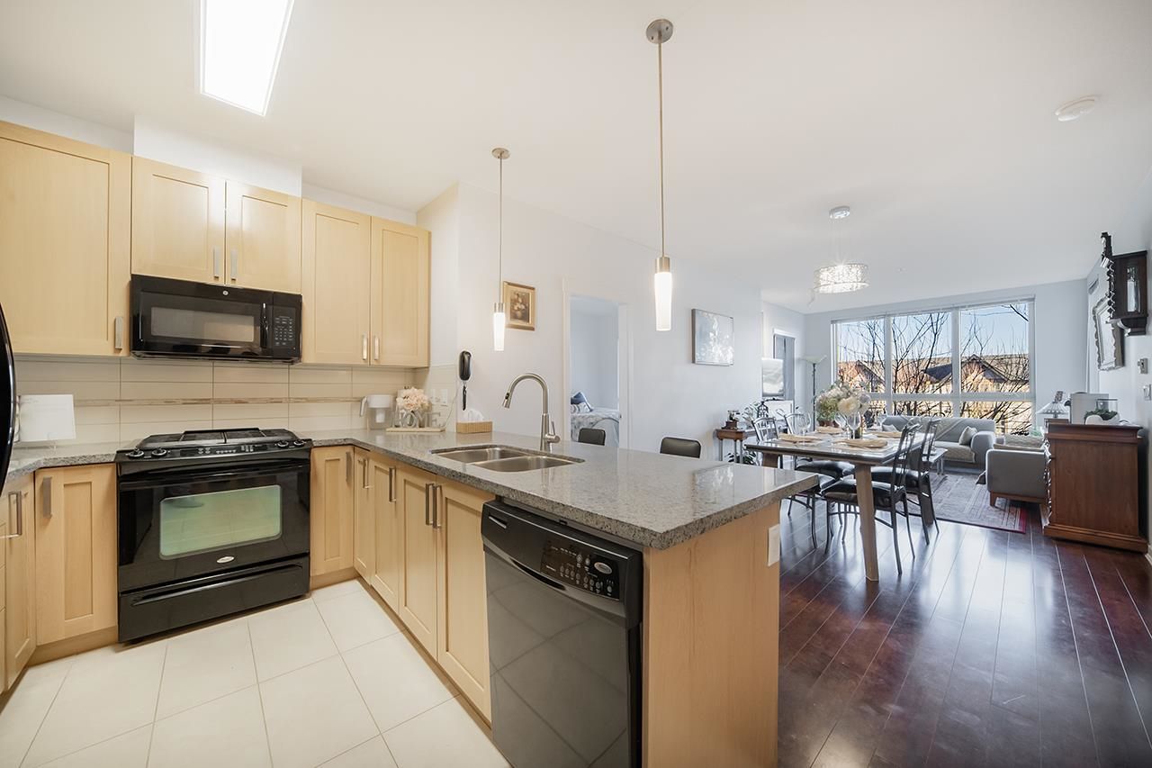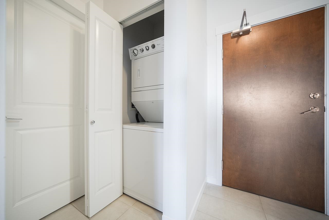 Welcome to the Morgan! Tall oversized Southeast facing windows that let in an abundance of natural light, high vaulted ceilings giving this 2 bedroom 2 full bath + den condo an open feel, laminate flooring, gas stove top, granite countertops and in-suite laundry. Brand new high efficiency water heater. The Morgan is highly sought after for its resort style amenities alone! Come and enjoy the 8200 square foot clubhouse with full kitchen, outdoor pool & hot tub, library, pool table, fireside lounge, fully equipped gym, yoga studio, and theatre room. Just steps away from morgan crossing shops & restaurants, transit, schools and close freeway access! Pets and rentals are allowed. Comes with 1 parking and 1 storage locker. Open House Dec 9/10 (Sat & Sun) 1:30-3:30PM