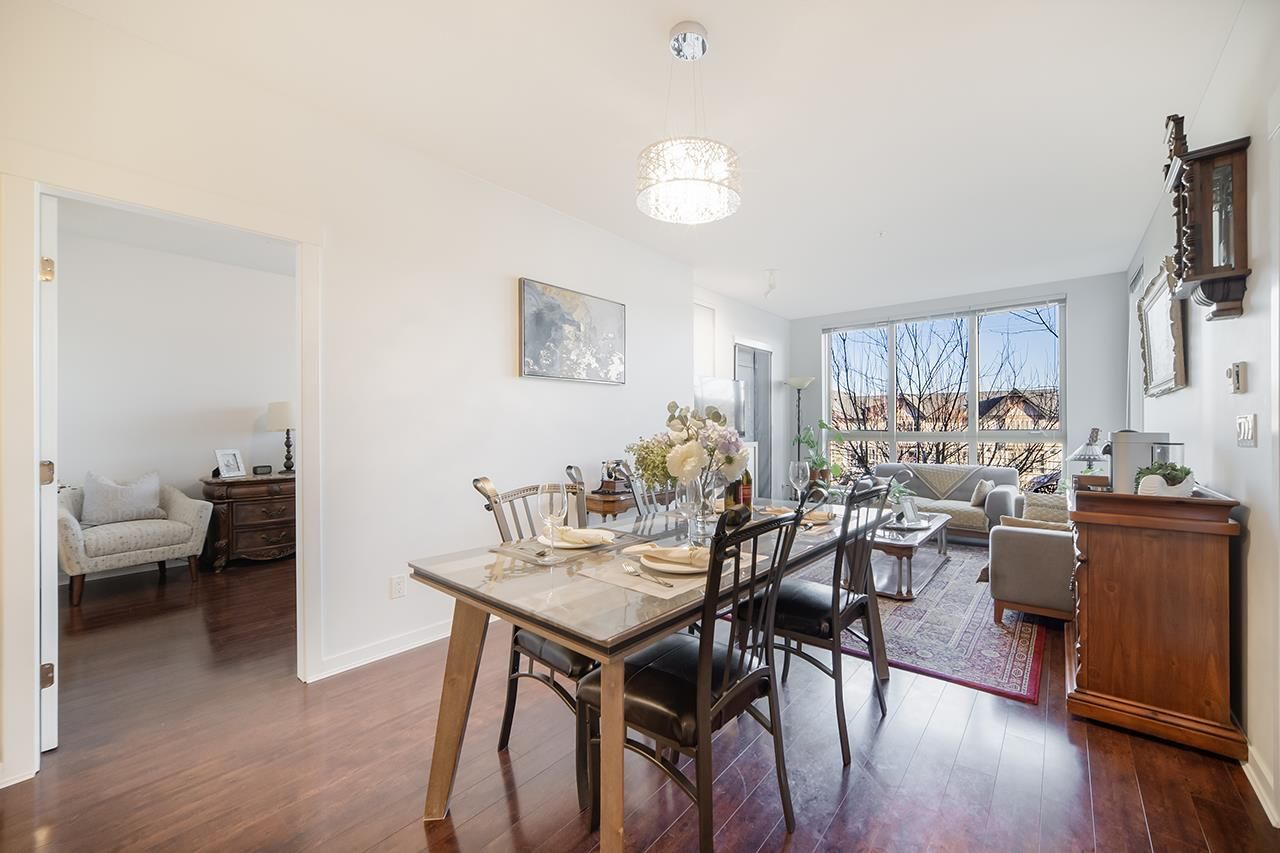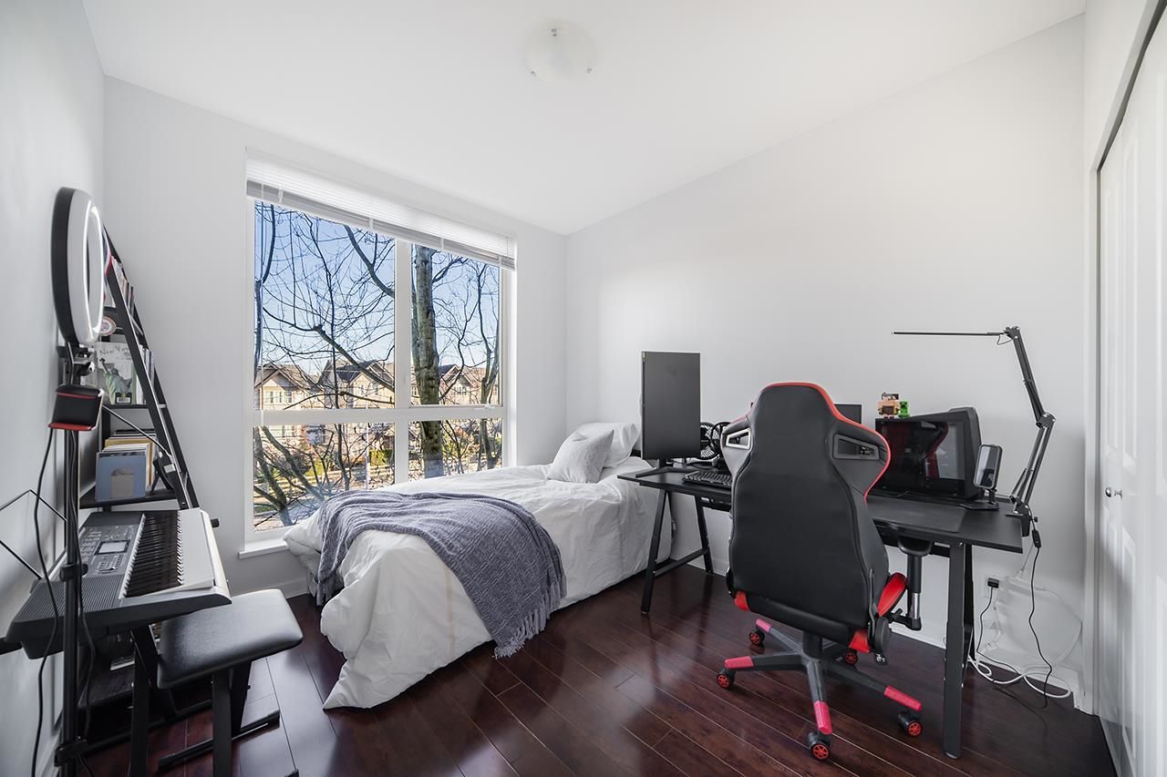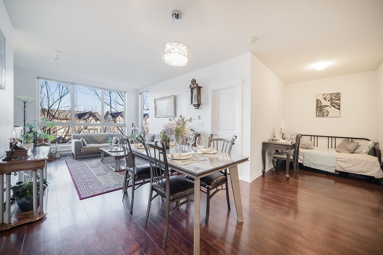 Welcome to the Morgan! Tall oversized Southeast facing windows that let in an abundance of natural light, high vaulted ceilings giving this 2 bedroom 2 full bath + den condo an open feel, laminate flooring, gas stove top, granite countertops and in-suite laundry. Brand new high efficiency water heater. The Morgan is highly sought after for its resort style amenities alone! Come and enjoy the 8200 square foot clubhouse with full kitchen, outdoor pool & hot tub, library, pool table, fireside lounge, fully equipped gym, yoga studio, and theatre room. Just steps away from morgan crossing shops & restaurants, transit, schools and close freeway access! Pets and rentals are allowed. Comes with 1 parking and 1 storage locker. Open House Dec 9/10 (Sat & Sun) 1:30-3:30PM