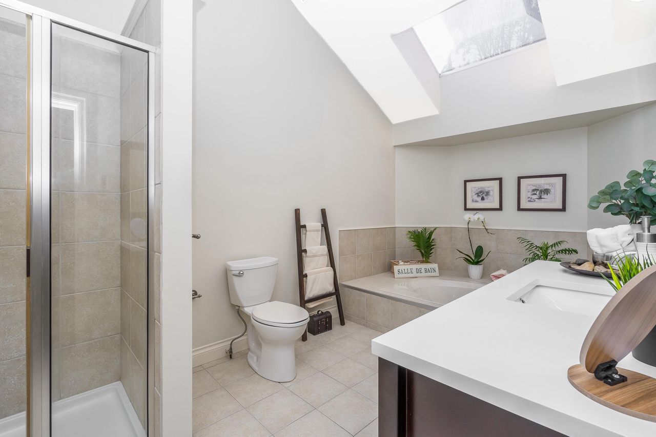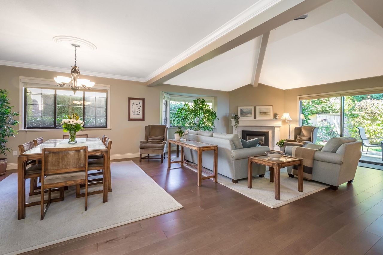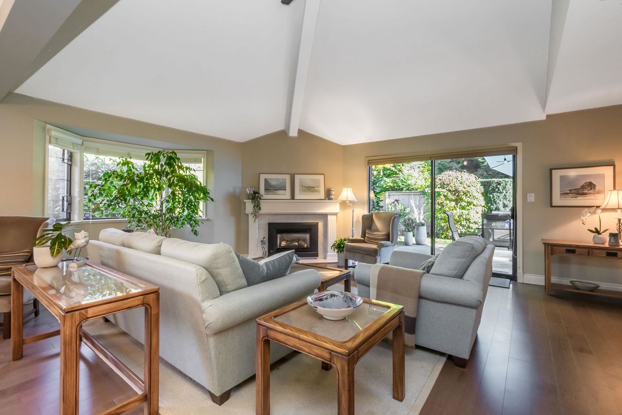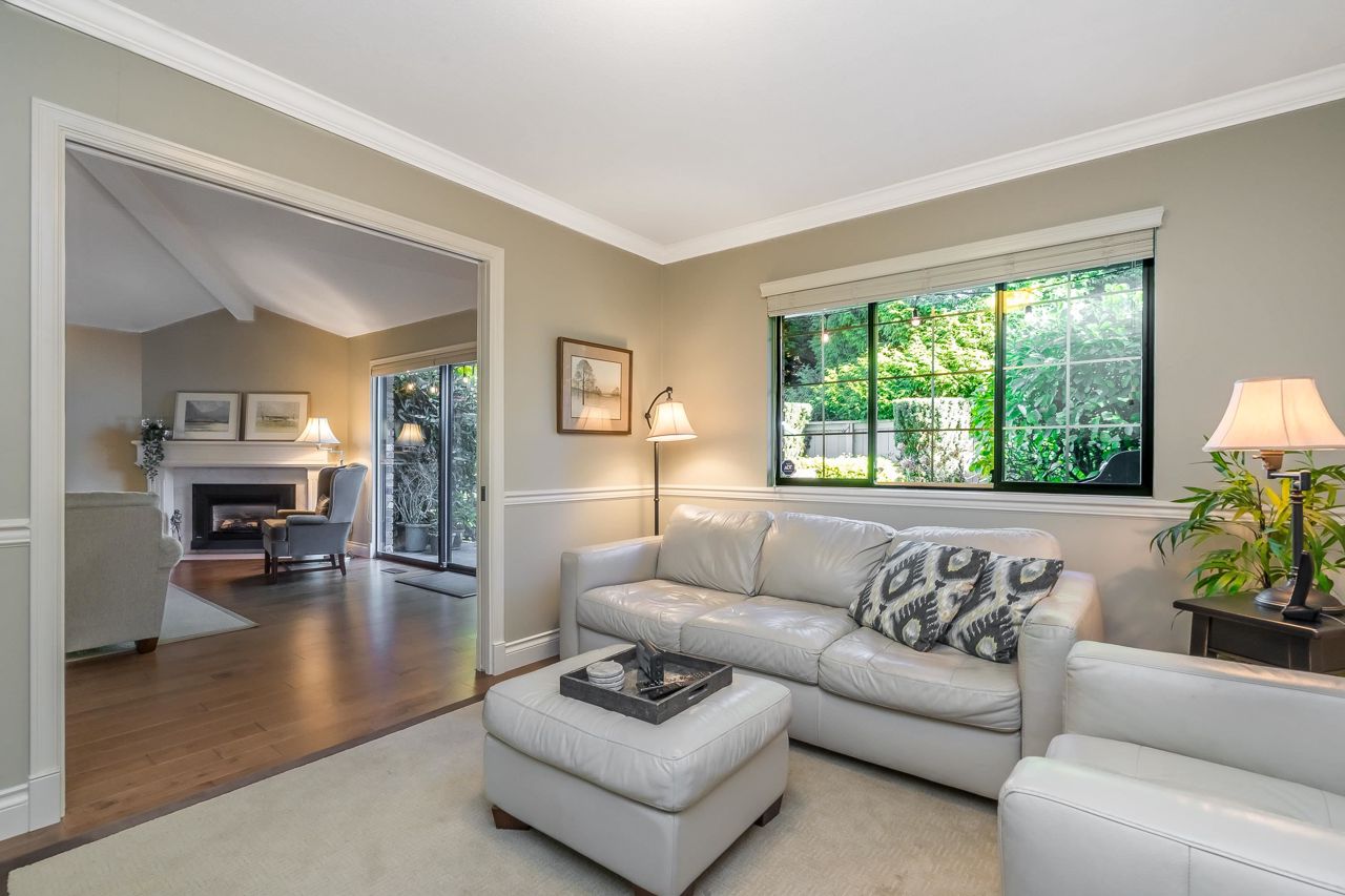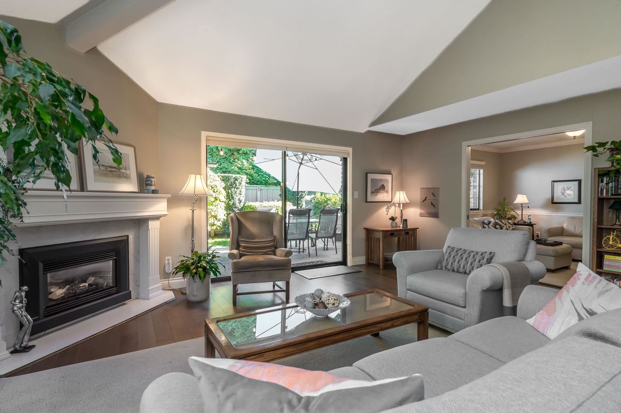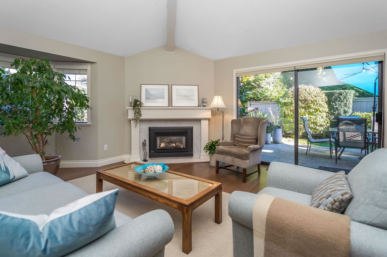 Welcome to Englesea! This END UNIT in a 55+ complex is located a few minutes from Semiahmoo Mall and is extremely desired. Featuring vaulted ceilings, large living/dining room, engineered hardwood floors, and a renovated white kitchen with stainless appliances. 2 bedrooms up both with ensuites + a DEN on the main. (could be a third bedroom) The primary brdm is massive and includes a spa style soaker tub + separate walk in shower. Double Garage and ample visitor parking, with private courtyard in the front and gorgeous private yard backing onto Southmere Village Park (THE DUCK POND) Located within walking distance to shops, transit, & a short drive to White Rock beach. With only 16 units total you won't want to miss your chance to get in here! Open house Jan 6th 2-4pm