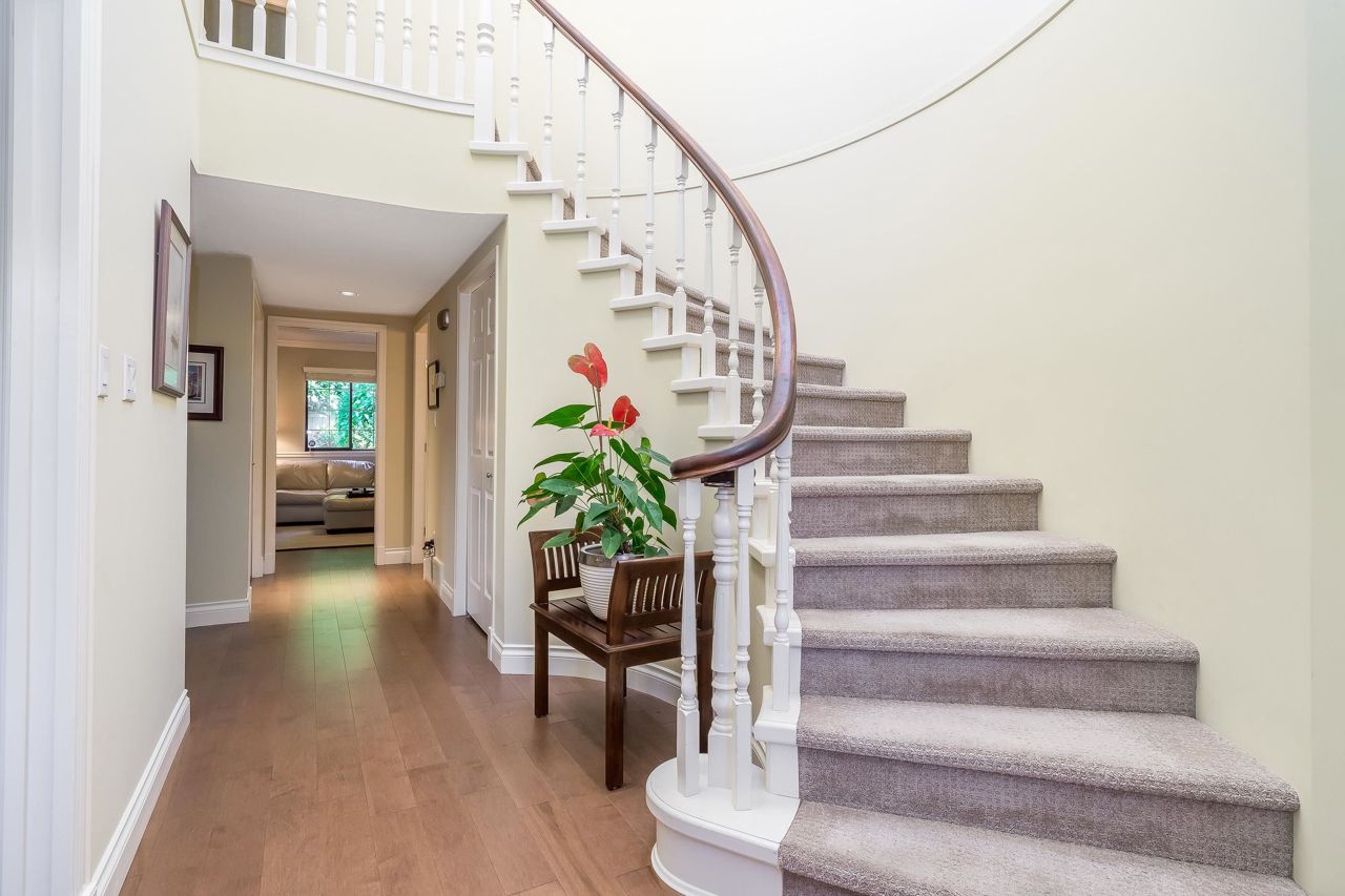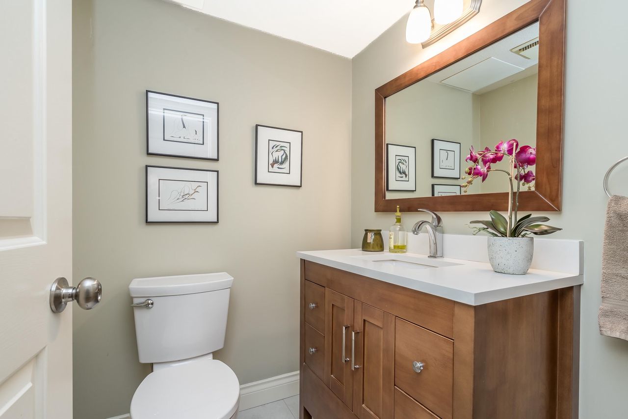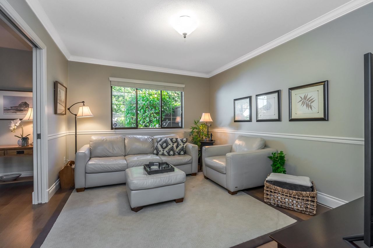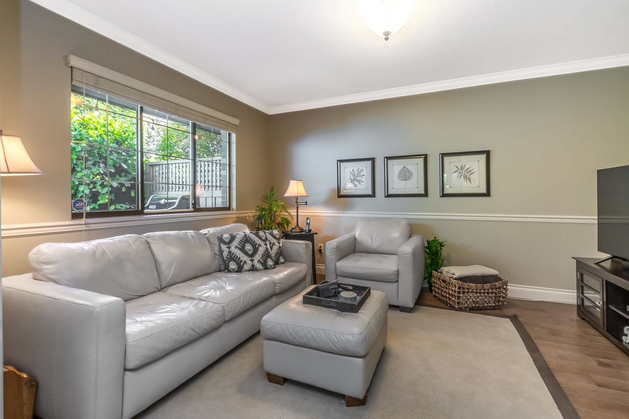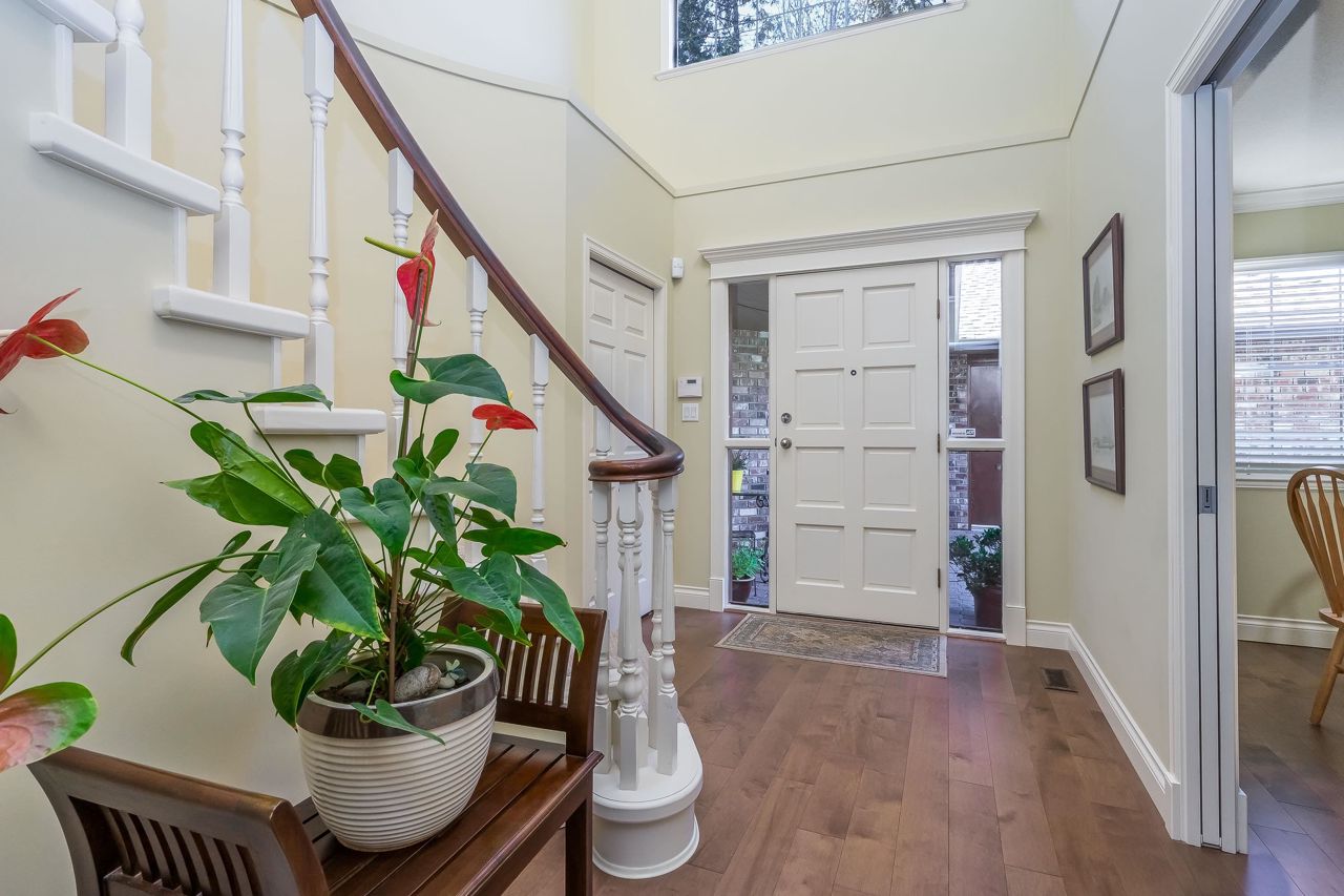 Welcome to Englesea! This END UNIT in a 55+ complex is located a few minutes from Semiahmoo Mall and is extremely desired. Featuring vaulted ceilings, large living/dining room, engineered hardwood floors, and a renovated white kitchen with stainless appliances. 2 bedrooms up both with ensuites + a DEN on the main. (could be a third bedroom) The primary brdm is massive and includes a spa style soaker tub + separate walk in shower. Double Garage and ample visitor parking, with private courtyard in the front and gorgeous private yard backing onto Southmere Village Park (THE DUCK POND) Located within walking distance to shops, transit, & a short drive to White Rock beach. With only 16 units total you won't want to miss your chance to get in here! Open house Jan 6th 2-4pm