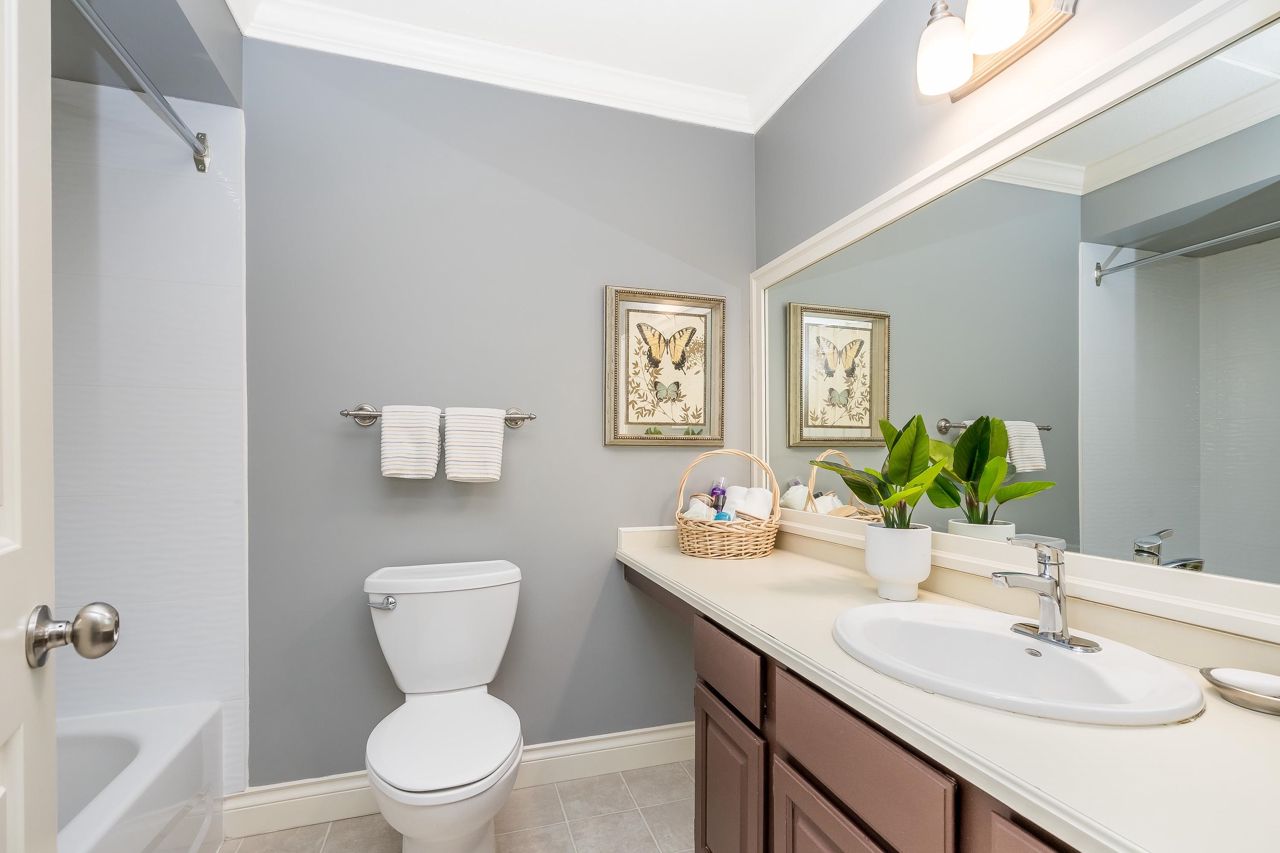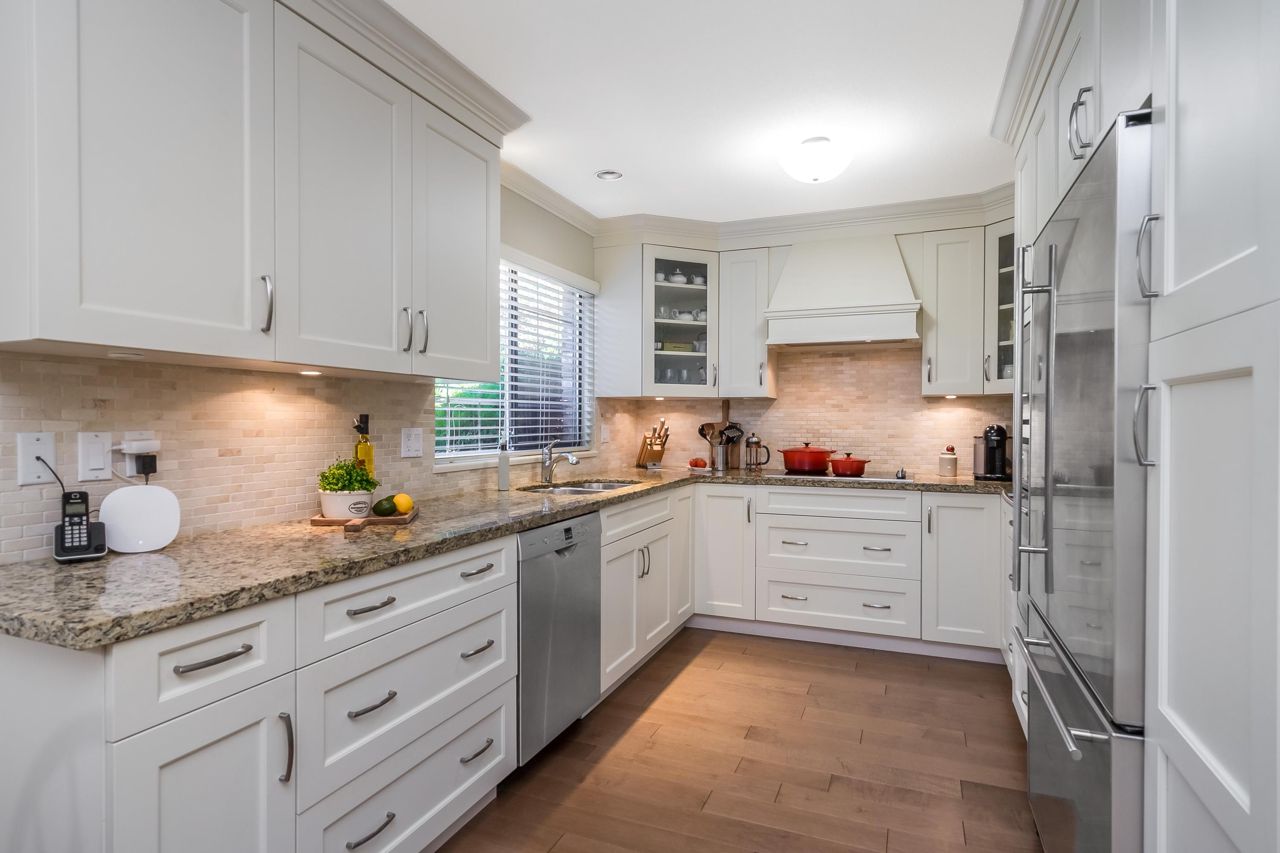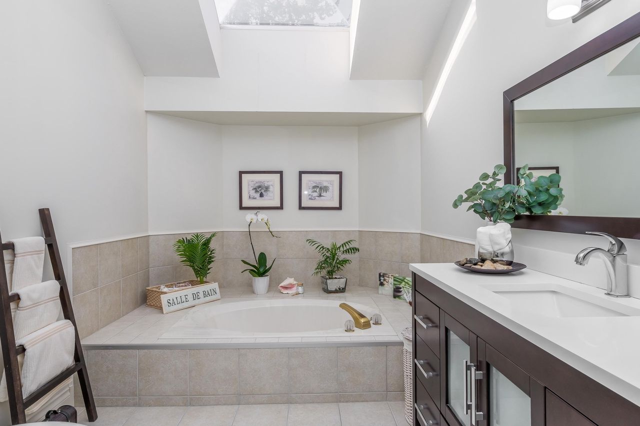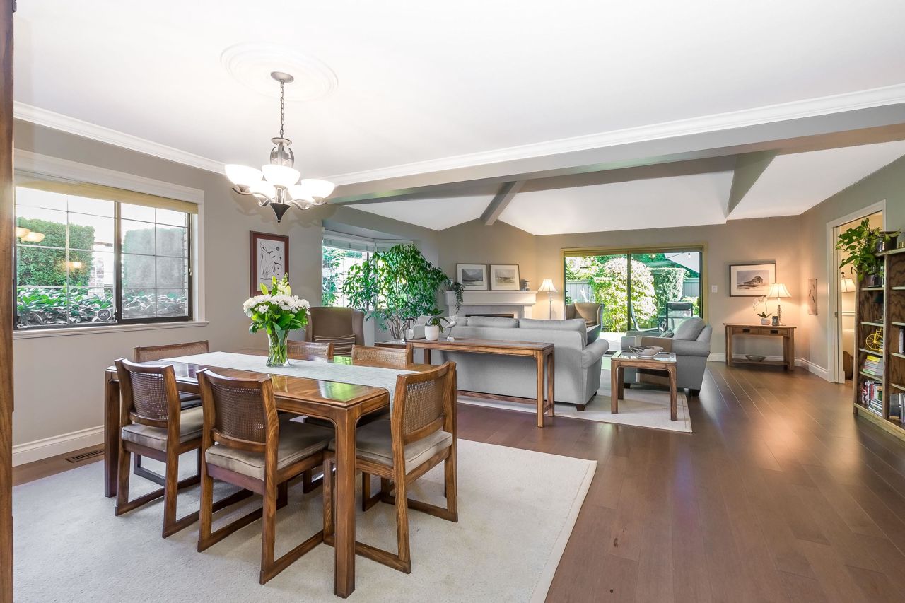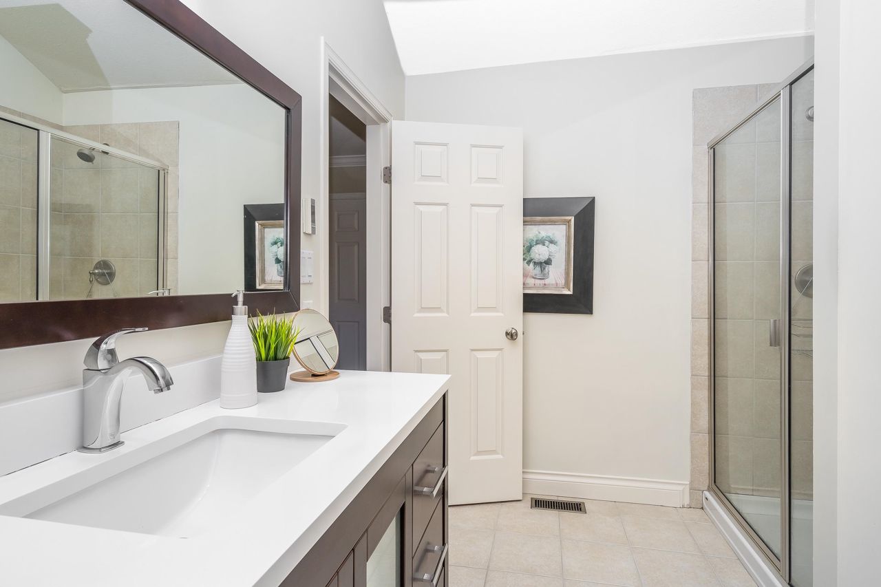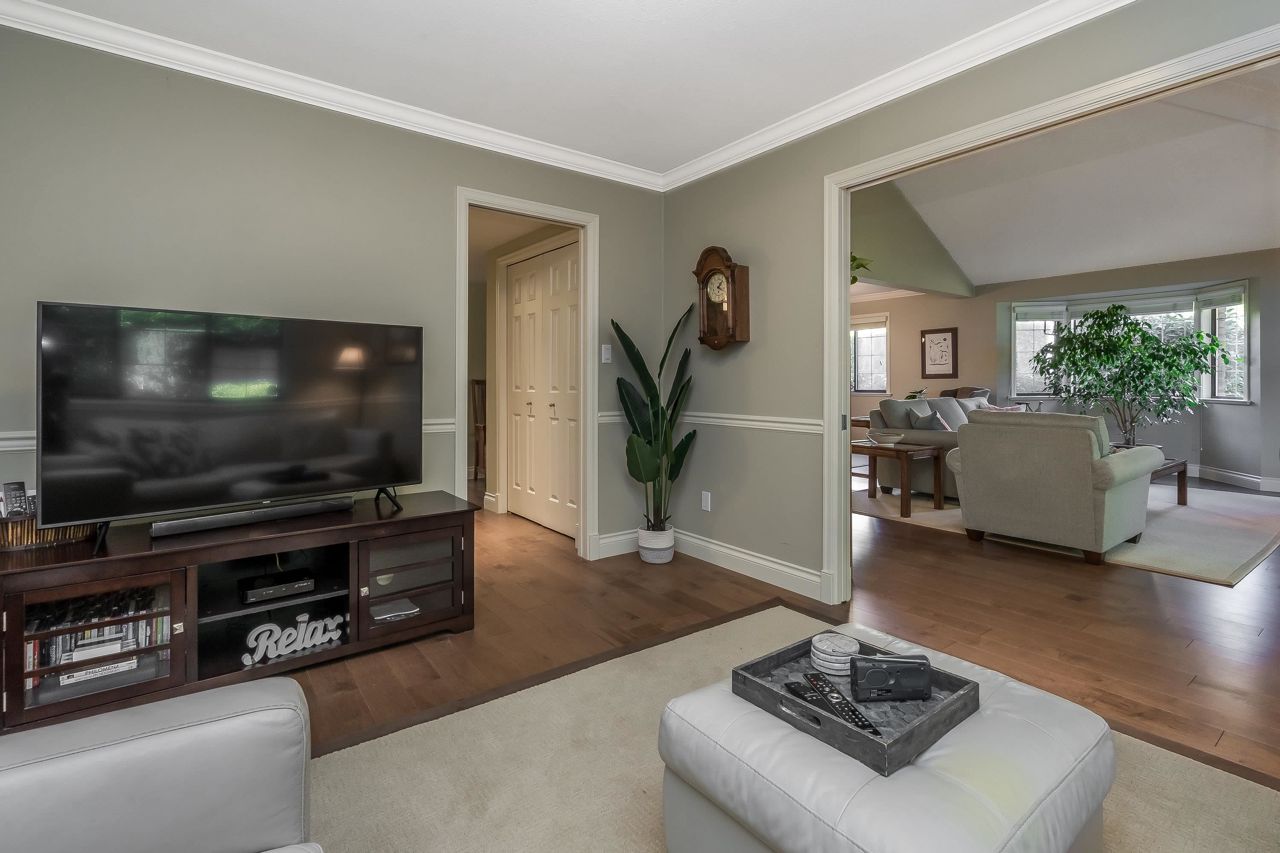 Welcome to Englesea! This END UNIT in a 55+ complex is located a few minutes from Semiahmoo Mall and is extremely desired. Featuring vaulted ceilings, large living/dining room, engineered hardwood floors, and a renovated white kitchen with stainless appliances. 2 bedrooms up both with ensuites + a DEN on the main. (could be a third bedroom) The primary brdm is massive and includes a spa style soaker tub + separate walk in shower. Double Garage and ample visitor parking, with private courtyard in the front and gorgeous private yard backing onto Southmere Village Park (THE DUCK POND) Located within walking distance to shops, transit, & a short drive to White Rock beach. With only 16 units total you won't want to miss your chance to get in here! Open house Jan 6th 2-4pm