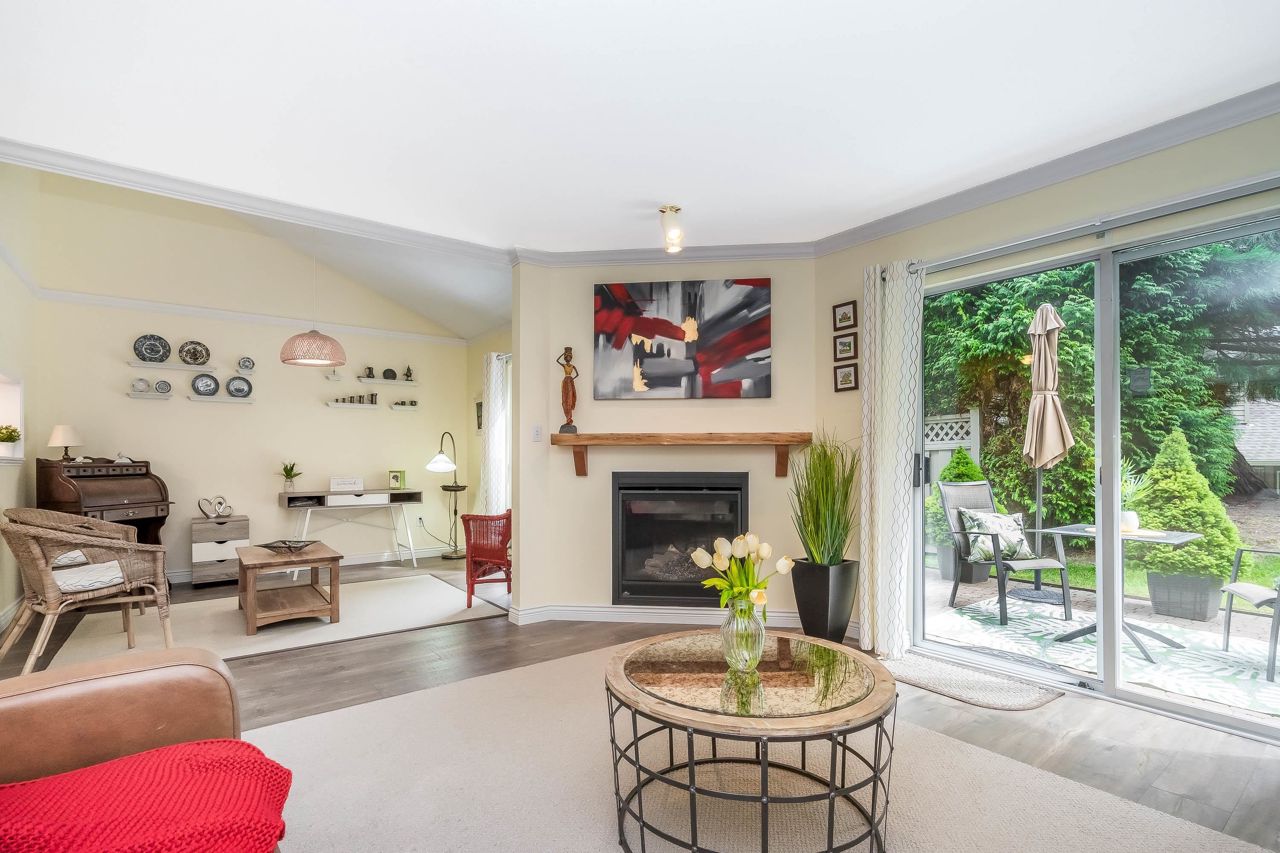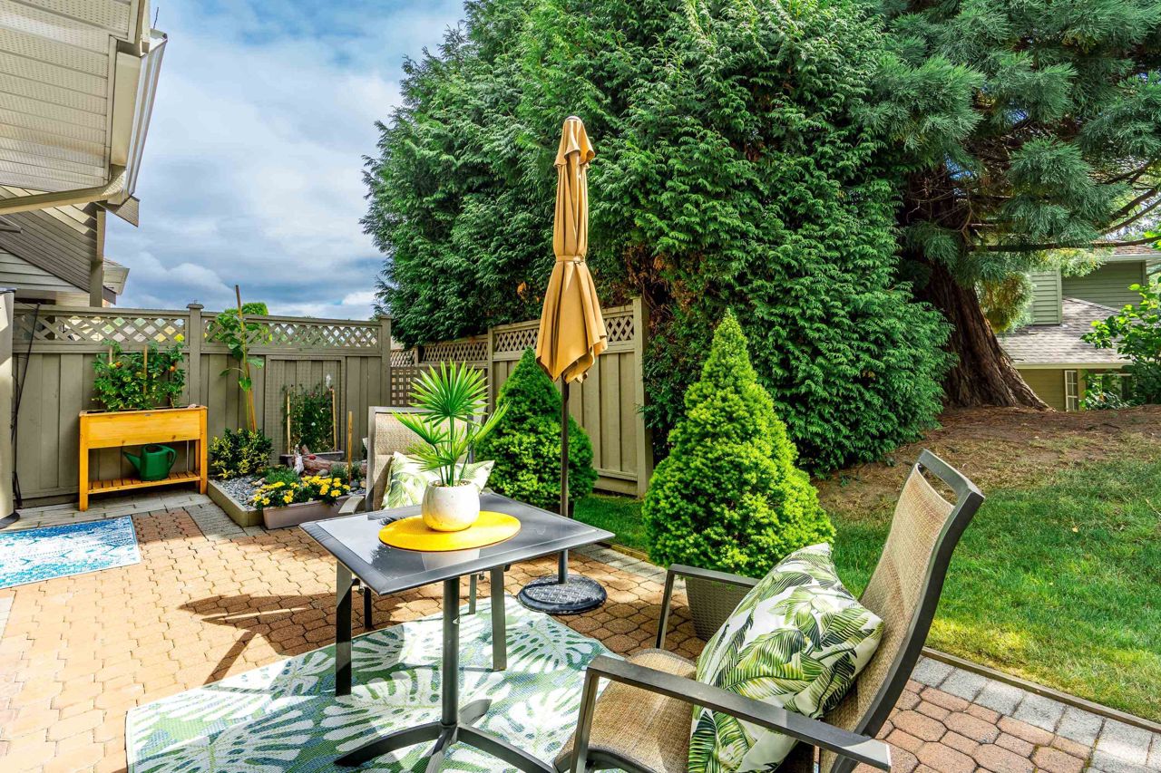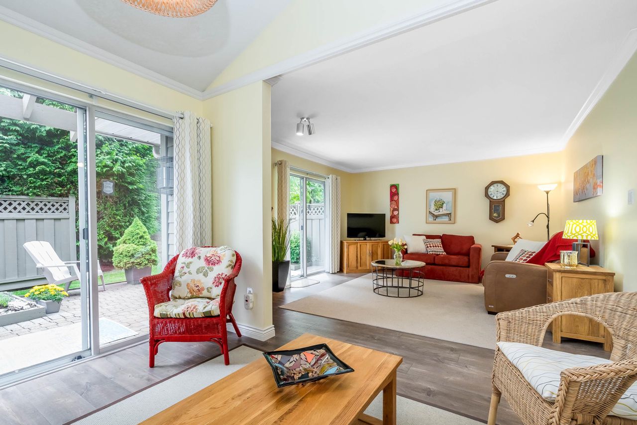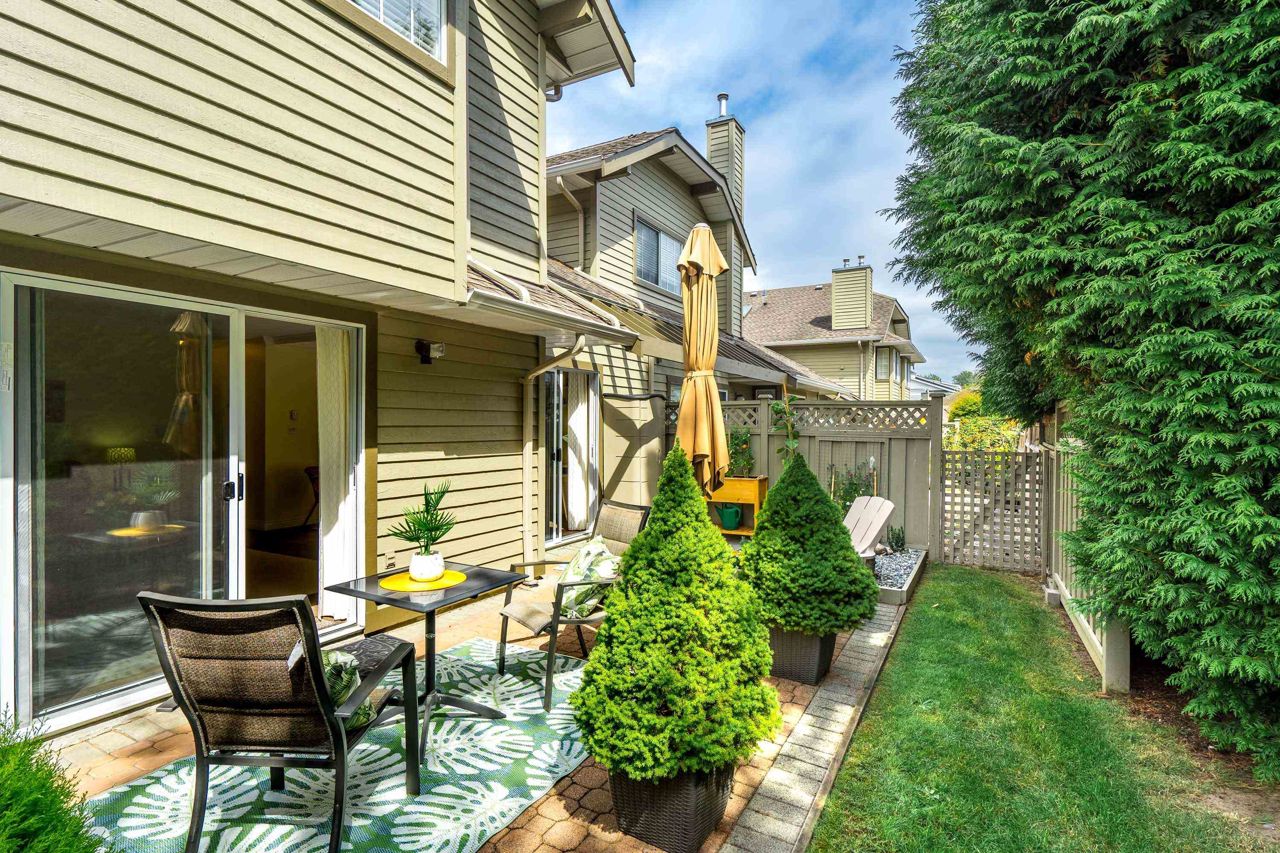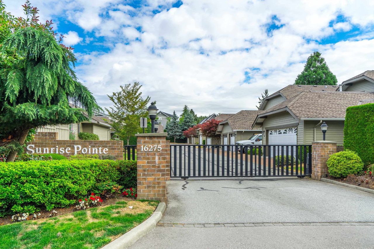SUNRISE POINTE. Beautifully appointed GATED COMPLEX in SOUTH SURREY. Great location with quick access to the Border, Hwy 99 and King George. This home is bright and meticulously maintained throughout. Recent updates include white kitchen cabinetry, bathrooms, paint, flooring, appliances, crown mouldings & more. Features a spacious bedroom and/or office space on main, two sets of sliding doors to private, SOUTH EXPOSED YARD & vaulted ceilings in spacious Dining room. Upper floor features two large bedrooms, skylight in primary ensuite. Close to new Chan's market and beach. Ideal home for empty nesters or retirees looking for a quality complex with excellent neighbours. Open House Saturday September 16, 2-4 PM