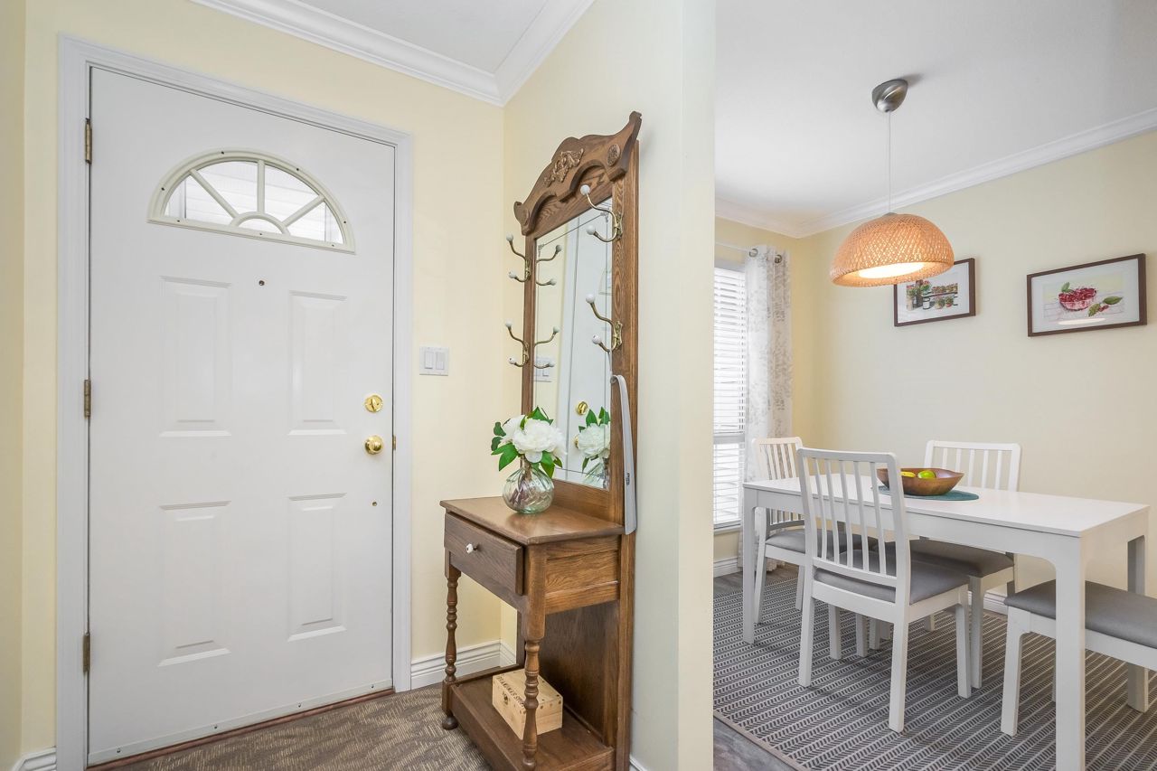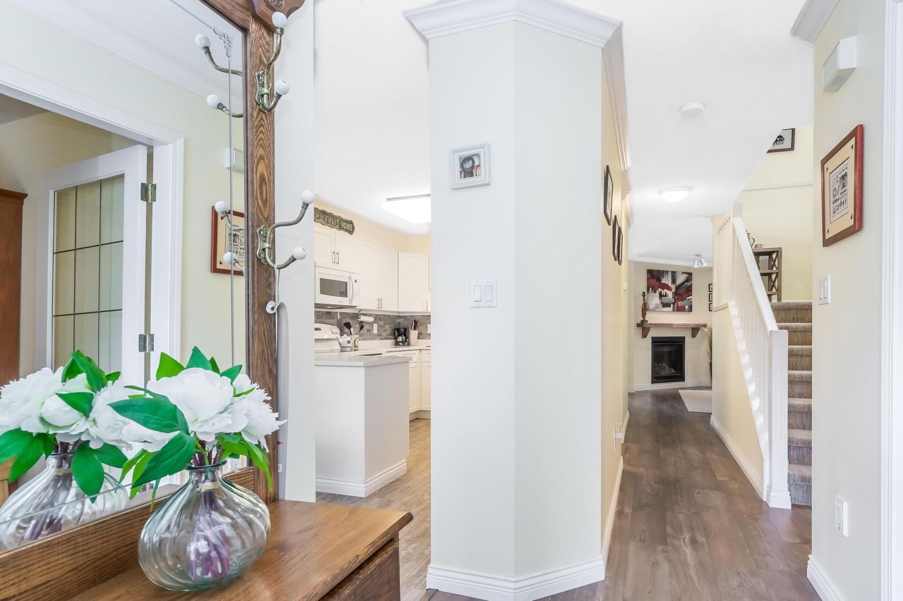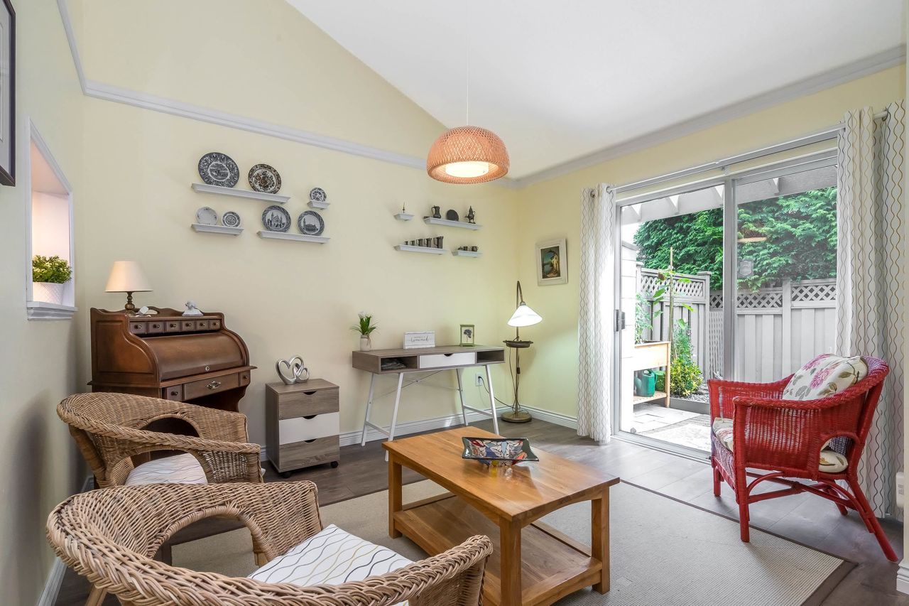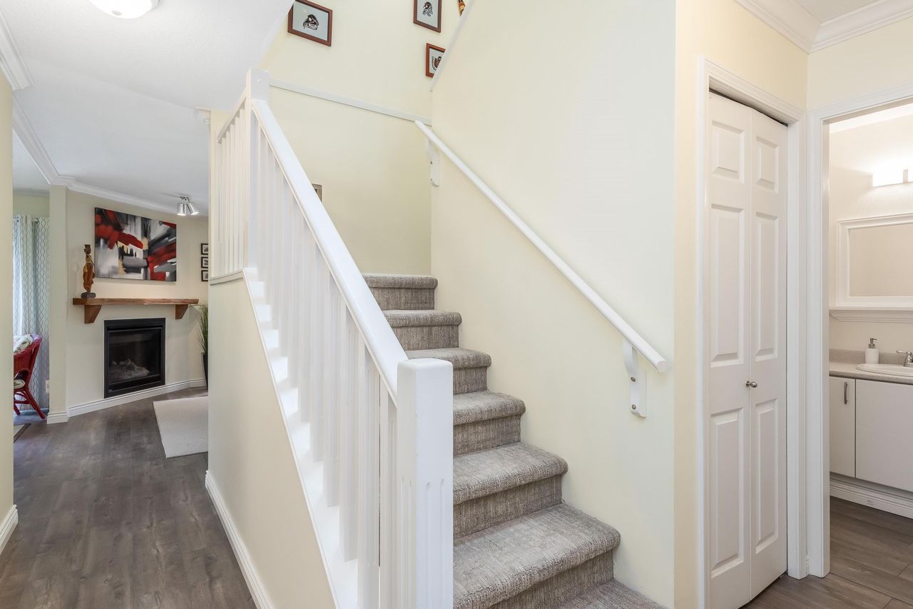 SUNRISE POINTE. Beautifully appointed GATED COMPLEX in SOUTH SURREY. Great location with quick access to the Border, Hwy 99 and King George. This home is bright and meticulously maintained throughout. Recent updates include white kitchen cabinetry, bathrooms, paint, flooring, appliances, crown mouldings & more. Features a spacious bedroom and/or office space on main, two sets of sliding doors to private, SOUTH EXPOSED YARD & vaulted ceilings in spacious Dining room. Upper floor features two large bedrooms, skylight in primary ensuite. Close to new Chan's market and beach. Ideal home for empty nesters or retirees looking for a quality complex with excellent neighbours. Open House Saturday September 16, 2-4 PM