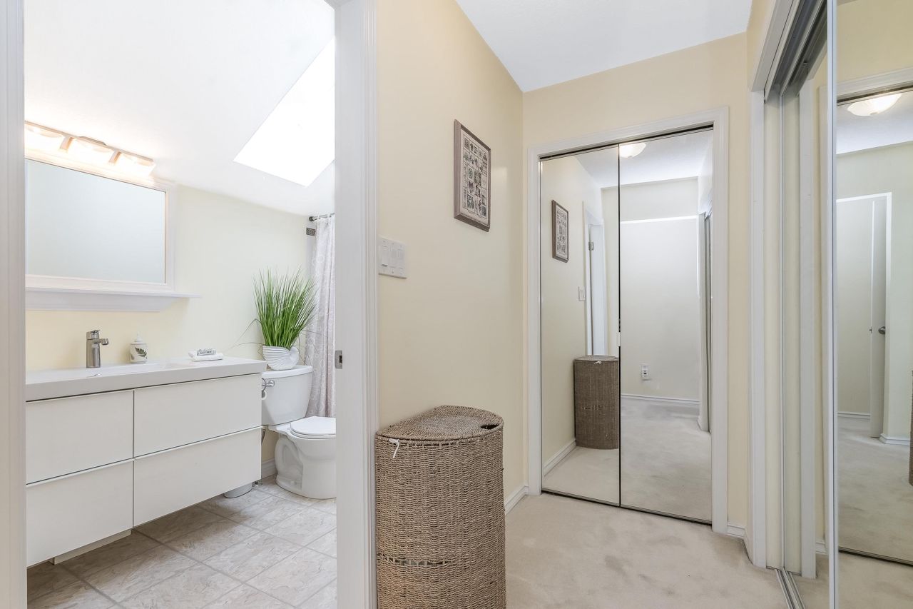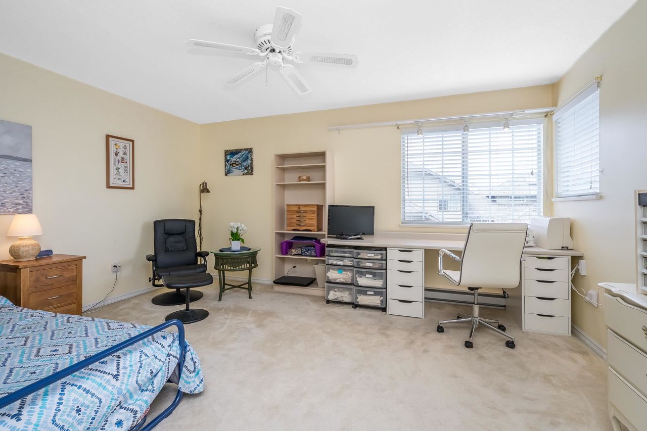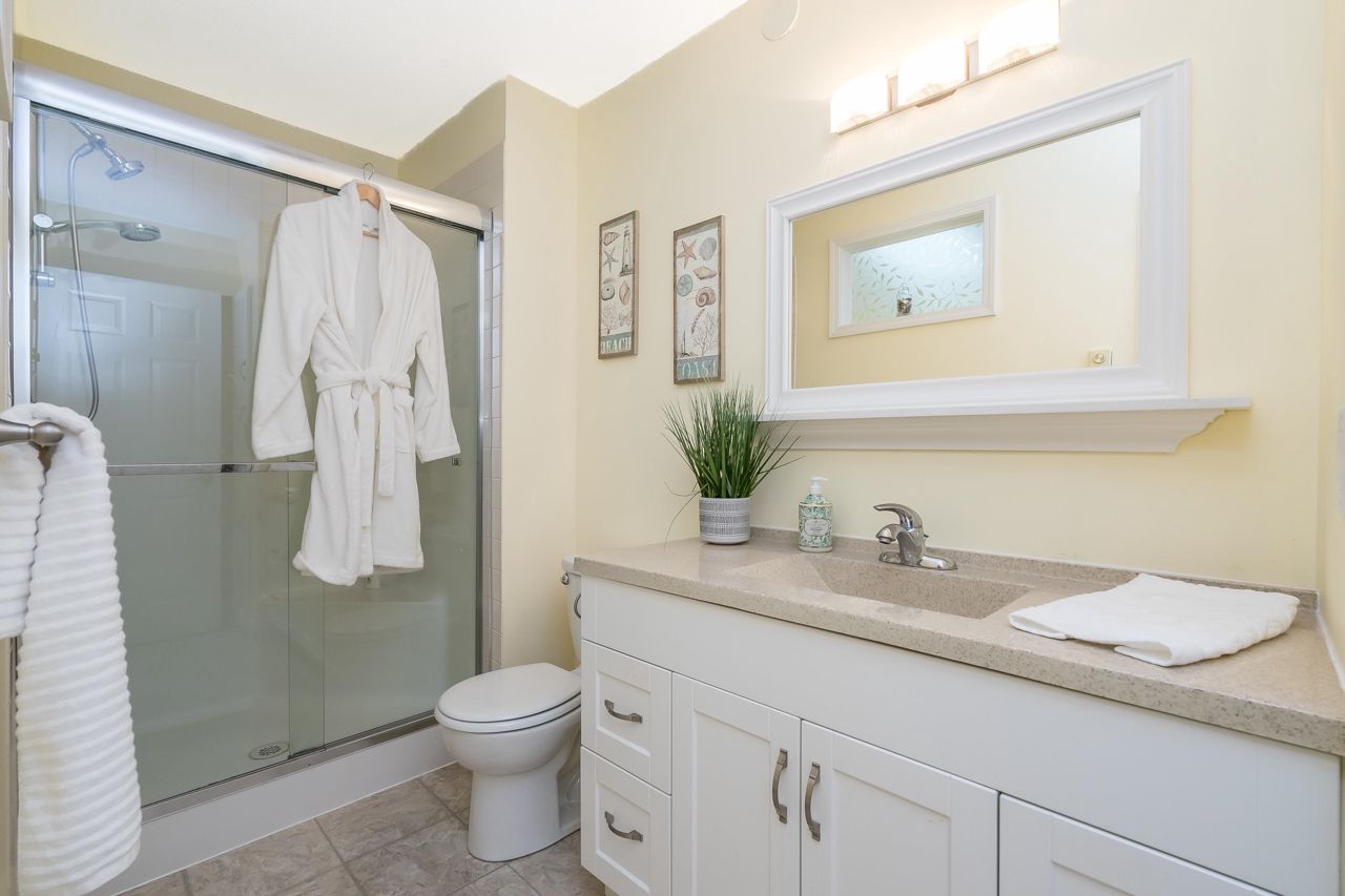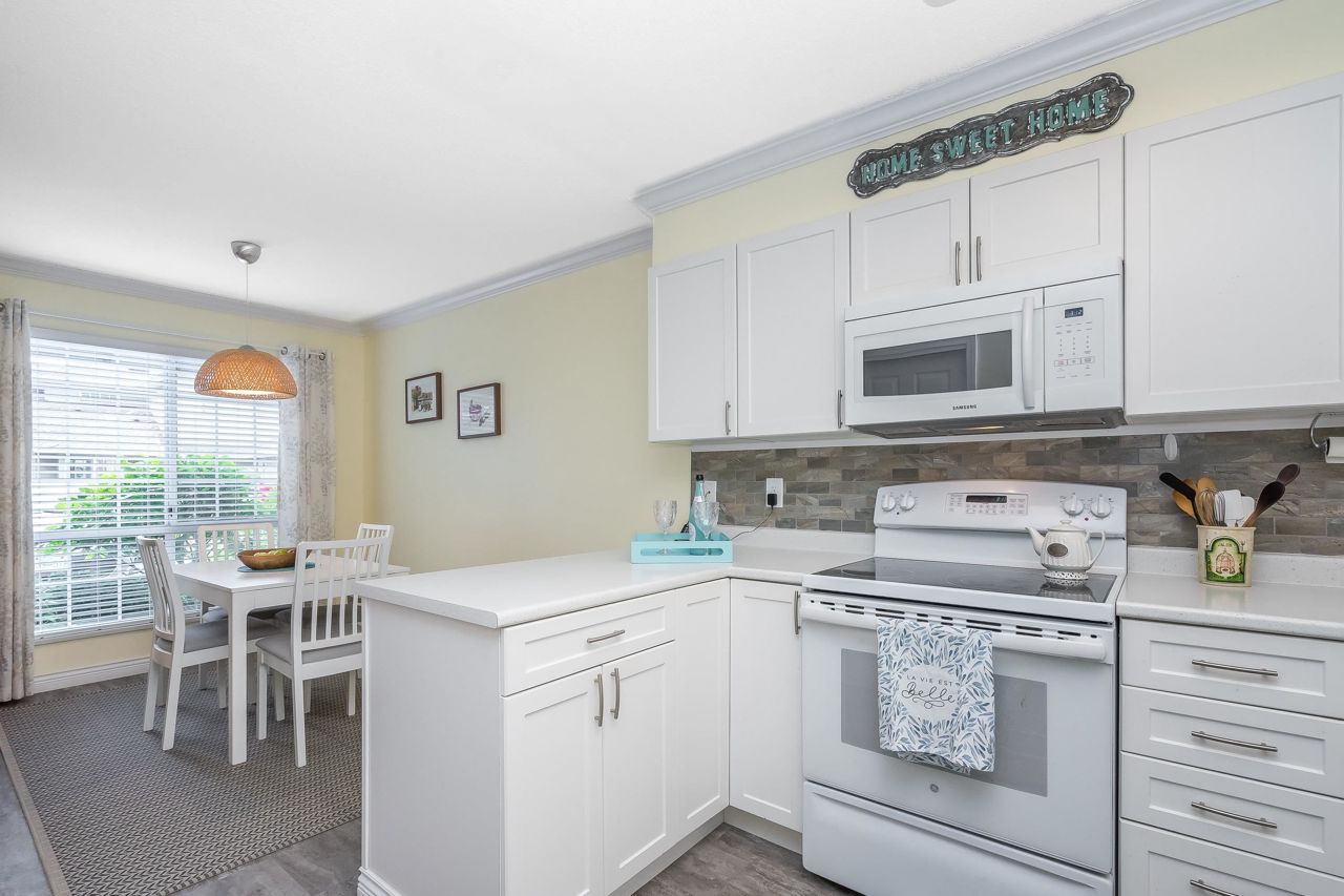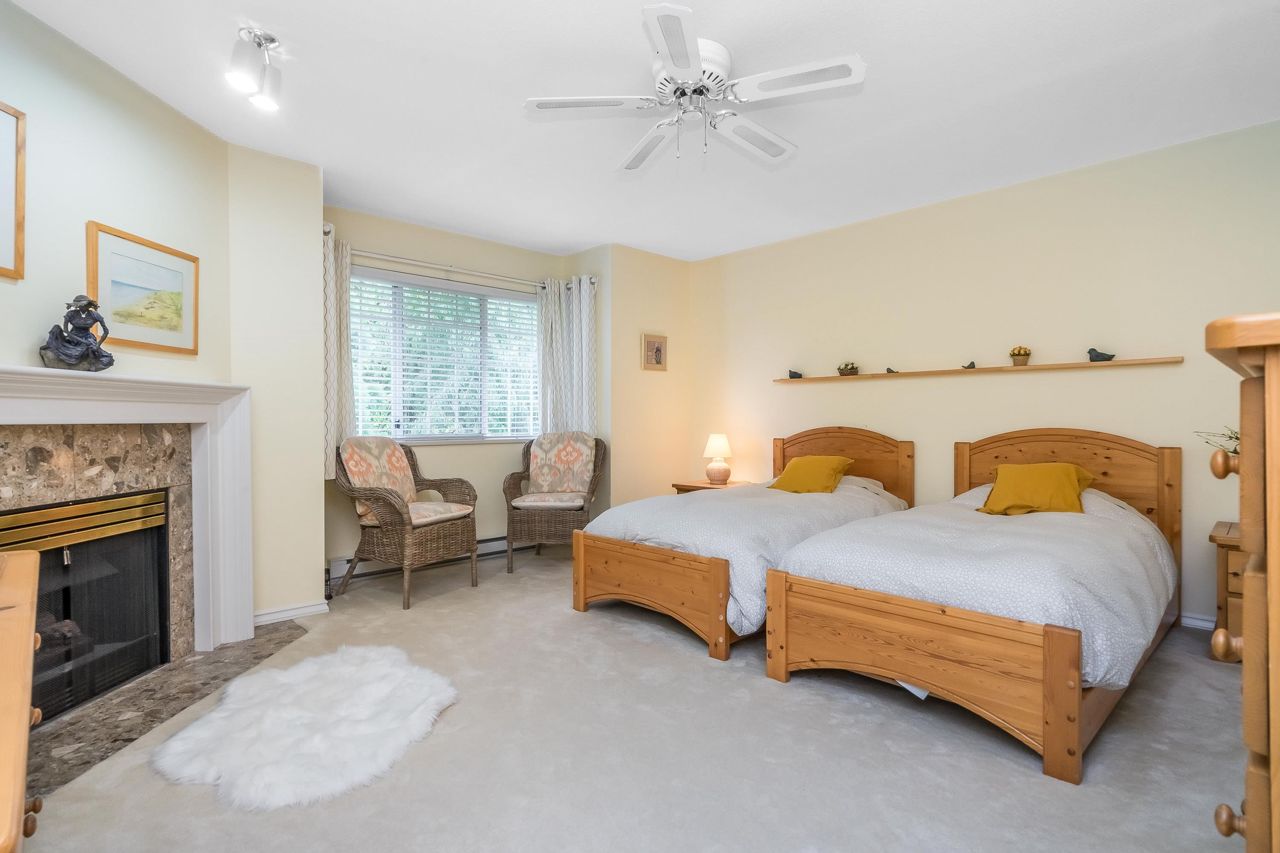SUNRISE POINTE. Beautifully appointed GATED COMPLEX in SOUTH SURREY. Great location with quick access to the Border, Hwy 99 and King George. This home is bright and meticulously maintained throughout. Recent updates include white kitchen cabinetry, bathrooms, paint, flooring, appliances, crown mouldings & more. Features a spacious bedroom and/or office space on main, two sets of sliding doors to private, SOUTH EXPOSED YARD & vaulted ceilings in spacious Dining room. Upper floor features two large bedrooms, skylight in primary ensuite. Close to new Chan's market and beach. Ideal home for empty nesters or retirees looking for a quality complex with excellent neighbours. Open House Saturday September 16, 2-4 PM