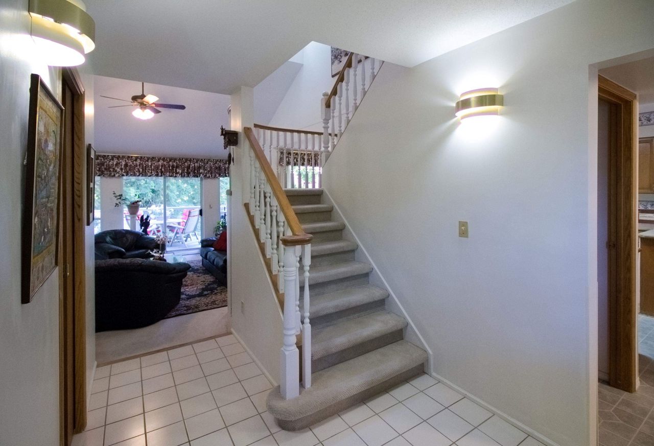 Welcome to this exceptional 2353 sq.ft. 3bed + den Westwind townhouse. Large kitchen with eating counter. Dining room overlooks the living room that features vaulted ceilings and gas fireplace. Private patio with view of creek and green belt perfect for relaxing. Large main bedroom features ensuite w/t soaker tub and walk in closet. 3rd bedroom on lowest level perfect for overnight visitors. Double side by side garage. A must see.