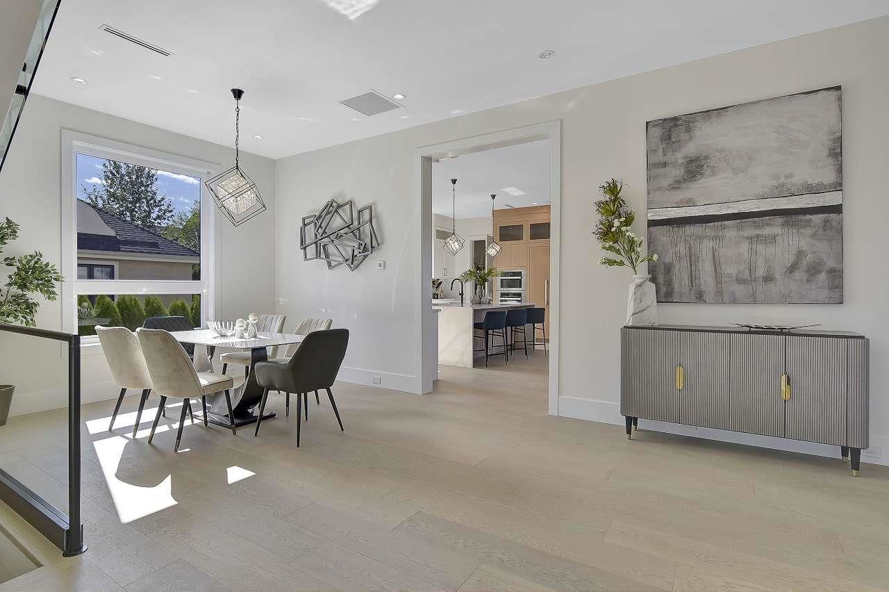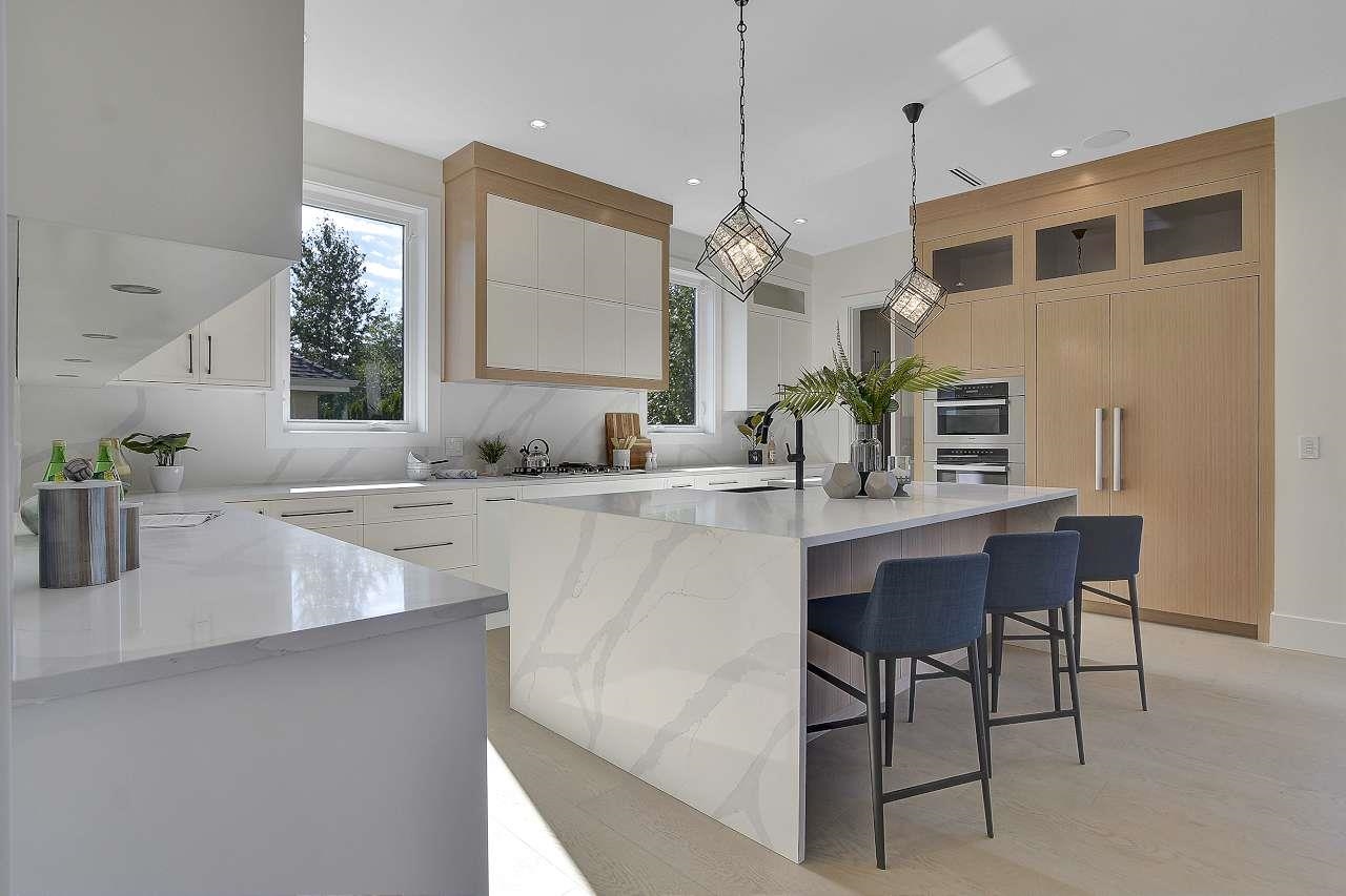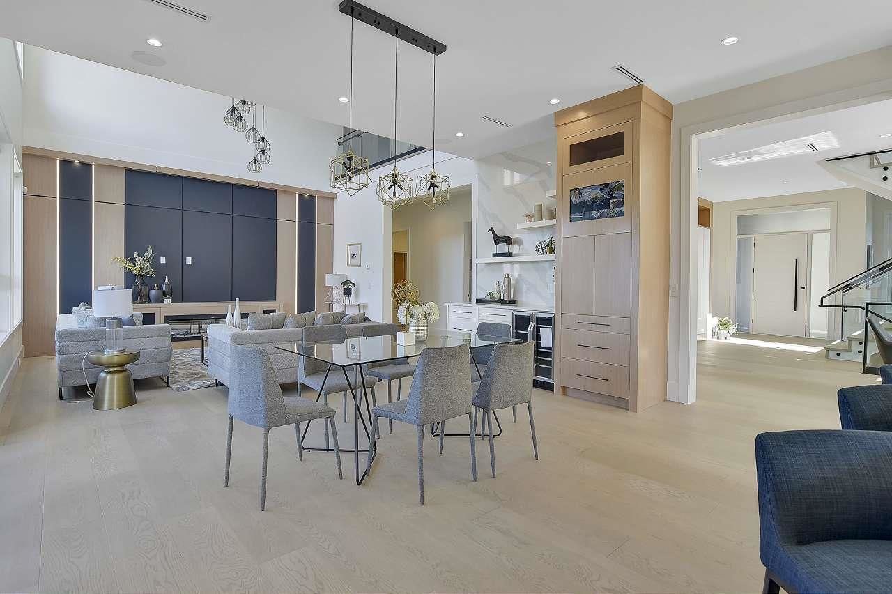 Rare opportunity to own this amazing new residence in prime Amble Greene location. This 9 bedrm & 10 bath masterpiece measures over 7000 sq.ft. and is loaded with exceptional features and finishing. Bright and modern layout on 3 levels comes complete with "Garaventa" elevator. High end throughout, including: "Miele" appliance package, "Fulgor" range in wok kitchen, wide plank engineered hardwood, radiant heat with HRV, AC, automated lighting control, motorized blinds, double height family room, 10 ft ceilings on main, guest suite on main, full security, massive theatre rm, 2 bedrm legal suite in basement. Situated on a southern exposed lot measuring 9924 sq.ft. across from dedicated parkland in an ultra quiet cul-de-sac of this famed subdivision. School catchment - Ray Shepherd & Eglin.
