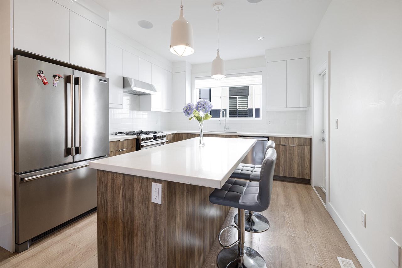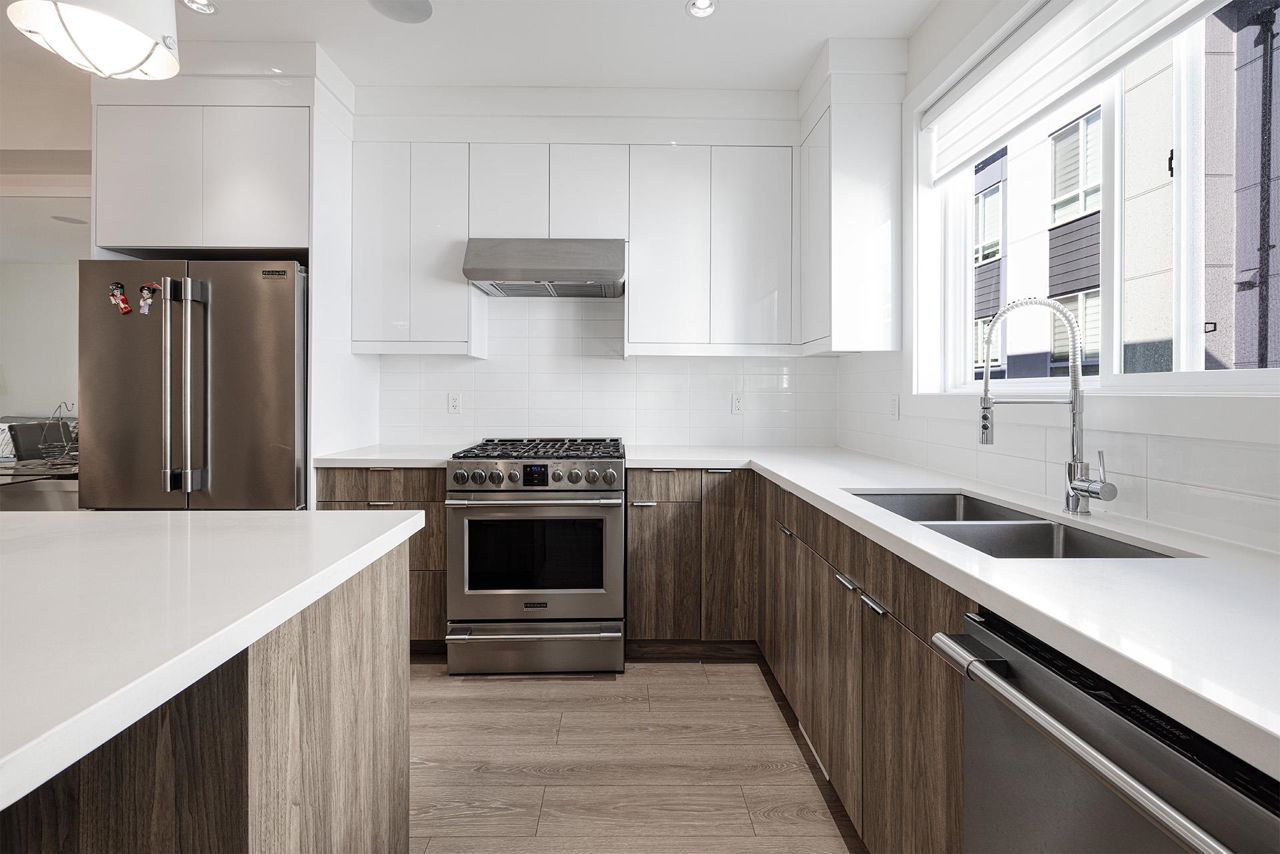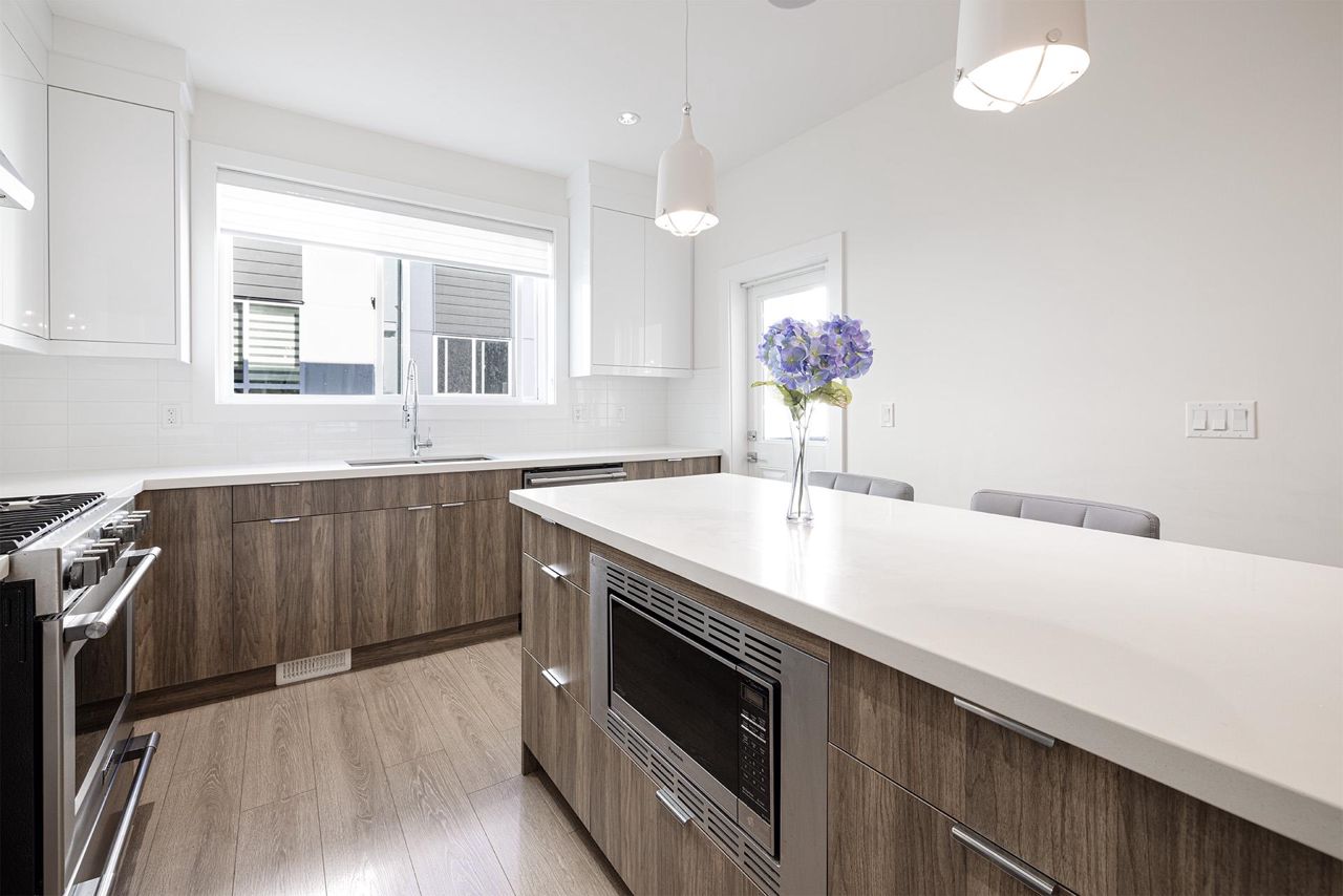 Premier townhouse project ISOLA in South Surrey! This three level 3 Bed + Den (easily converted to a 4th bdrm) and 4 bathroom townhouse features central A/C and contemporary design elements such as Quartz Countertops, KitchenAid Stainless Steel appliances with a gas range, Sleek Fireplace Media Units, Wide-plank Laminate Flooring, integrated with the latest smart home technology. Covered patio with fenced private yard and balcony. Side-by-side garage. Central location, close to grocery stores, schools, parks, restaurants & beach. Easy access to King George Blvd, Highway 99 & Canada/USA border. Walking distance to Earl Marriott Secondary and South Merdian Elementary. Act fast before it's gone!