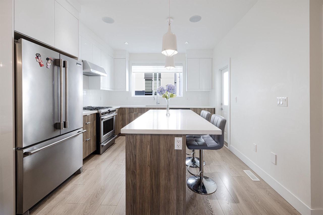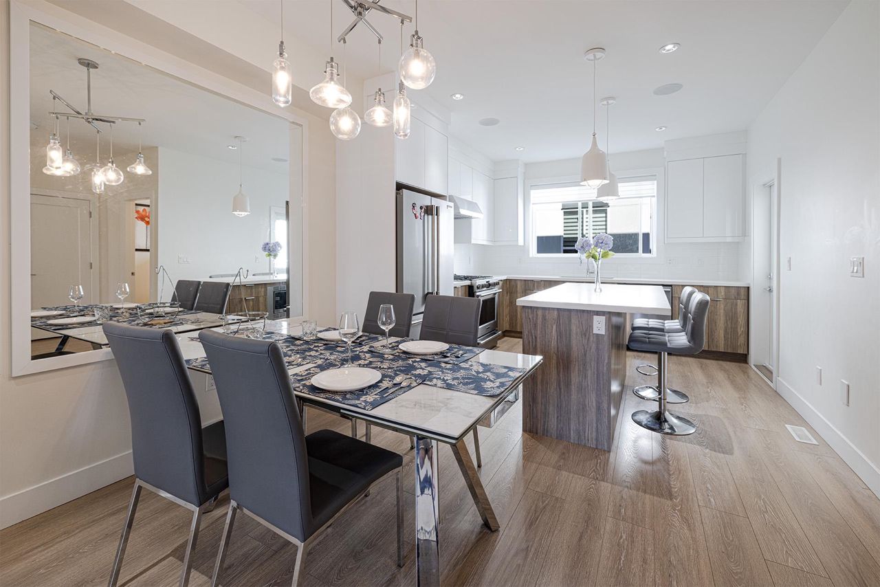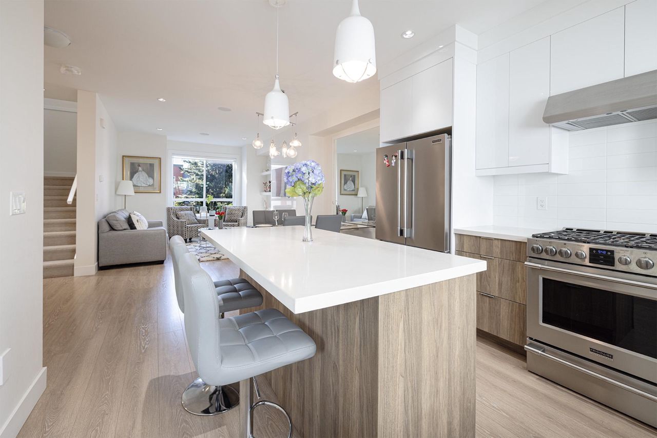 Premier townhouse project ISOLA in South Surrey! This three level 3 Bed + Den (easily converted to a 4th bdrm) and 4 bathroom townhouse features central A/C and contemporary design elements such as Quartz Countertops, KitchenAid Stainless Steel appliances with a gas range, Sleek Fireplace Media Units, Wide-plank Laminate Flooring, integrated with the latest smart home technology. Covered patio with fenced private yard and balcony. Side-by-side garage. Central location, close to grocery stores, schools, parks, restaurants & beach. Easy access to King George Blvd, Highway 99 & Canada/USA border. Walking distance to Earl Marriott Secondary and South Merdian Elementary. Act fast before it's gone!