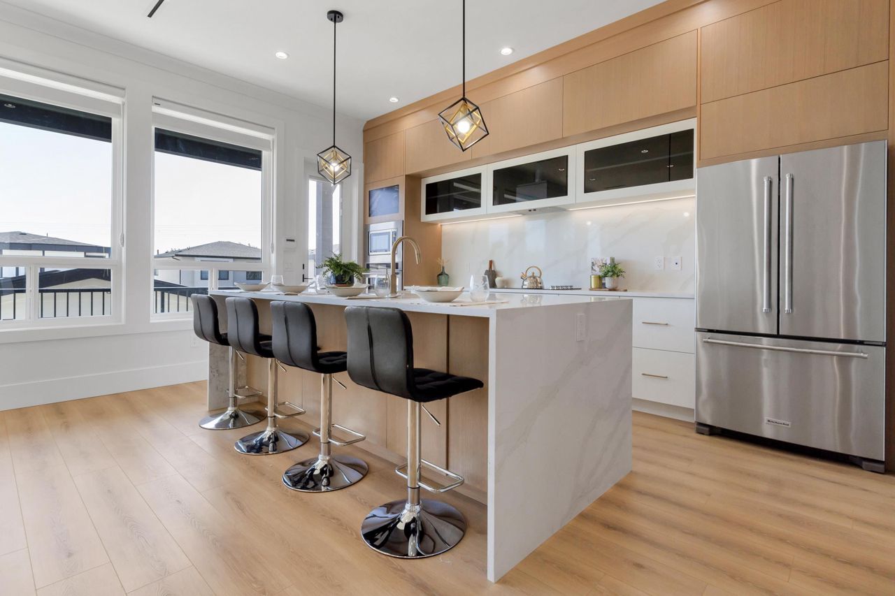 Introducing an exquisite custom-built residence that exudes luxury & elegance. Immaculate home showcases 7 bdrms, 6 baths, & boasts top-of-the-line finishes. Experience optimal comfort w/radiant heating. The main floor presents an inviting grand room w/gas fireplace impeccable millwork, a formal dining room, living room, a cozy family room w/ gas f/p & stunning custom woodwork, chic 4-pce bathroom. The kitchen is a culinary enthusiast's dream, equipped with high-end appliances, sleek slab countertops with a waterfall island, and meticulously crafted cabinetry. Upstairs, discover 4 bedrooms, including a master suite complete with a walk-in closet and a designer ensuite. The basement offers a legal 1-bedroom suite & 2 bedroom unauthorized suite. Detached 2-car garage PLUS 1 side stall.