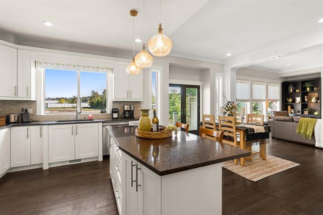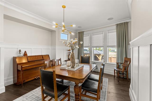 BRIGHT & BEAUTIFUL 5 bdrm/5 bth FAMILY Home on 5243 sqft lot! MODERN DESIGN and QUALITY CRAFTSMANSHIP showcasing extensive millwork, upgraded carpets, new flooring and lighting. CHEF’S KITCHEN w/top-of-the-line appliances, quartz countertops, gas cooktop and built-in oven. Ample windows to allow for natural light. NEW hardwood floors on main, separate formal dining room w/wet bar. BEAUTIFUL wall to wall cabinetry and gas fireplace. MASTER bedroom has spa inspired 5 piece ensuite AND his/her closets. ALL bedrooms UP with ensuites. Backyard deck overlooks fully fenced yard, hot tub w/gazebo, putting green & room for kids to play. BASEMENT is fully finished w/media room, games room and 2 bdrms. Walk to Douglas Elementary, 5 minutes to White Rock beach, Morgan Crossing & Easy access to Hwy 99.