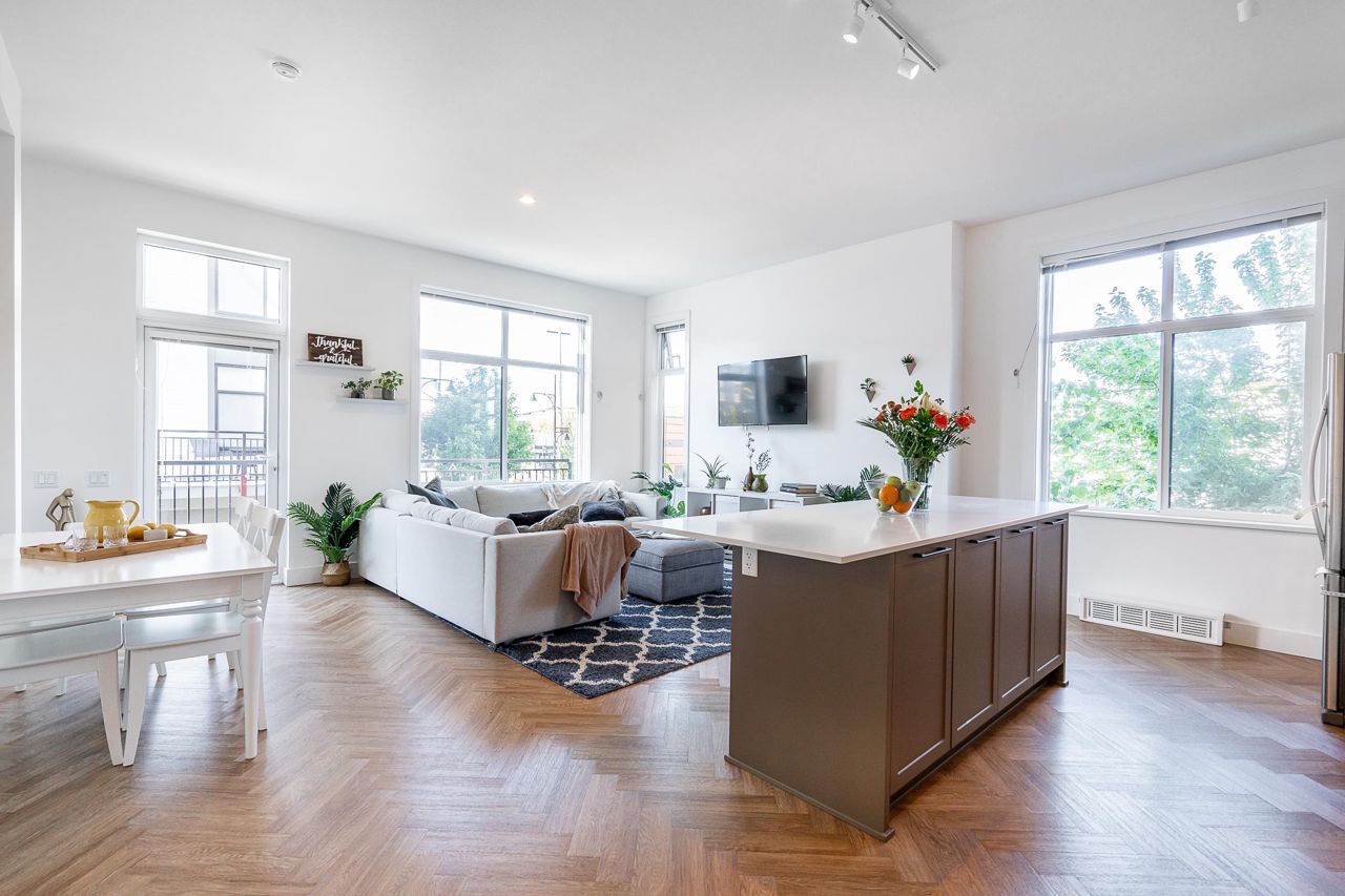 This gorgeous CORNER UNIT at Hawthorne by Mosaic on the quiet side of the complex boasts 10ft ceilings on the main level with a large living area (bring your big TV), wide deck, and BONUS 2pc bath! The modern chef’s kitchen with long island and storage galore is perfect for entertaining or watching the kids. Enjoy mountain views from your KING-SIZED primary bedroom with walk-in closet and luxurious ensuite. 2nd bedroom, full bath with tub, and convenient laundry round off upstairs. Side-by-side double garage & 1 bonus parking on driveway. Well maintained strata with friendly neighbours. Walk to shops, restaurants, library, daycares, and more. Community events at your doorstep (Cloverdale Market, Rodeo Parade, etc.) and quick access to Hwy 10 & 17. OPEN HOUSE: Sat/Sun May 25/26 from 1-4pm.