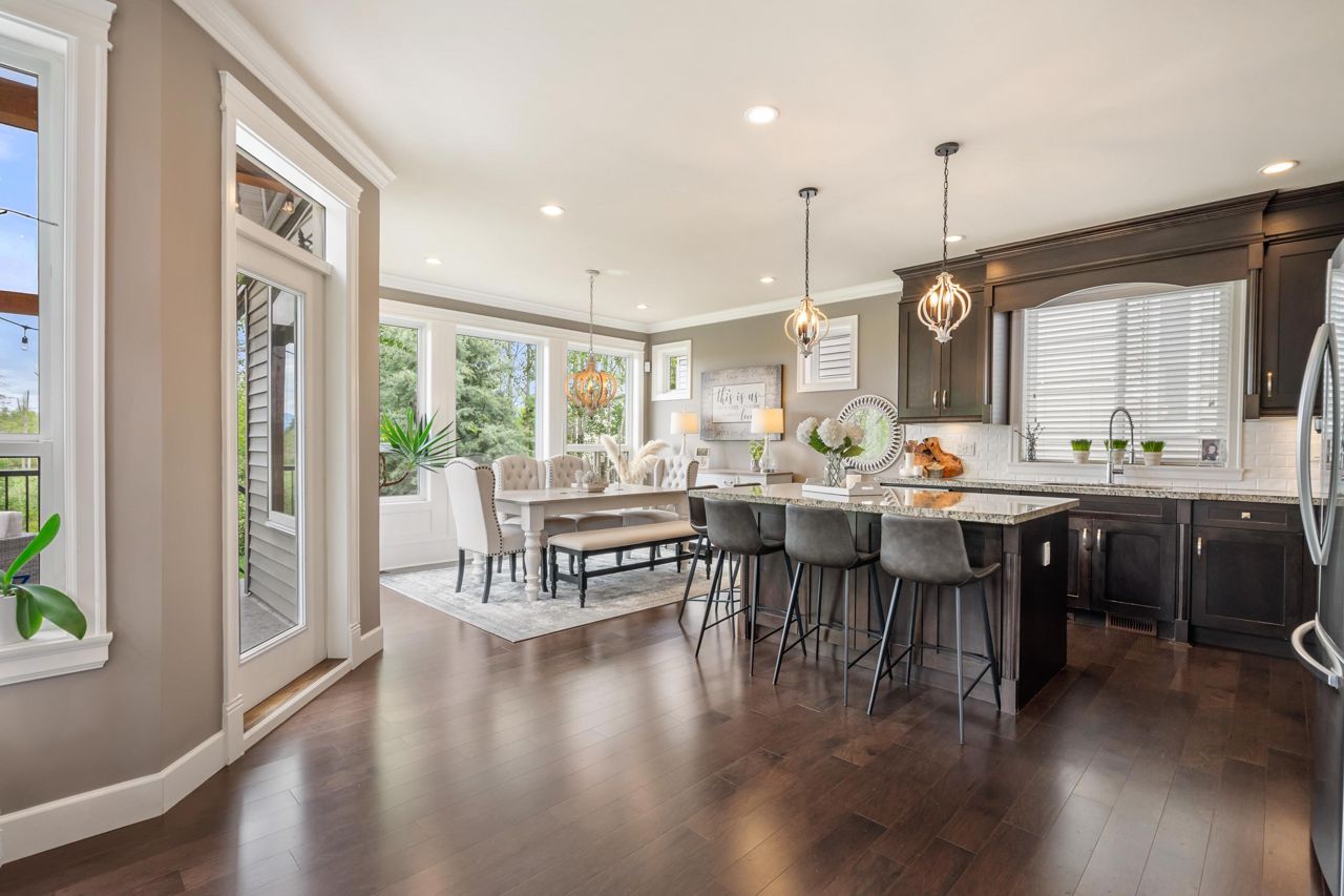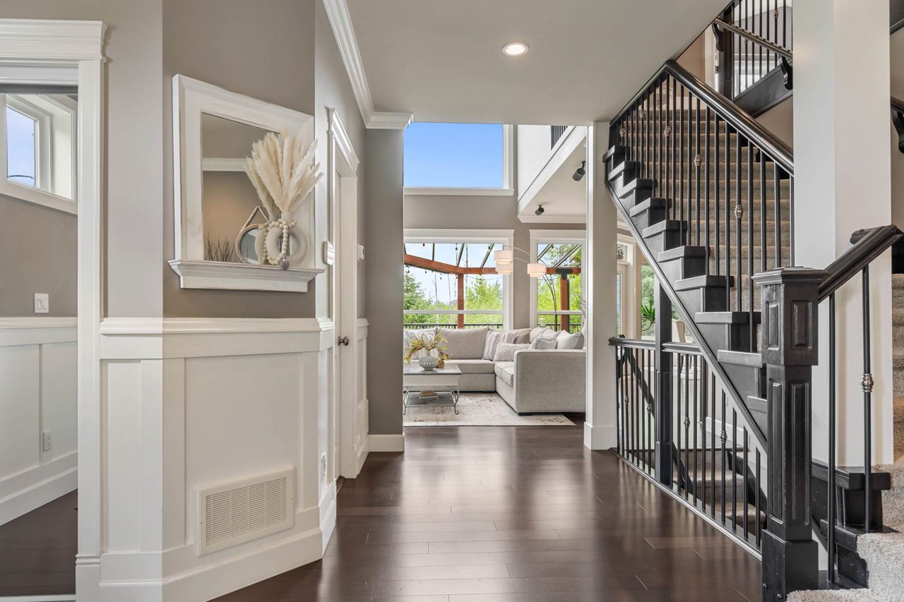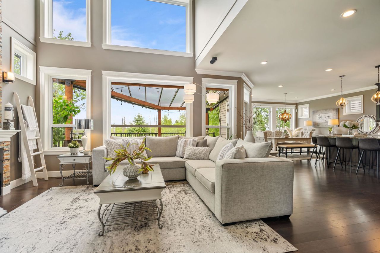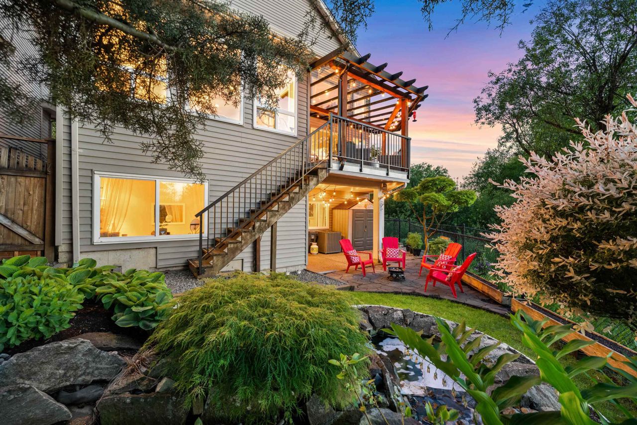 Stunning, Custom built, 3 storey, Includes finished bsmnt in Saddlecreek. Plenty of street parking. Feel the energy in this Open concept Kitchen, family room, and dining room space! Supersized windows, high ceilings, crown molding and wain scotting, while overlooking Spectacular view of the North shore Mountains & North Creek Park! Entertainers Island, new appliances, pantry, ample cupboards & new lighting. 4 bedrooms up, 4 pc upgraded bath. Hotel inspired Primary Bedroom, with "VIEW", vaulted ceiling, 5 piece ensuite, and walk-in closet. Bright, Walk-out bsmnt, custom built-in wet bar, plus designated outdoor patio. Perfect for in-laws. 20x15 Upper deck off the kitchen welcomes you to the utmost privacy, while enjoying the View! Serene yard & water feature & many perennials. 3 yr new AC