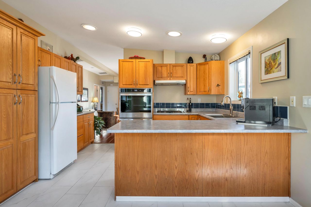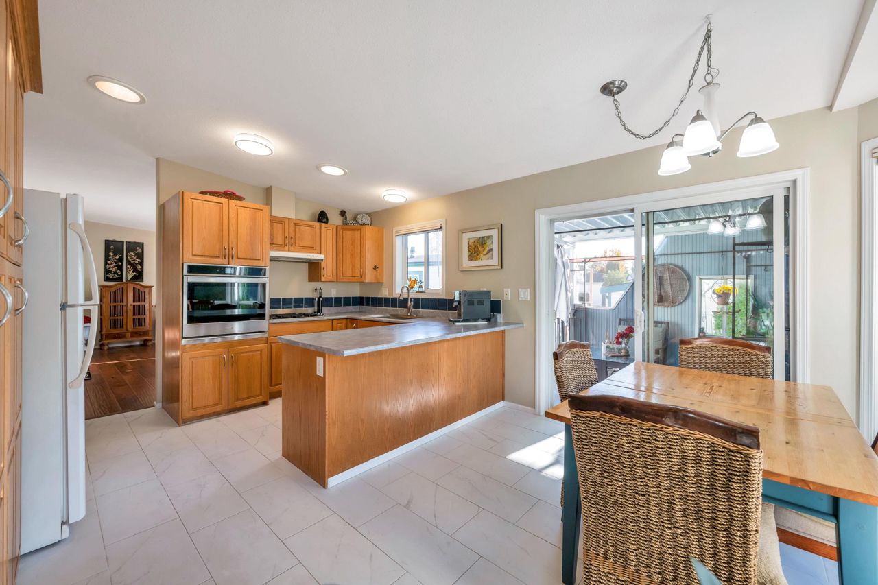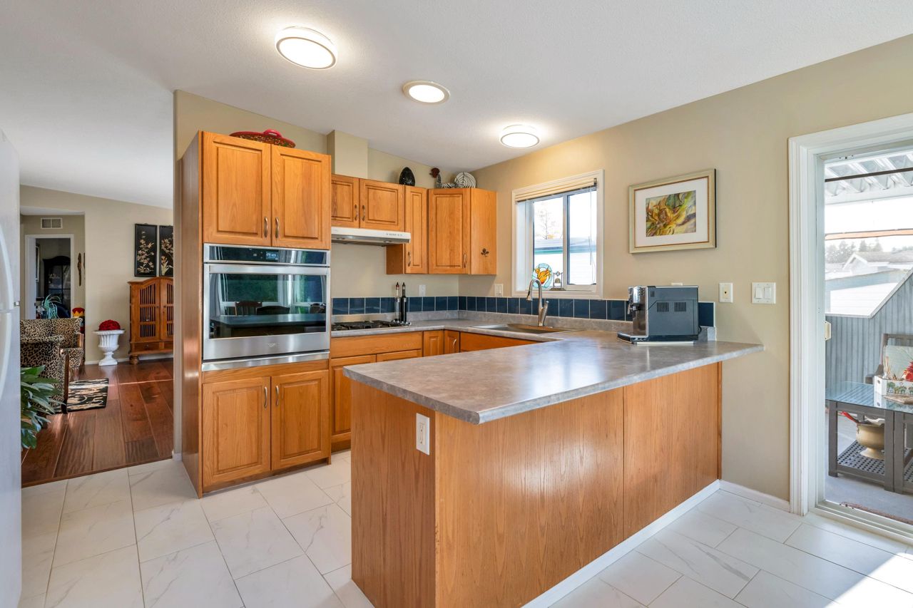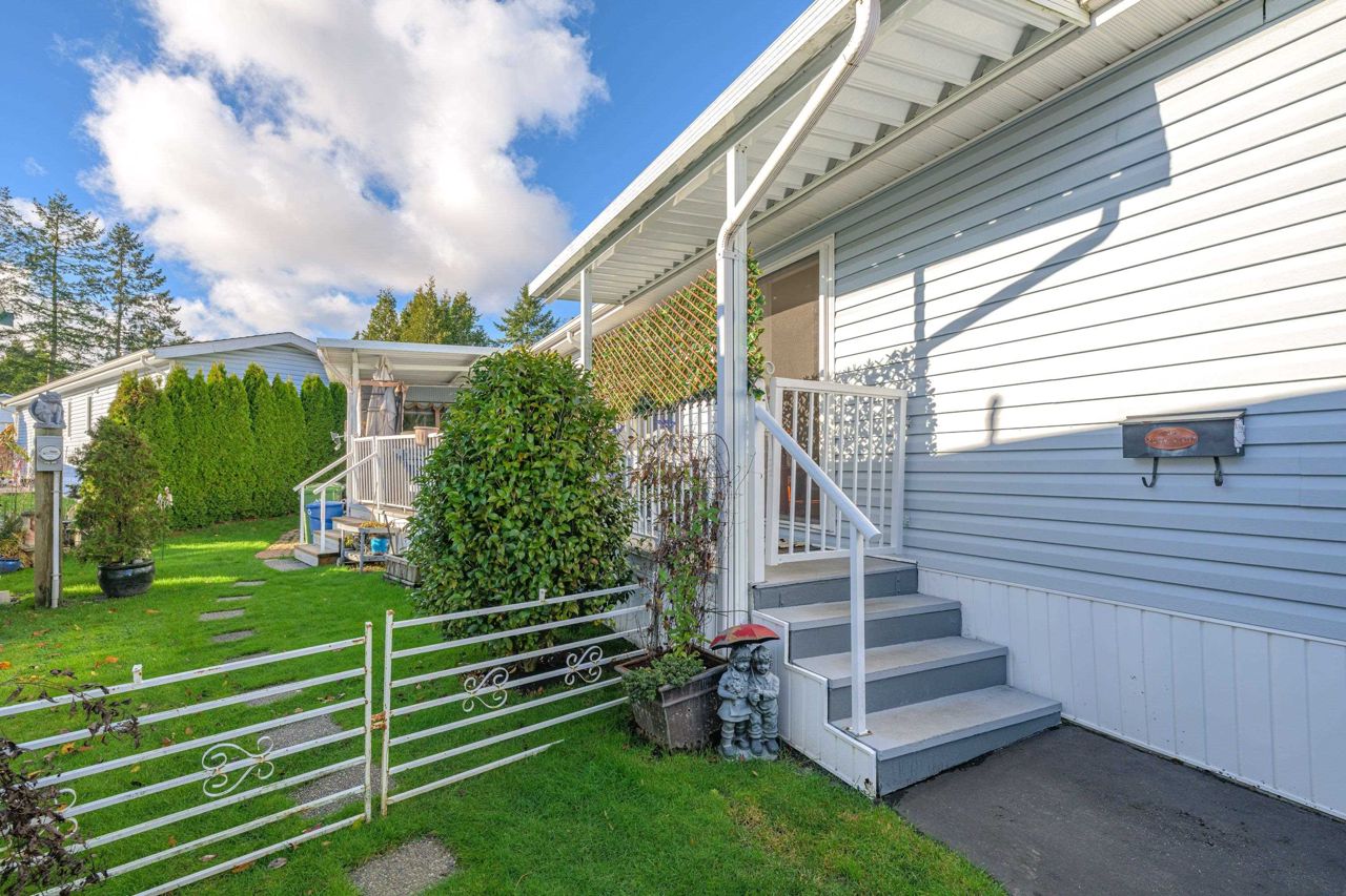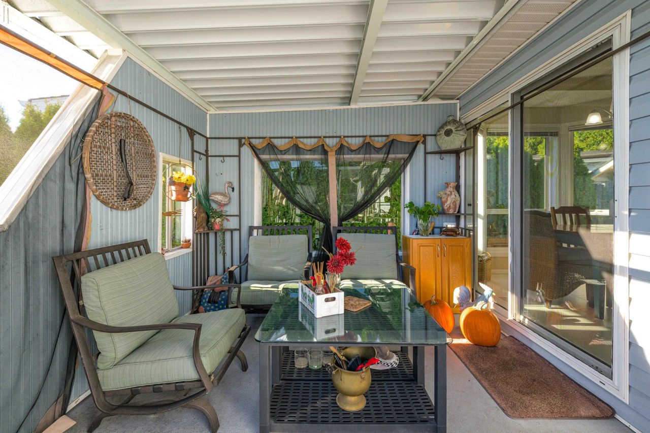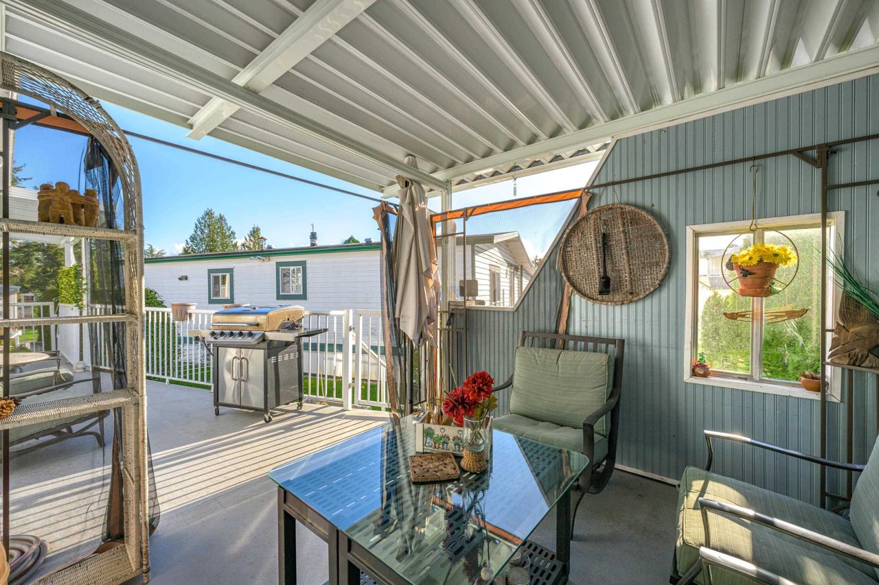 Welcome to your "Modular Home"! Feels like a house with a spacious bright floor plan, vaulted ceilings, 3 large Bdrms, 2 baths, double glazed windows, Gas stove top, wall oven, huge eat in kitchen and a separate dining/living room. Walk out to the amazing deck, partially covered with a cozy area for relaxing get togethers. Large workshop shed, plenty of storage and situated in a great location in the park! 3 yr old roof, lovely low maintenance yard. This home has been lovingly cared for by the current owners. This park has amazing amenities; outdoor heated pool, clubhouse, workout room, library, games room and walking trails. In a prime location near transit, shopping, US border and schools. Bring your 2 fur babies ... Cats and dogs, Dogs maximum height 20" at withers. A must see!