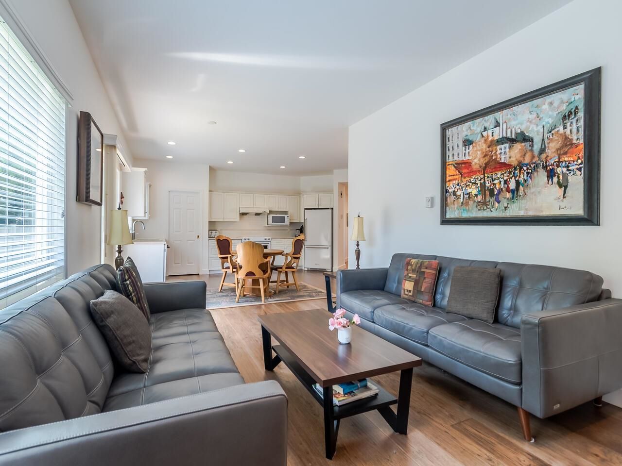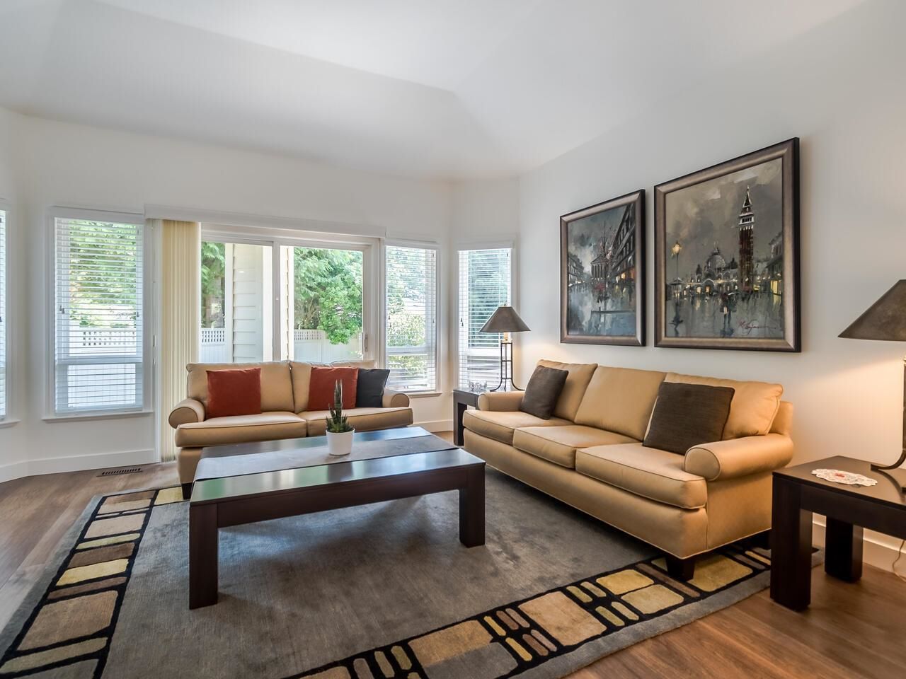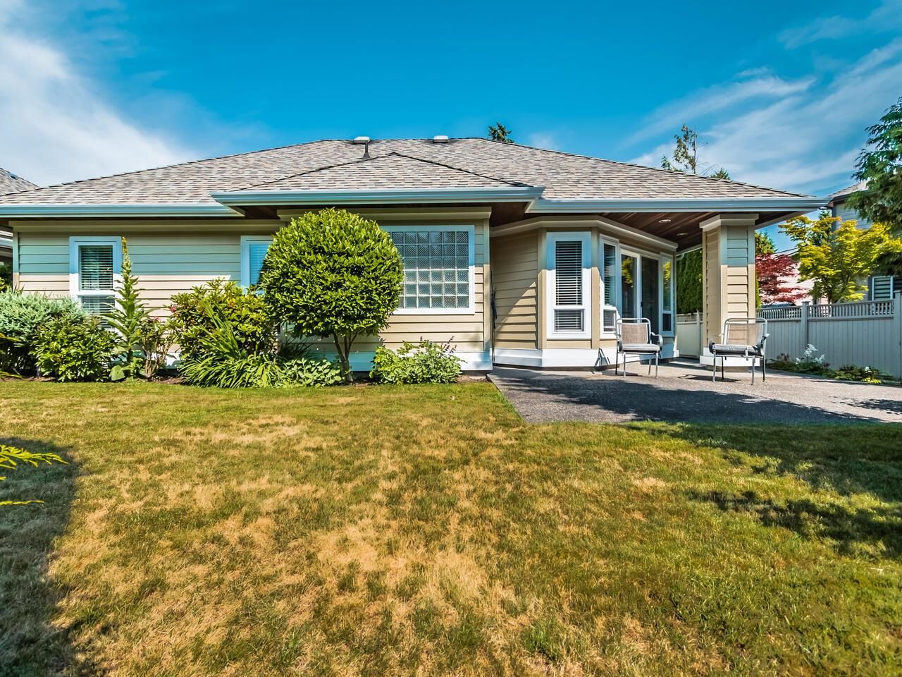 RARITY is an understatement for this HOME! A DETACHED house in the BEST location in the BEST complex around where HOMES never come up! IDEALLY set on the corner of the property with MEGA yard space is this PHENOMENAL rancher with a double garage and driveway for two more to park! Two bedrooms, two full bathrooms and a layout that would APPEASE the most difficult buyer! New, GORGEOUS Engineered HARDWOOD floors throughout, new appliances, two new HIGH END fireplaces, some new California shutters and all the Poly B piping has been changed! Nothing to do in this 55 plus GEM of a complex where strata will take care of the yard and many other things that can be a headache! Your chance to get into this OUGHT after place and feel the FULFILLMENT not often sound in HOMES these days!