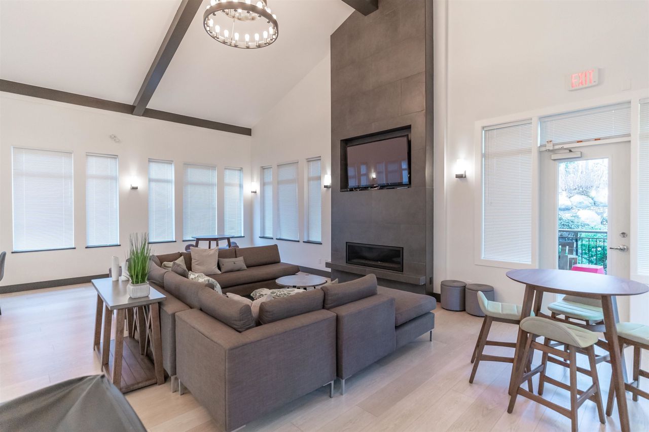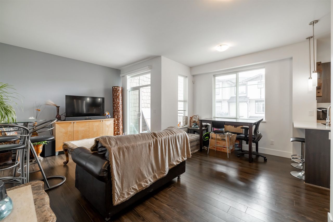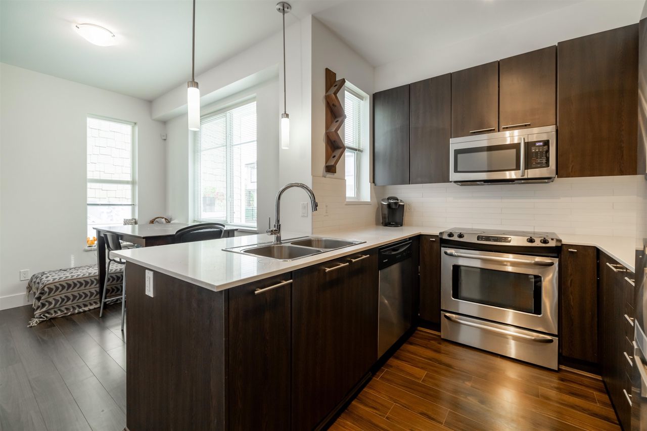 Welcome to the Grove by developer Townline Homes. Desirable 2 bdrm + 2 full bath townhome living in the heart of Clayton. Outstanding features include 9’0 high airy ceiling on main floor, open concept living/kitchen with full height double pantry, stainless steel appliances, bonus nook/office space and walk-out to private patio from liv rm. Laundry conveniently located upstairs. 2 parking: Single car garage + pad. Complex amenities include 2 clubhouses, 2 gyms, mini indoor floor hockey rink, theatre, & outdoor pool. Minutes from Hwy 1, near the future Skytrain station! Kitty corner to convenience store, tasty pizza, sushi, and a martial arts centre. Walking distance to Breweries, the mall, parks & Katzie elementary school! Great home for both kids and pets!