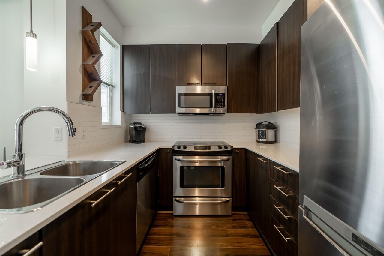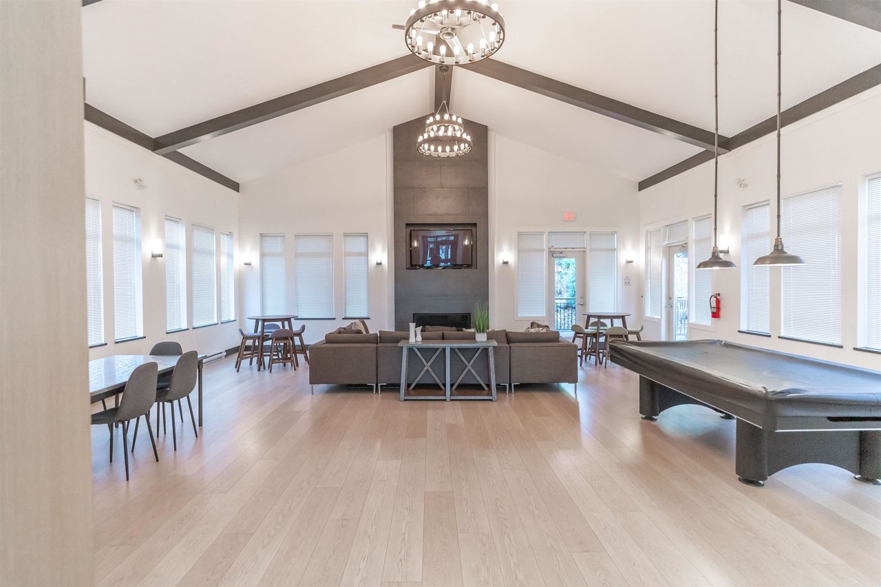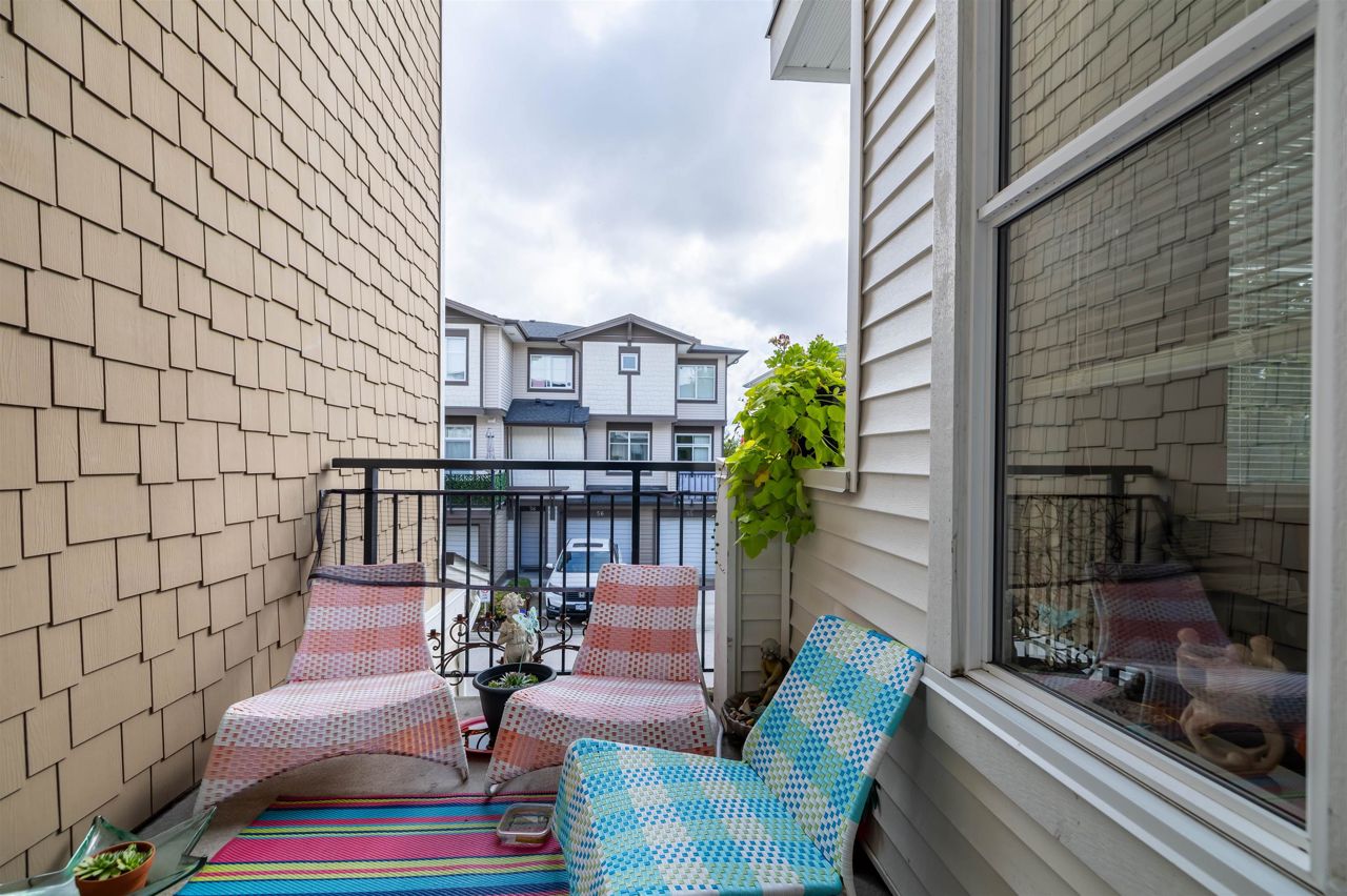Welcome to the Grove by developer Townline Homes. Desirable 2 bdrm + 2 full bath townhome living in the heart of Clayton. Outstanding features include 9’0 high airy ceiling on main floor, open concept living/kitchen with full height double pantry, stainless steel appliances, bonus nook/office space and walk-out to private patio from liv rm. Laundry conveniently located upstairs. 2 parking: Single car garage + pad. Complex amenities include 2 clubhouses, 2 gyms, mini indoor floor hockey rink, theatre, & outdoor pool. Minutes from Hwy 1, near the future Skytrain station! Kitty corner to convenience store, tasty pizza, sushi, and a martial arts centre. Walking distance to Breweries, the mall, parks & Katzie elementary school! Great home for both kids and pets!
