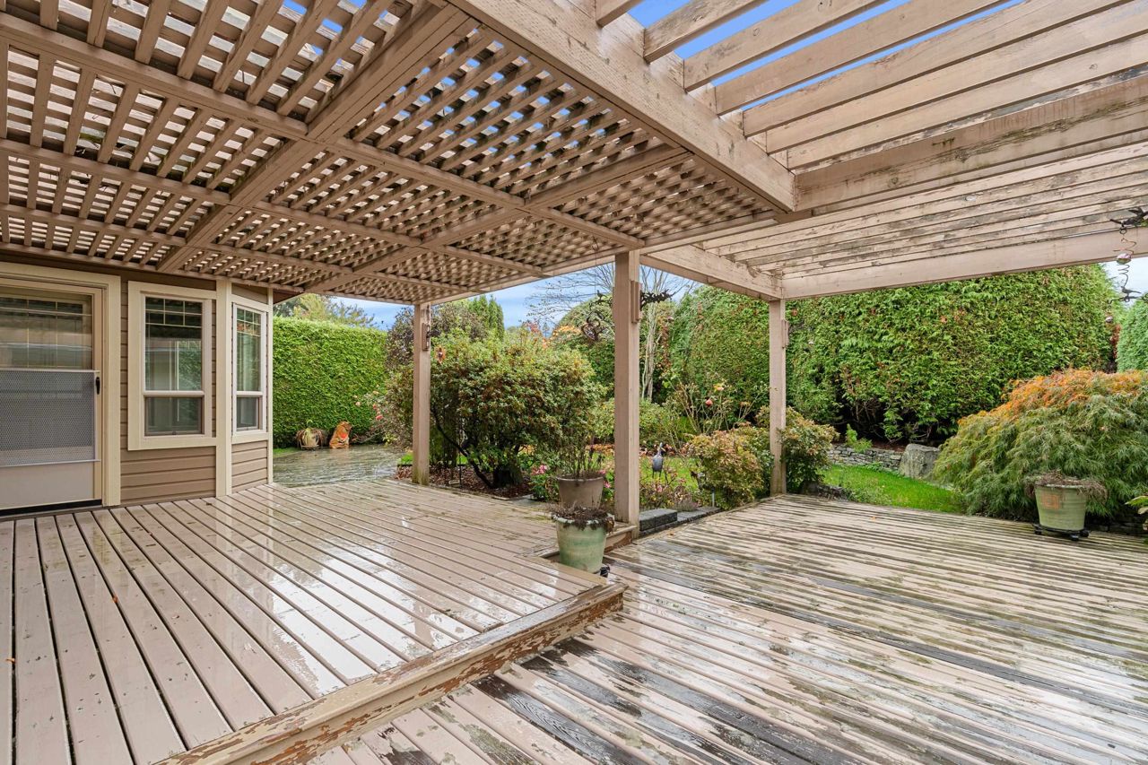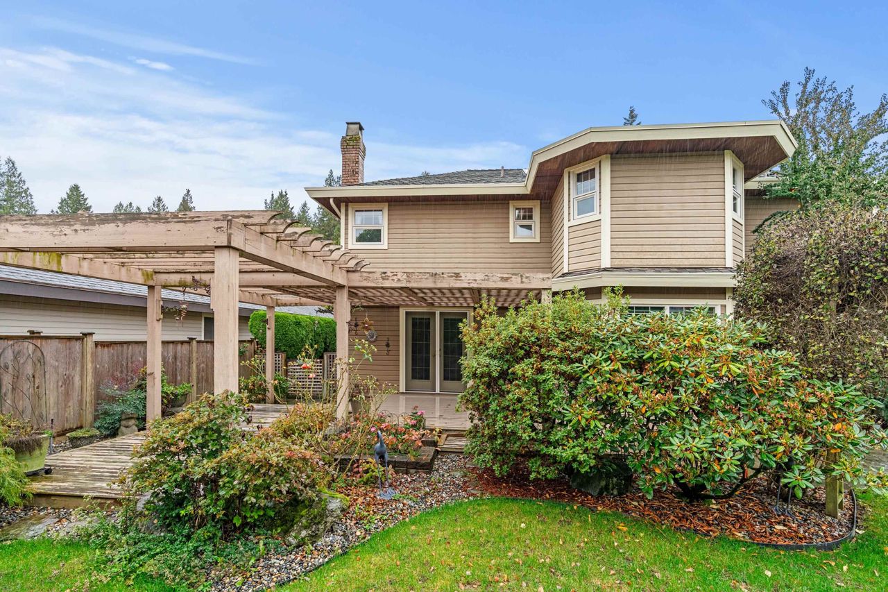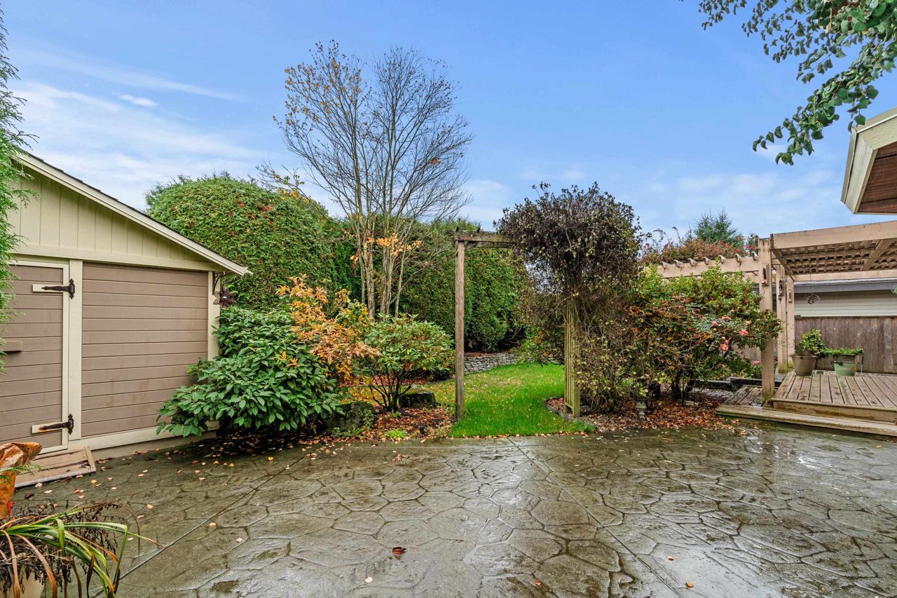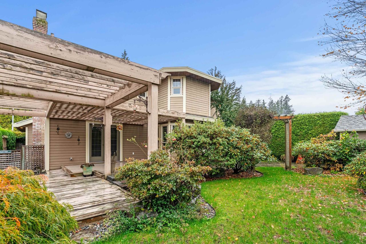 MERIDIAN BY THE SEA! Fantastic 3 Bedroom and Den Family Home set back behind a large hedge and on a Frontage Road. Updated Kitchen Cabinets with Granite Counters, and a Gas Stove. Oversized Primary Bedroom, Ensuite and walk-in closet. Very private fenced yard with expansive Deck, Pergola and huge storage shed with power. Newer Roof, 2019 Hot Water Tank, 2015 H/E Furnace and Inground Sprinkler System. Fantastic Central location close to Transit, Schools (Semiahmoo Secondary) and Parks.