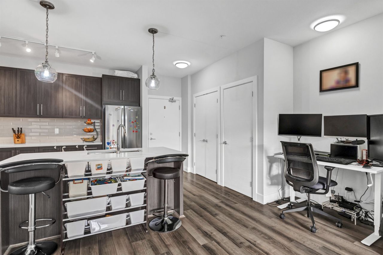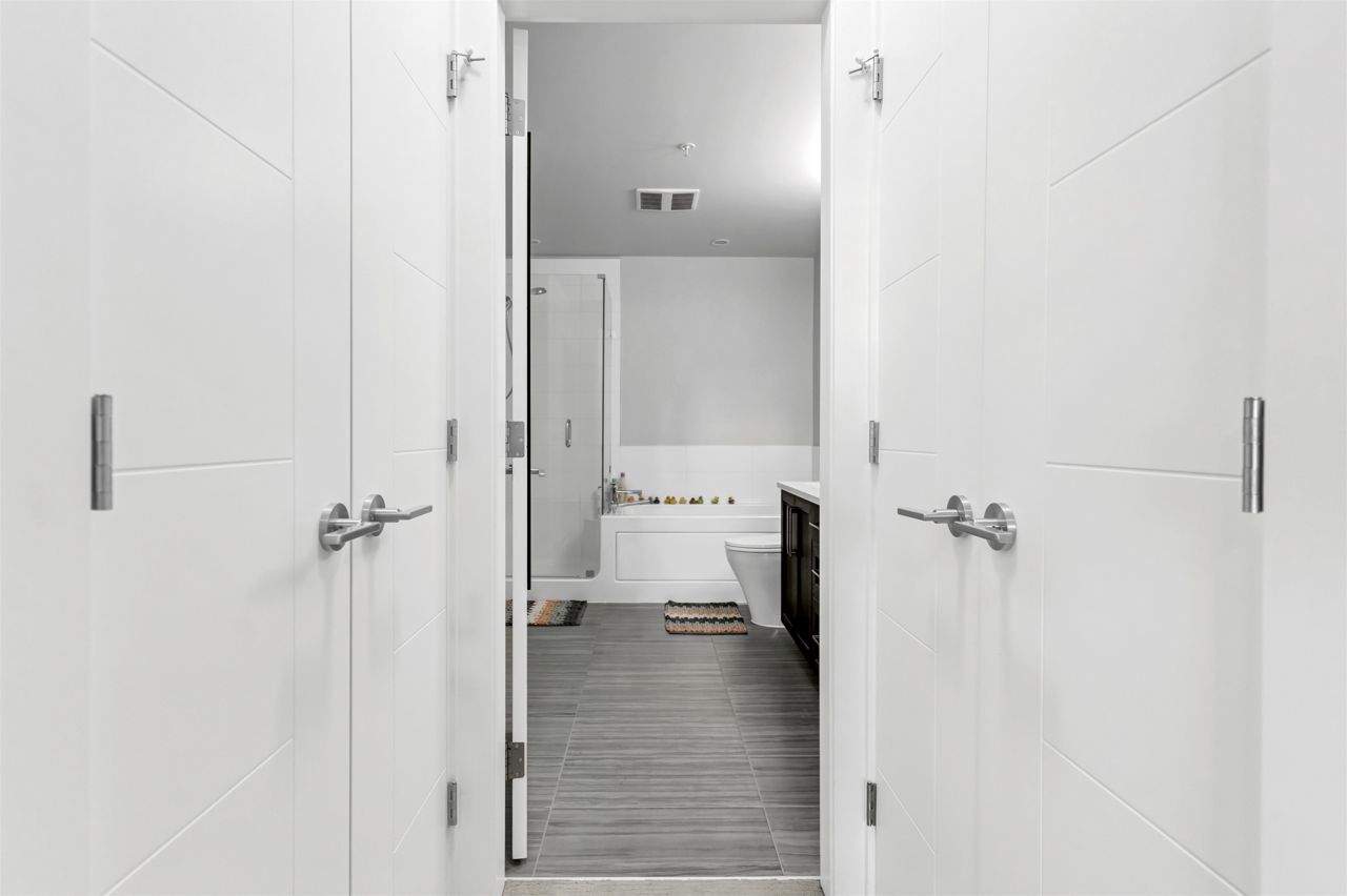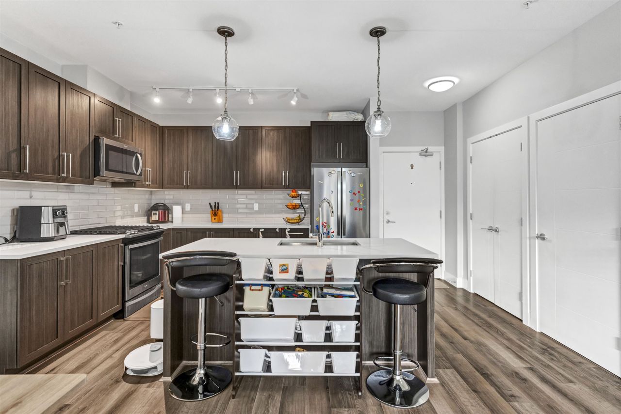 SOUTH POINT WALK 2 by award-winning Streetside Developments! Very well maintained WEST Facing 950 SQFT 2 bedroom 2 bathroom unit is on the quiet side of the building with beautiful balcony to enjoy the sunset in peace. The kitchen features classic shaker style cabinetry, thick quartz countertops, and Whirlpool appliances . At the end of a long day you can relax in your spa like bathroom with porcelain floor tiles & deep soaker tubs. Moreover the airy 9 foot ceilings make this generous floor plan look even more spacious. 1 parking stall & a storage locker are included. Short walk to all amenities including shopping at Save On foods, Staples ,Tim Hortons & nice restaurants. Building includes gym, amenity room, theater and community garden! ACCEPTED OFFER WITH S/R on Sept 09