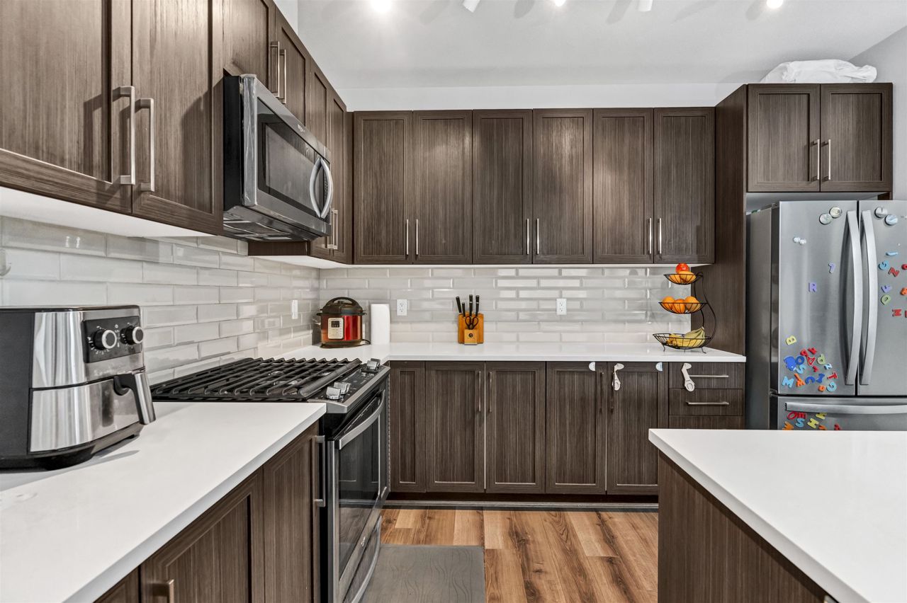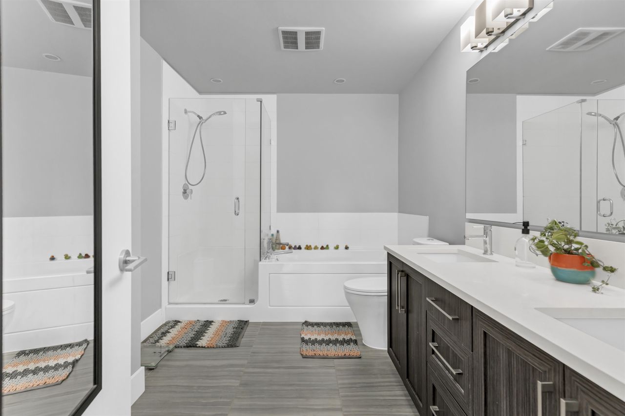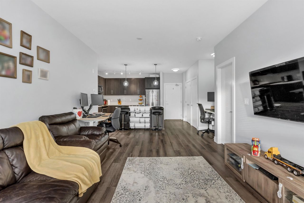 SOUTH POINT WALK 2 by award-winning Streetside Developments! Very well maintained WEST Facing 950 SQFT 2 bedroom 2 bathroom unit is on the quiet side of the building with beautiful balcony to enjoy the sunset in peace. The kitchen features classic shaker style cabinetry, thick quartz countertops, and Whirlpool appliances . At the end of a long day you can relax in your spa like bathroom with porcelain floor tiles & deep soaker tubs. Moreover the airy 9 foot ceilings make this generous floor plan look even more spacious. 1 parking stall & a storage locker are included. Short walk to all amenities including shopping at Save On foods, Staples ,Tim Hortons & nice restaurants. Building includes gym, amenity room, theater and community garden! ACCEPTED OFFER WITH S/R on Sept 09