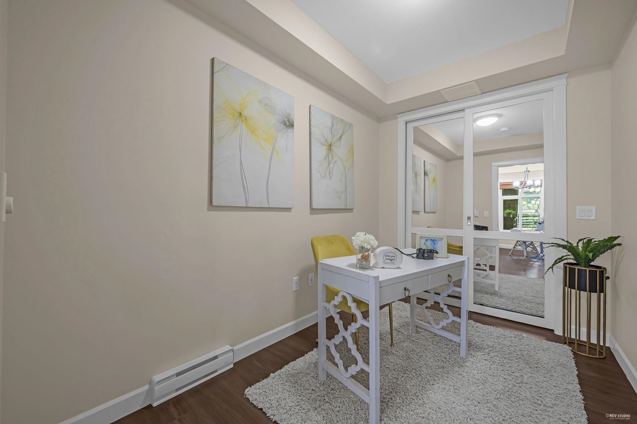 Forest Ridge by Quadra Homes!!!! Total 1585 sqft living space ground level condo (including 280 sqft solarium), and BONUS 365 sqft patio space! As you walk into the home you are greeted with a spacious open concept living and high-quality kitchen cabinets, counter tops and laminate floors. Open up your patio doors and the space is transformed into the place to be to entertain friends and family! As you retreat into your spacious master bedroom you can enjoy the en-suite heated bathroom floors and great sized walk-in closet. Large 2nd bedroom plus 11x7 den with closet that can be used as 3rd bedroom or a home office. 2 parking, one personal LARGE STORAGE garage with electrical outlet capable for ELECTRIC CAR CHARGING,natural gas hookup and A/C with your energy efficient heat pump. Must see!