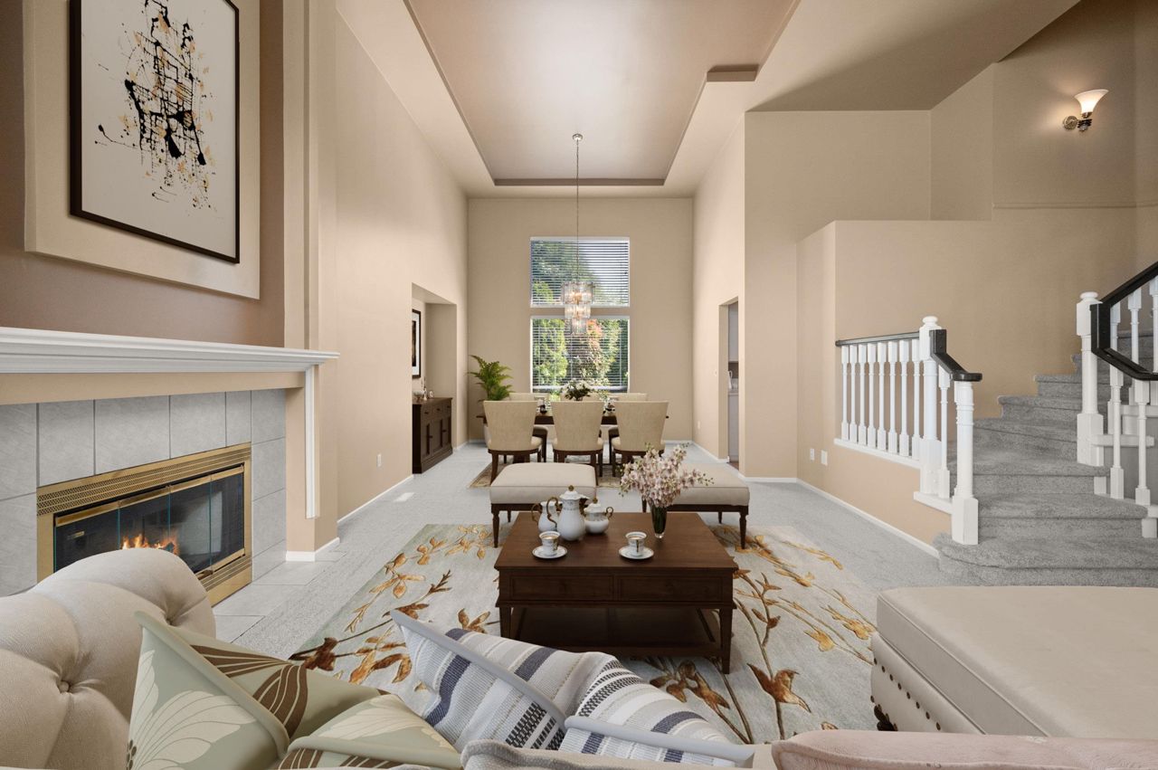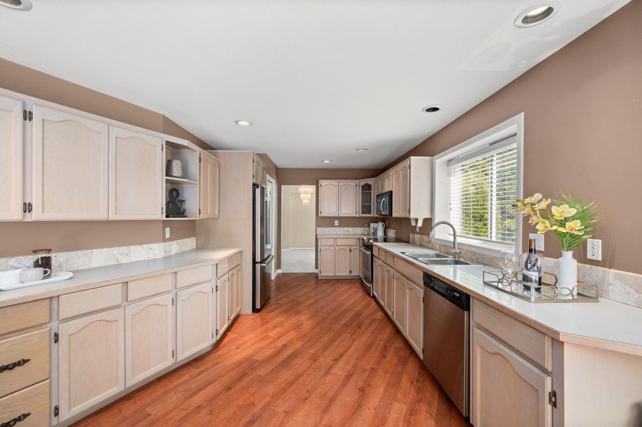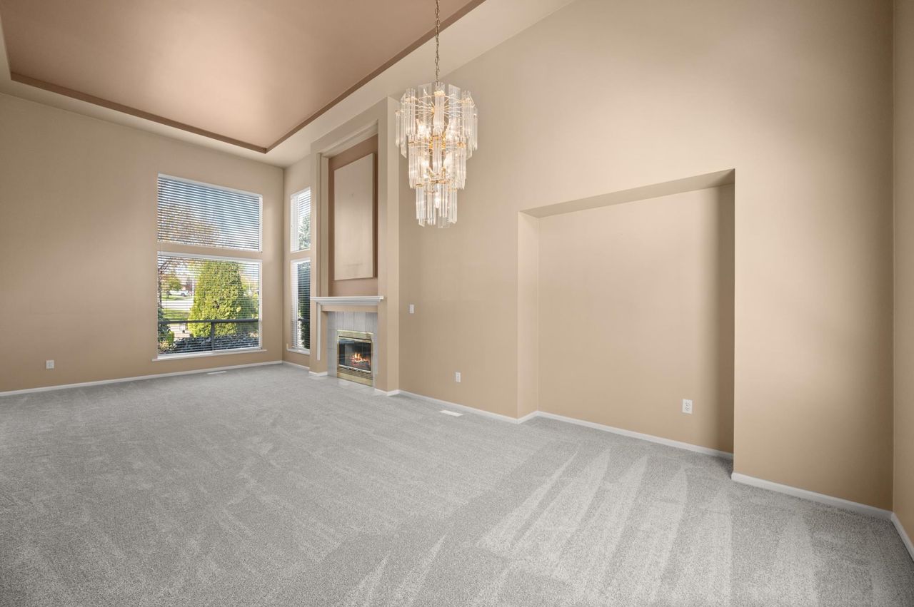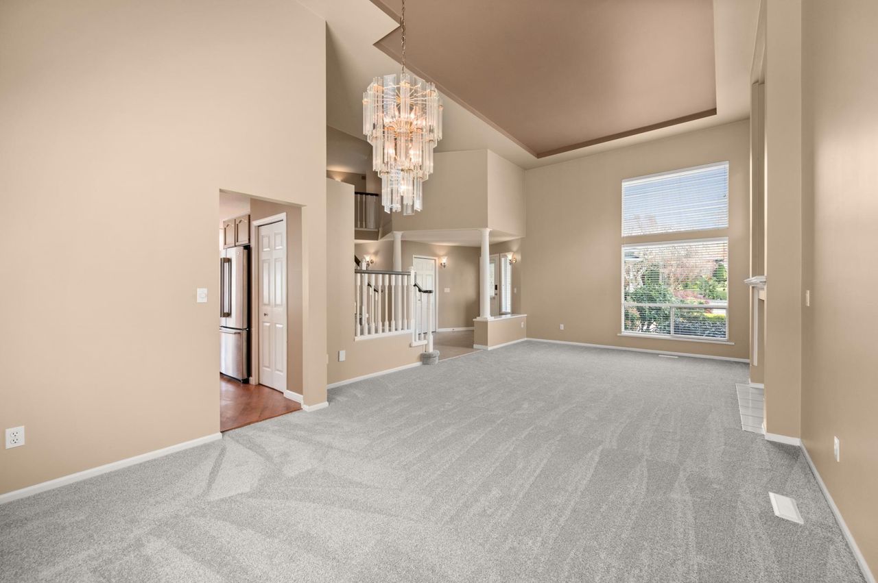 Nestled in the coveted neighborhood of Rosewood Park this 2-level home offers over 2600 sq ft of living space on a spacious 7800 sq ft property. Situated on a quiet family-friendly cul-de-sac, this home features 4 bedrooms, 3 bathrooms plus a den. The main level boasts high 13'5 ceilings in the living & dining rooms creating a grand and airy atmosphere. The open-concept kitchen w/ an eating area & family room is perfect for gatherings. The spacious primary bedroom features walk-in closets & 4-piece ensuite w/ soaker tub. Brand new flooring throughout the home adds to its fresh appeal. Enjoy the warmth of 2 gas fireplaces and the convenience of a double garage w/ a long driveway for extra parking Step outside to the ultra-private backyard with a patio, offering a serene retreat.