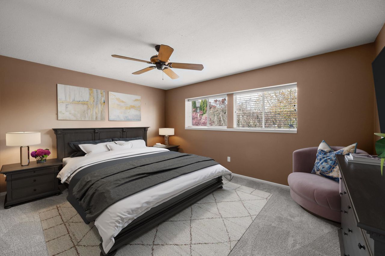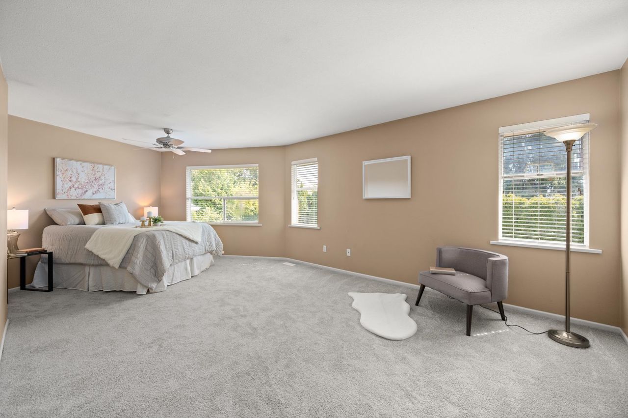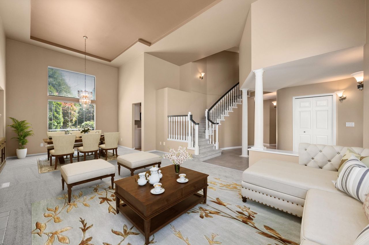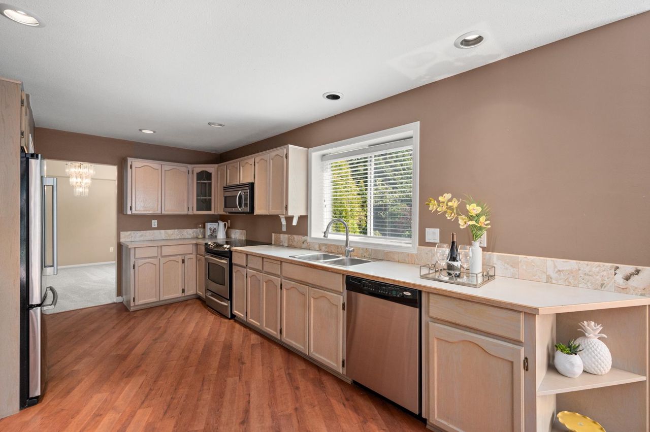 Nestled in the coveted neighborhood of Rosewood Park this 2-level home offers over 2600 sq ft of living space on a spacious 7800 sq ft property. Situated on a quiet family-friendly cul-de-sac, this home features 4 bedrooms, 3 bathrooms plus a den. The main level boasts high 13'5 ceilings in the living & dining rooms creating a grand and airy atmosphere. The open-concept kitchen w/ an eating area & family room is perfect for gatherings. The spacious primary bedroom features walk-in closets & 4-piece ensuite w/ soaker tub. Brand new flooring throughout the home adds to its fresh appeal. Enjoy the warmth of 2 gas fireplaces and the convenience of a double garage w/ a long driveway for extra parking Step outside to the ultra-private backyard with a patio, offering a serene retreat.